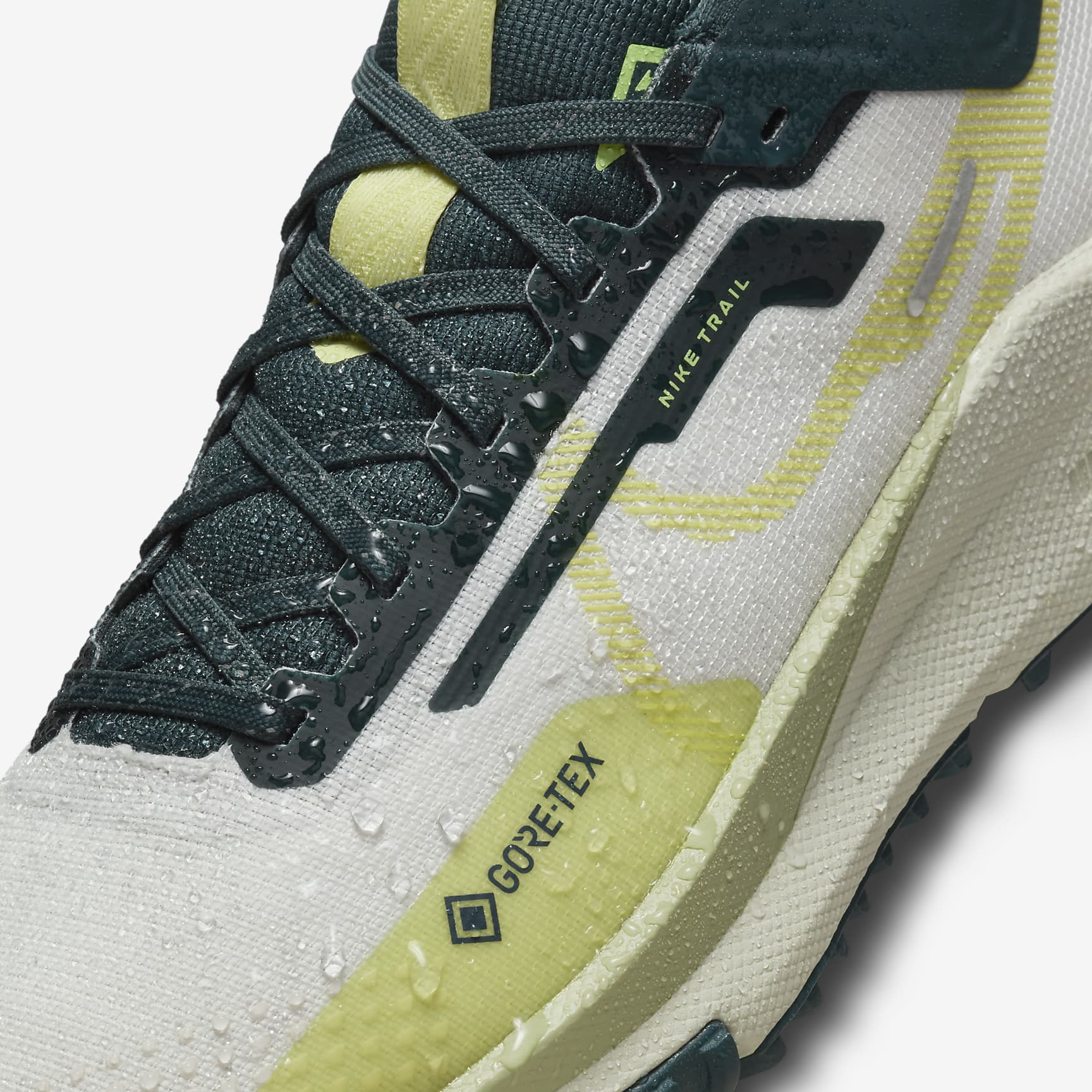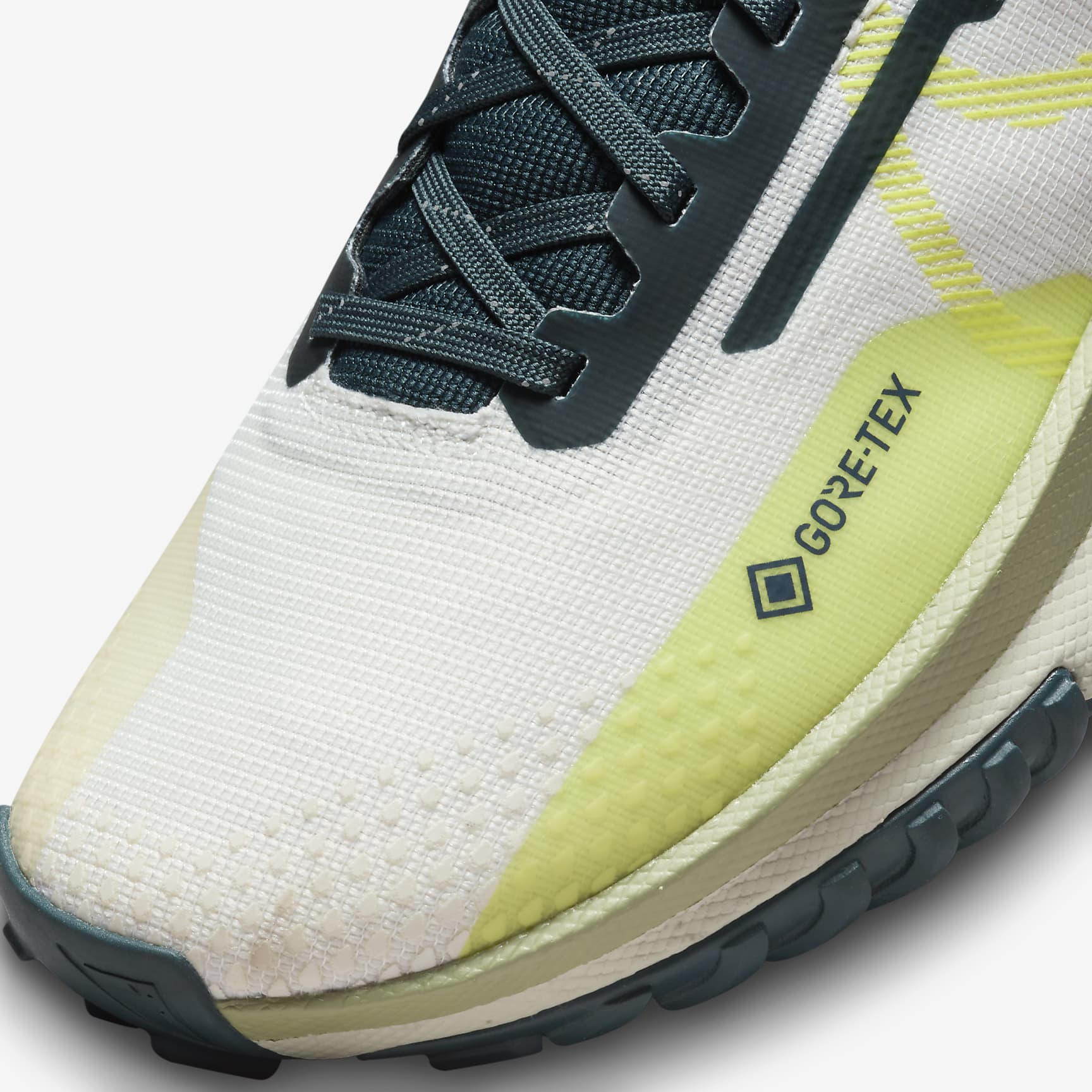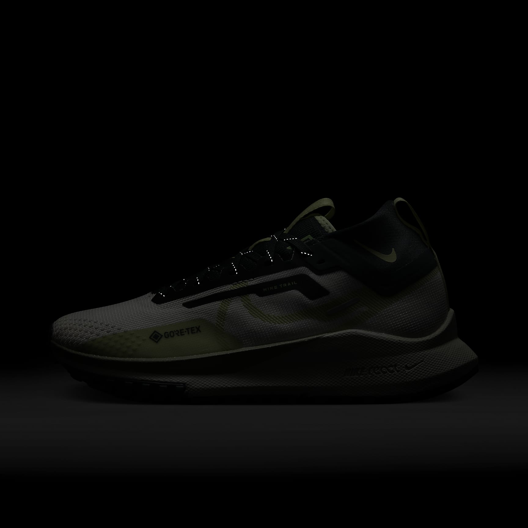 Wet weather never stopped you before, so why should it stop you now? Meet your new go-to running companion for days when the weather takes a turn. A flexible, lightweight design and responsive cushioning let you take your run from the road to the trail without breaking stride. Plus, a waterproof GORE-TEX layer and ankle gaiter help keep your feet dry so you're free to run through whatever puddles lie in your path. Don't let rain stop you GORE-TEX along the upper helps keep water from seeping into your shoes without sacrificing the comfortable feel of the Peg Trail. Updated materials around the ankle help ensure water and trail debris don't get into the shoe. Smooth and stable Nike React technology is a lightweight, durable foam that delivers a smooth, responsive ride. Its full-length design provides stability as you brave rocky terrain. Traction in all directions Less rubber along the outsole creates a smooth transition from road to trail while preserving the full-length React midsole. Plus, it wraps around the front of the shoe to provide extra durability. A generative traction pattern combined with rubber in the forefoot provides extra grip for technical trails while maintaining a smooth ride for the road. Product details * Heel and tongue pull tabs * Foam in midsole * Reflective design details * Not intended for use as Personal Protective Equipment (PPE)