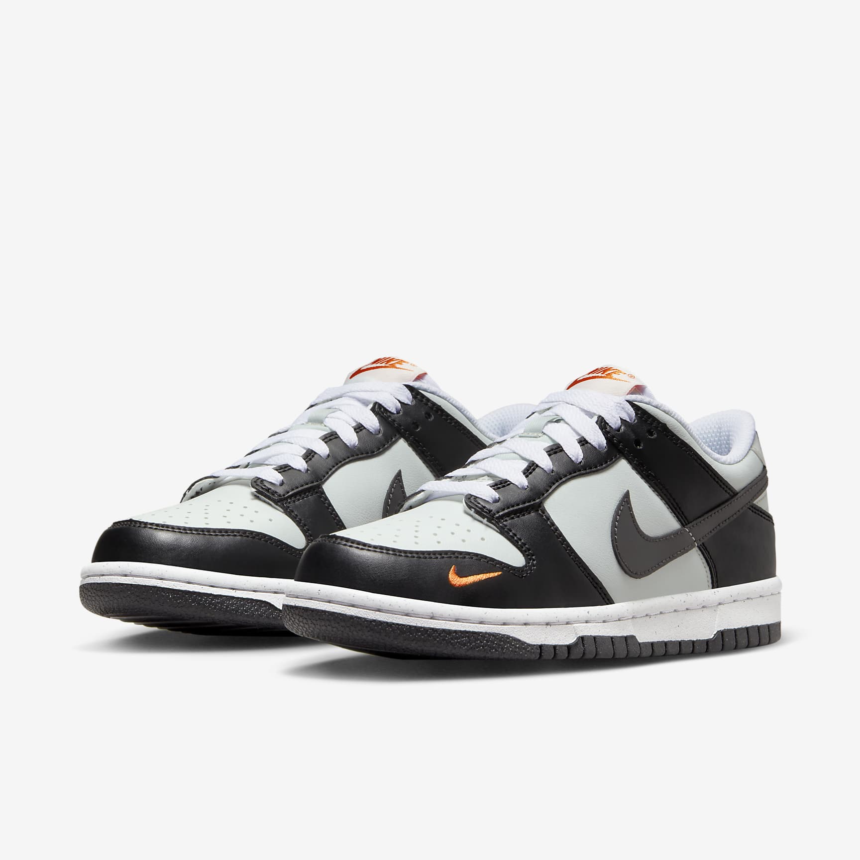 If you love old-school hoops, you'll love this Nike Dunk. Thoughtfully made from durable synthetic leather for a classic court feel, these kicks honour a hardwood icon with a design you can easily rock from class to the park and everywhere in between. Benefits * The synthetic leather upper ages to soft perfection and features durable construction reminiscent of '80s b-ball. * Low-cut, padded collar looks sleek and feels great. * Foam midsole offers lightweight, responsive cushioning. * Rubber outsole with classic hoops pivot circle adds durability, traction and heritage style. * The speckles in the rubber outsole are made from Nike Grind, which is recycled waste (i.e. the scraps) from the footwear manufacturing process. Product Details * Classic laces * Perforations on the toe Nike Dunk Born from a series of mash-ups, hacks and tight deadlines, the Nike Dunk landed on US university basketball courts during the '85–'86 season. While the original 'College Colours' designs helped fans stay true to their school, the Dunk didn't prove to be popular. But it was this humble sneaker's lack of popularity—and flat, grippy soles—that helped it jump the rails to captivate skateboarders. Decades later, this everyday favourite continues to be snatched up in countless colourways, proving its influence is undeniable.
