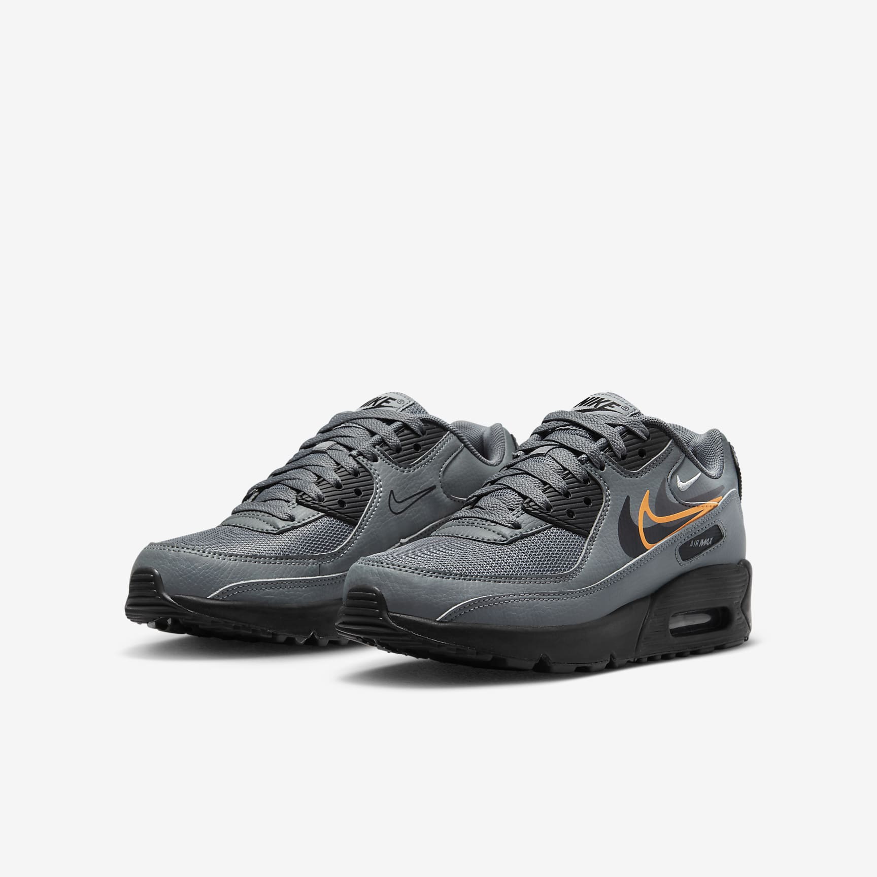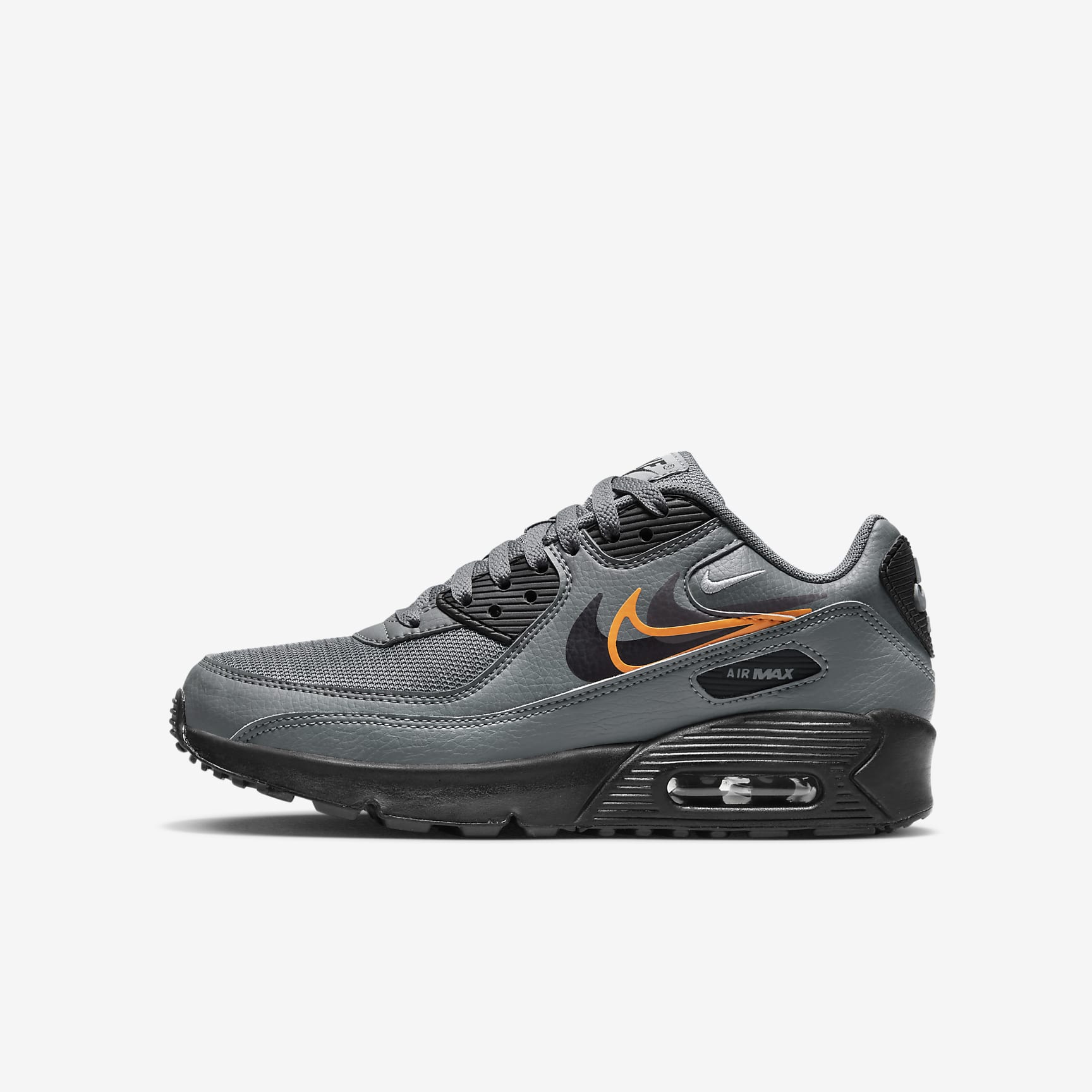 More Swoosh. More style. These sneakers take the original look of a '90s favourite to a whole new level. Multiple Swoosh logos add fun style while a Max Air unit in the heel pairs with soft foam cushioning and a flexible sole to help you run, jump and play in soft comfort. Benefits * Originally designed for performance running, the Max Air unit in the heel gives you play-ready cushioning. * The low-top design is combined with a padded collar for a sleek look that feels soft and comfortable. * The stitched overlays and textured accents give you durability and an iconic '90s look. * The rubber Waffle outsole provides traction. Product Details * Classic laces * Foam midsole Air Max 90 The '90s were a turning point in culture—art, music, fashion and sneakers. The Air Max was at the forefront of the movement. With even more exposed Air cushioning and a bold new colour affectionately dubbed as "Infrared", its revolutionised design helped the first 90 take on a life of its own. No longer just a running shoe, it solidified Air Max as a streetwear cornerstone.