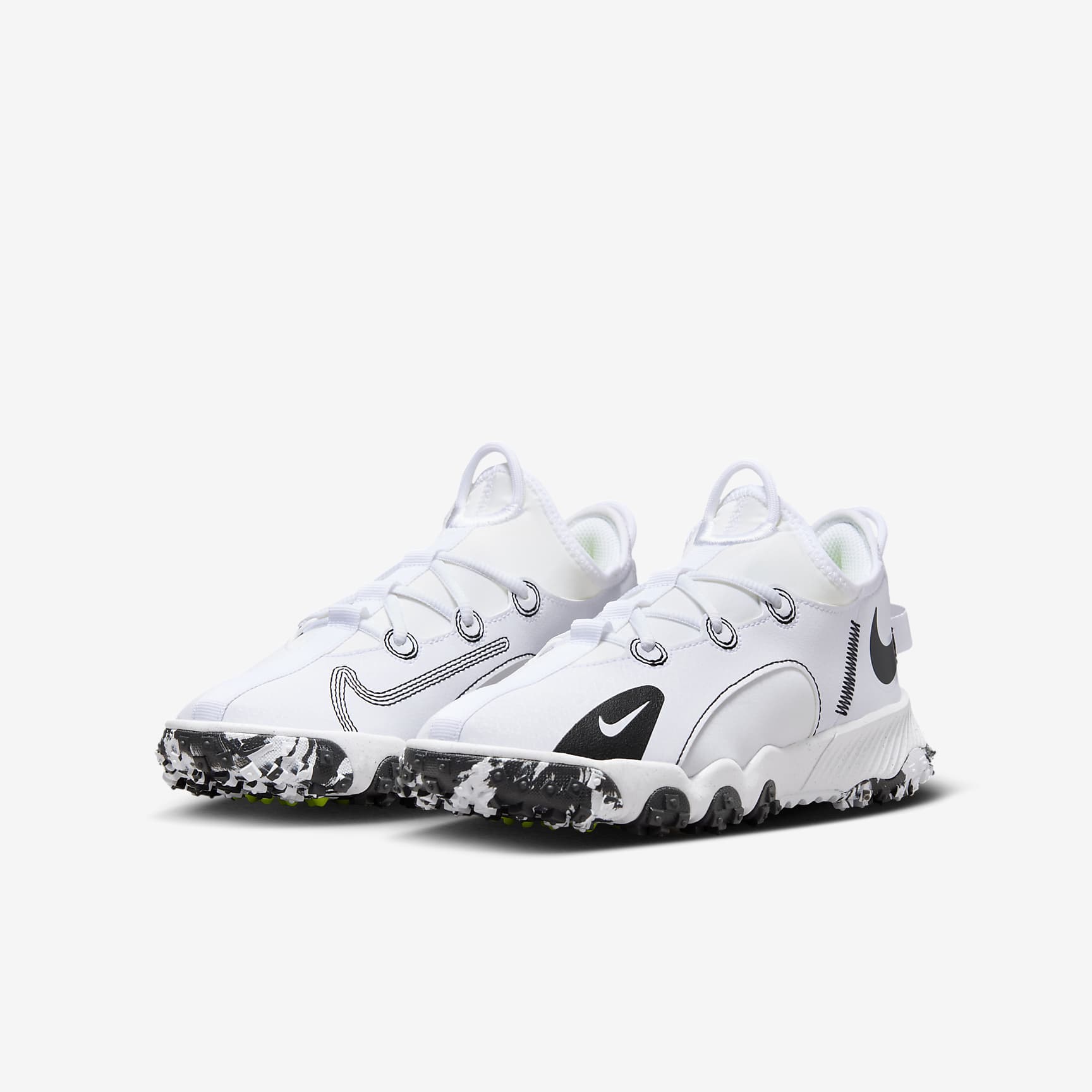 Football. Baseball. Soccer. Or even running around the field at recess. The best part of the Nike Future Field cleats is that they're meant for all types of field play. They're durable so you can try out all the sports you want. Plus, they're versatile and comfy to wear off the field, too—like, going to get ice cream for a postgame and post-practice treat. Made for Sports With durability a must no matter the sport, these shoes are made with strong synthetic leather. A layer of mesh underneath adds extra breathability where you need it. Easy On and Off For developing athletes, shoes must be easy to take on and off. The stretchy collar, plus loops on the tongue and heel, makes putting them on simple. Natural Moves This shoe has everything you need to move on the field. It includes a super flexible design so every step feels natural. A rubber sole with rubber studs also provides traction for all different types of fields. More Benefits * Extra rubber up the heel is designed to be stepped on with your other foot to help kick off your shoe easily. * Soft foam underfoot provides lightweight cushioning. Product Details * Classic laces