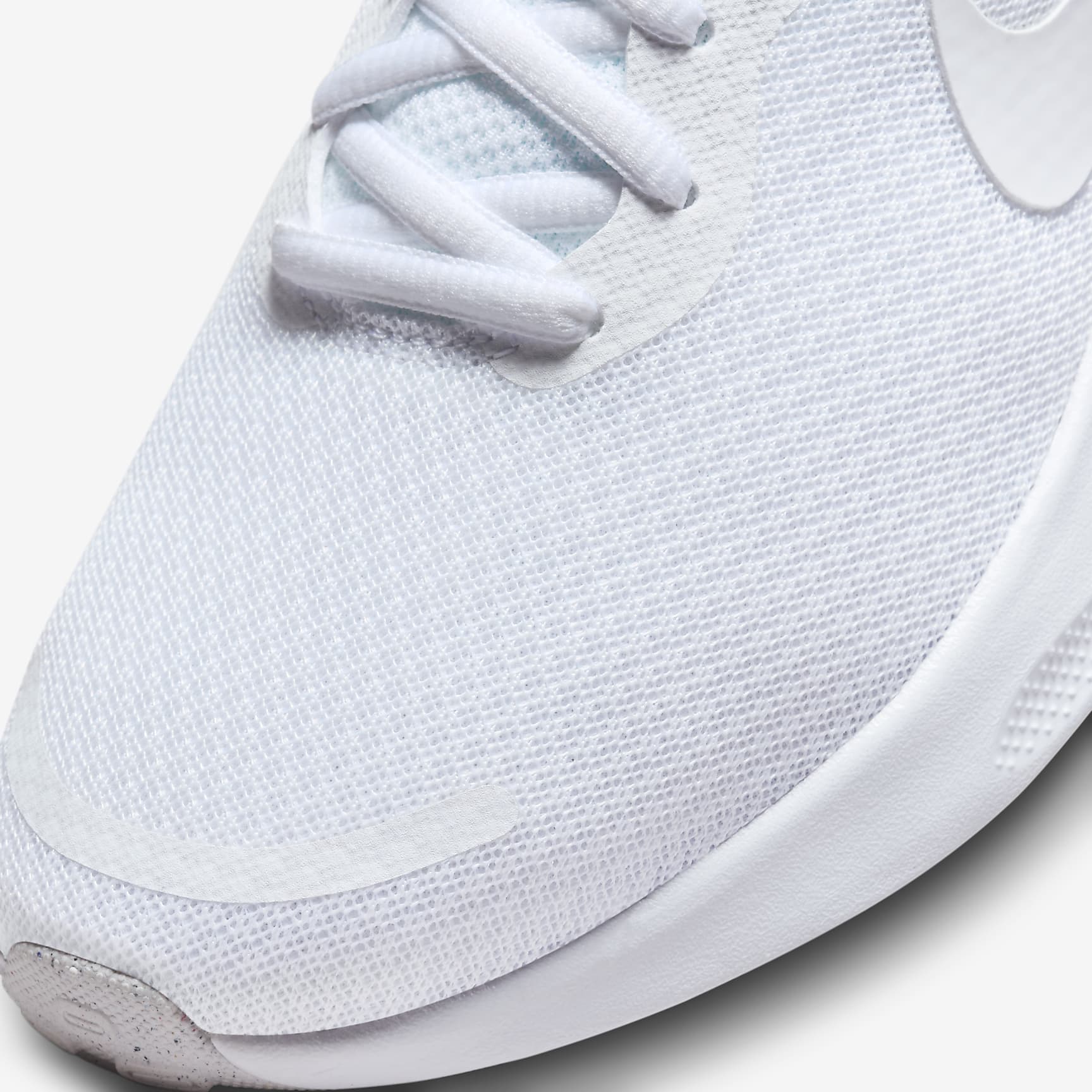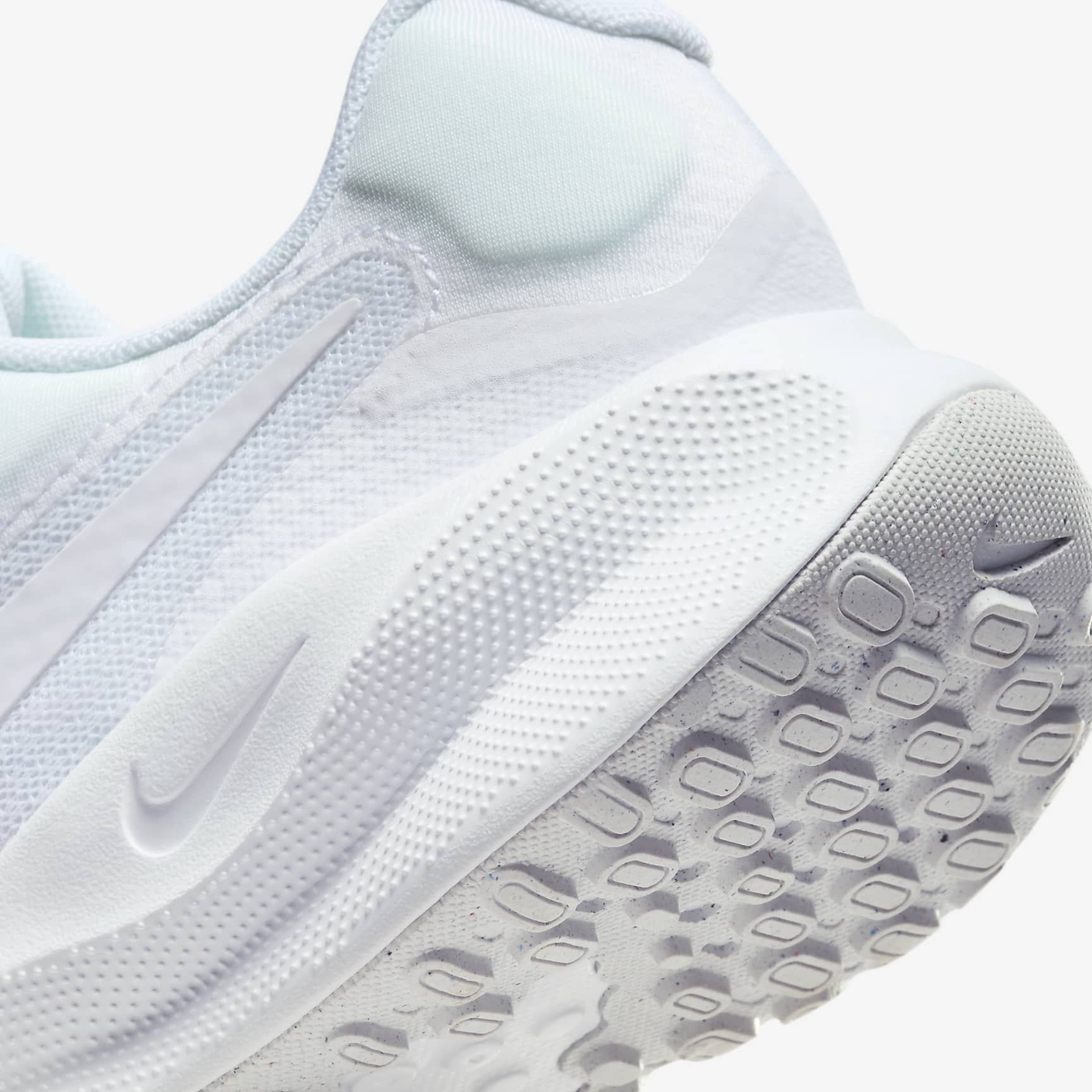 We loaded the Revolution 7 with the sort of soft cushioning and support that might change your running world. Stylish as ever, comfortable when the rubber meets the road, it's an evolution of a fan favourite that offers a soft, smooth ride. Foamy ride A foam midsole delivers a soft, smooth ride. Touch points Touch points on the tongue create a natural feel as you take off. Grippy outsole The outsole has a generative traction pattern that is combined with rubber lugs to help give you grip when going uphill or downhill. What's new? More room in the forefoot compared with Revolution 6, so your toes don't feel pinched. Puffs added to the heel are visible on the outside of the shoe. They're soft to the touch and help add comfort to your Achilles. Product details * Weight: 229g approx. (women's UK 5.5) * Heel-to-toe drop: 10mm