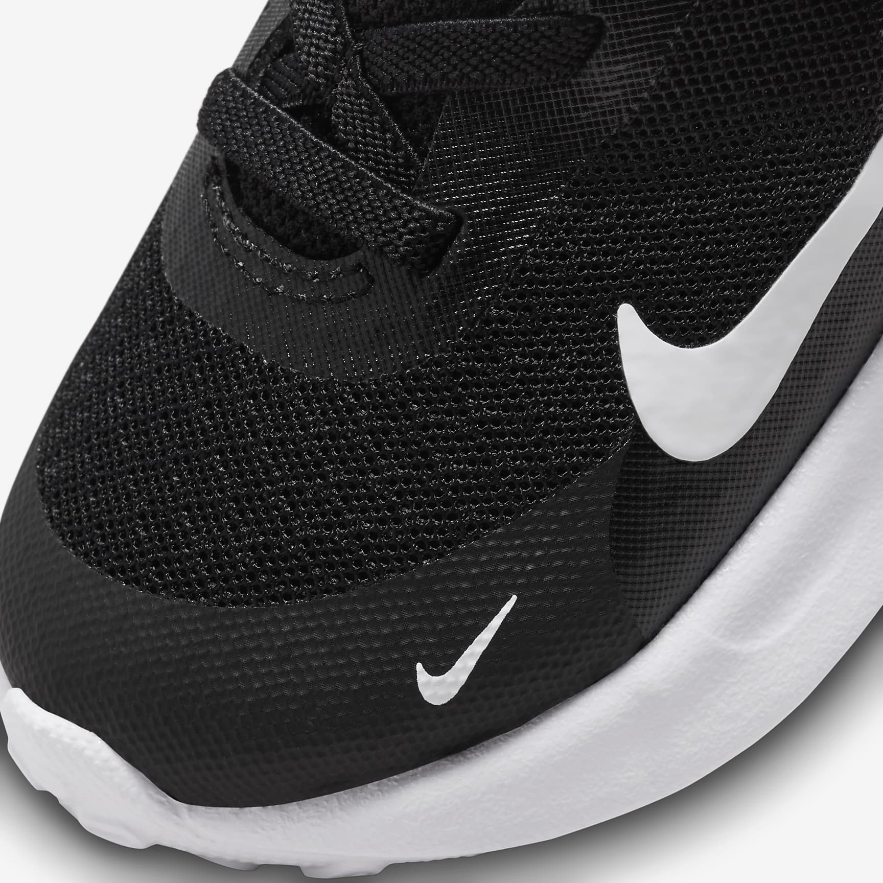 Let your little one flash, dash and blast to the finish line in the Nike Revolution 7. Made for fun, it features springy foam and a Waffle-inspired outsole for all the cushioning and traction kids need to race into play. What's New We added more foam to the midsole and extra cushioning around the heel for a truly comfortable feel. Easy to Put On Elastic laces and a hook-and-loop strap make these shoes easy to take on and off. Reinforced Upper Lightweight textiles up top help keep these shoes breathable. We reinforced high-wear areas like the toe for added durability. Soft Foam Midsole Soft, springy foam in the midsole helps cushion their every stride as run and play the day away. Padded Collar Pillow-soft foam around the collar and heel adds another layer of comfortable cushioning. Grippy Traction Outsole features a Waffle-inspired tread pattern to help give kids grippy traction. Product Details * Elastic laces * Foam midsole * Pull tabs on heel