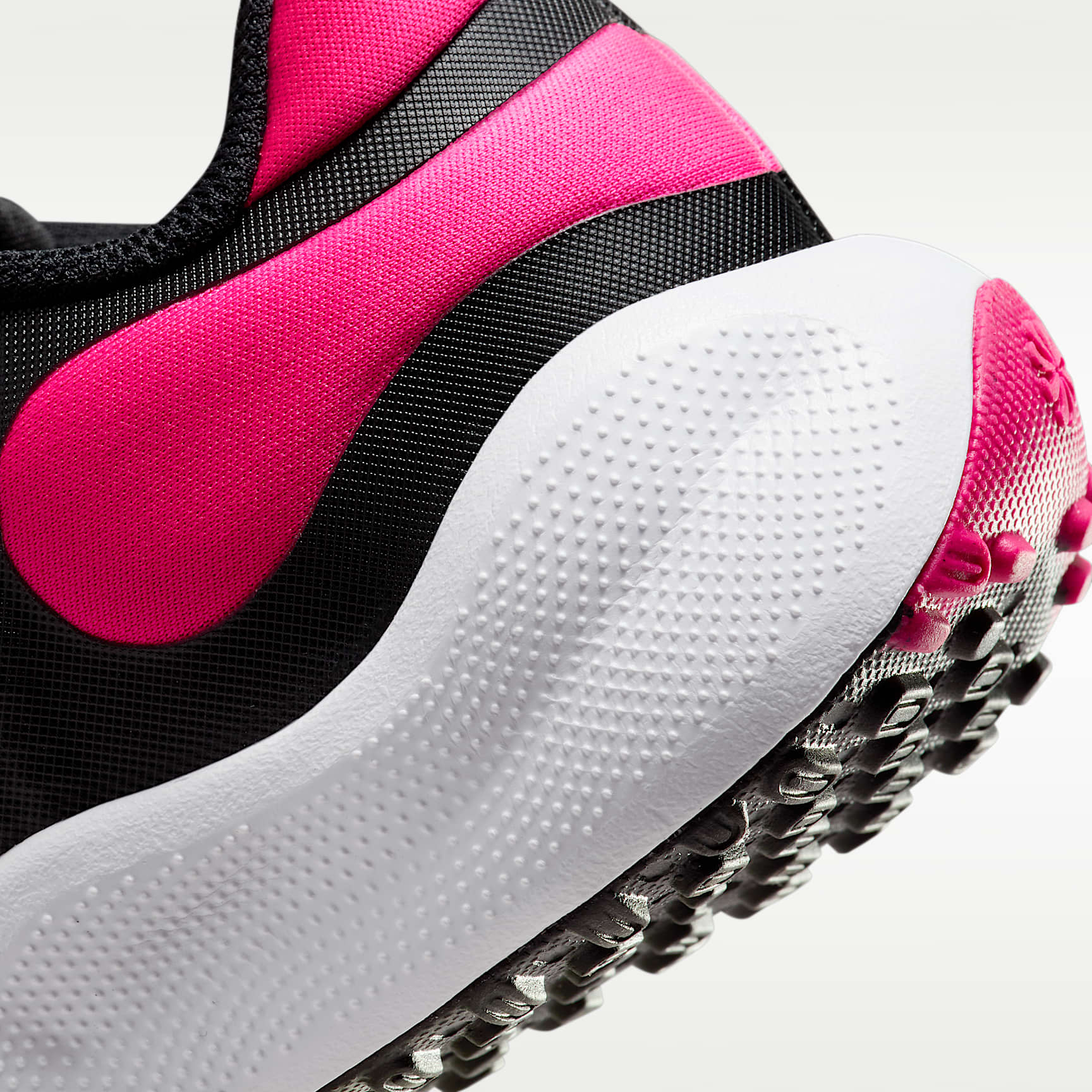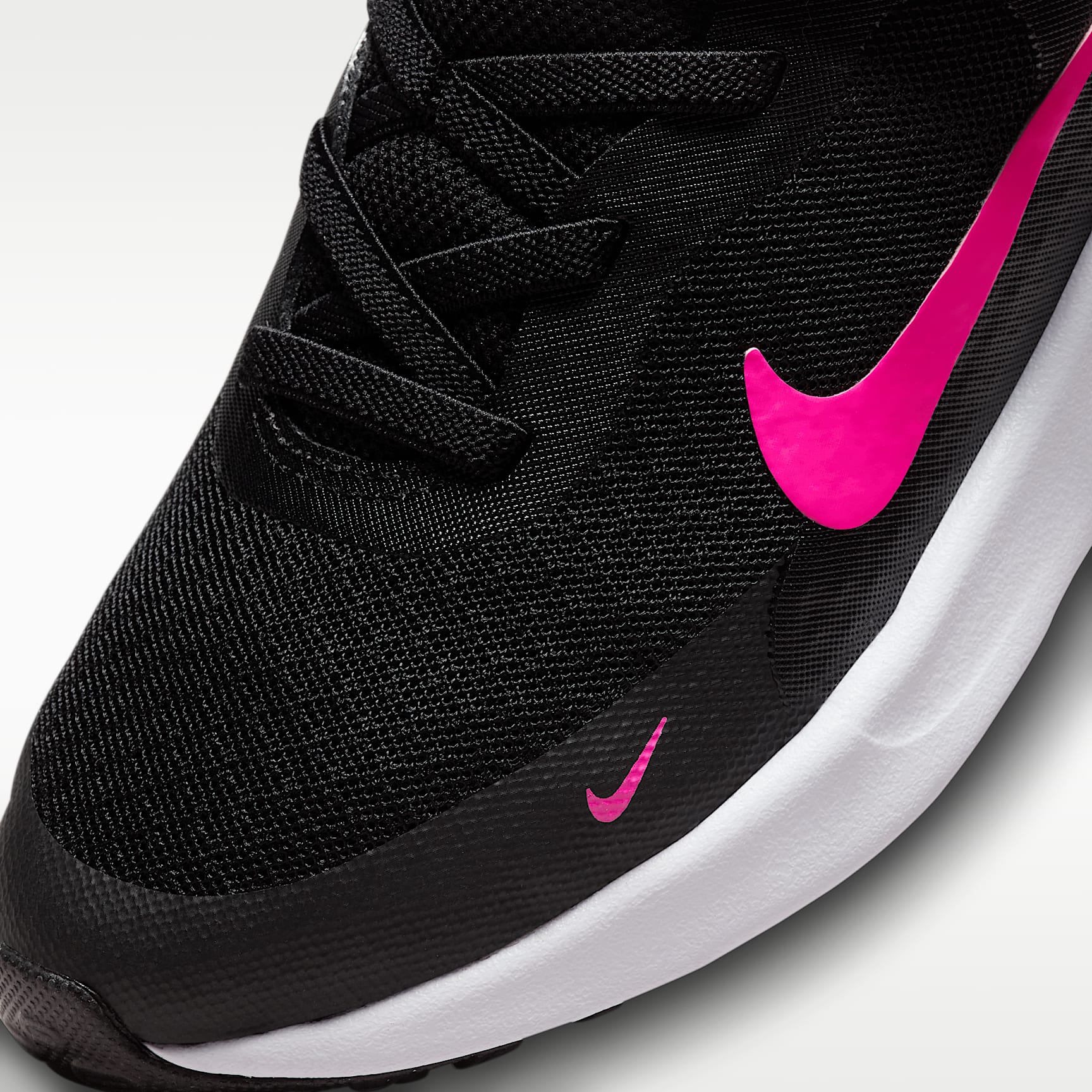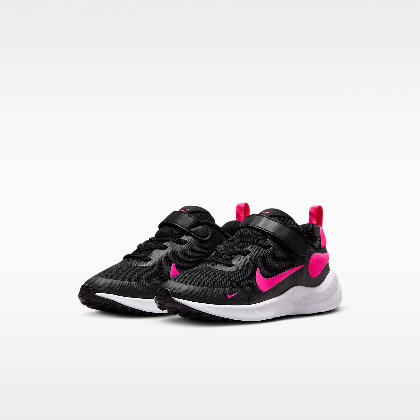 Let your kiddo flash, dash and blast to the finish line in the Nike Revolution 7. Made for days filled with fun, it features springy foam and a durable, Waffle-inspired outsole for all the cushioning and traction kids need to race into play. What's New We added more foam to the midsole and extra cushioning around the heel for a truly comfortable feel. Easy to Put On Elastic laces and a hook-and-loop strap make these shoes easy to take on and off. Reinforced Upper Lightweight textiles up top help keep these shoes breathable. We reinforced high-wear areas like the toe for added durability. Soft Foam Midsole Soft, springy foam in the midsole helps cushion their every stride as run and play the day away. Padded Collar Pillow-soft foam around the collar and heel adds another layer of comfortable cushioning. Durable Traction Durable rubber outsole features a Waffle-inspired tread pattern to help give kids grippy traction. Product Details * Elastic laces * Foam midsole * Rubber toe tip