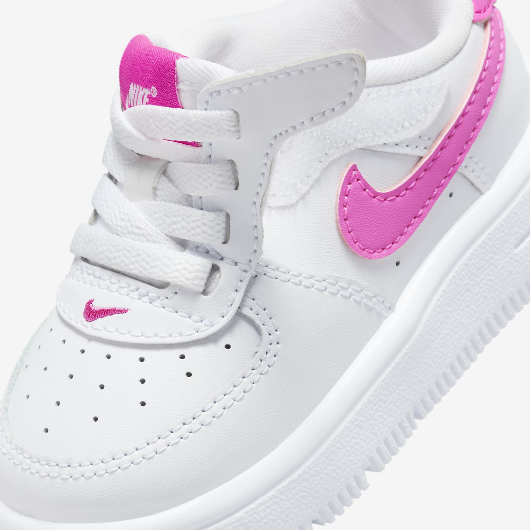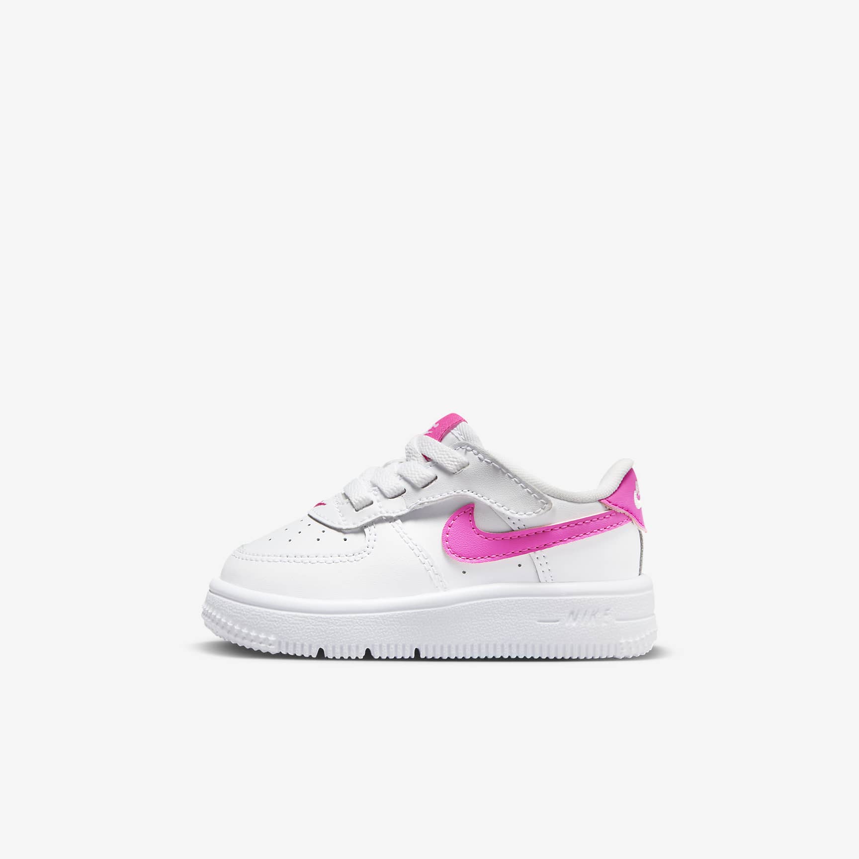 The look of laces without the struggle of having to tie them? Now, that's easy. The laces on these sneakers are just for show—the lace area opens up so squirmy feet can slip in easily. The quick-to-secure strap helps you lock in and adjust the fit. No tying needed! But these shoes aren't just easy to put on. We designed them around kids' feet for overall comfort too. Benefits * FlyEase is now Nike EasyOn. Our helpful Nike EasyOn features empower kids to do it themselves so they can focus on what matters most: play. * Hook-and-loop strap lets you open the lace area like a book to help make it easy to slip these on squirming feet. * Stitched-down laces let kids enjoy the traditional look of the AF-1. * More foam means more comfort! Soft foam underfoot helps cushion every step. * Flex grooves in the outsole help each step feel natural. Product details * Stitched-down classic laces * Perforations on the toe
