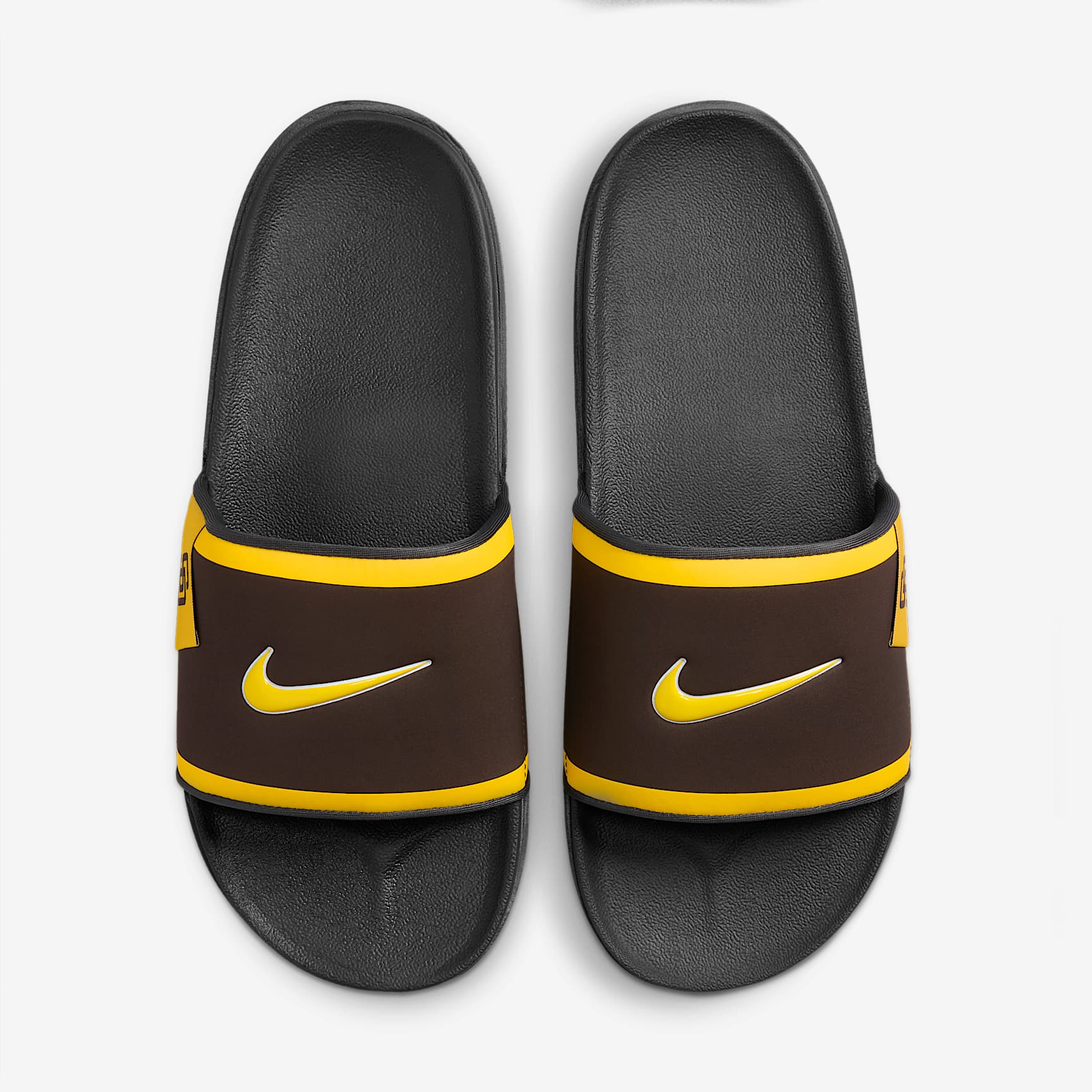 Rep the San Diego Padres all the way down to your feet in these Offcourt slides. A cushioned synthetic leather strap features your team's logo, while an innovative foam midsole makes this slide so comfy, you’ll never want to take it off. Benefits * Contoured footbed cradles your foot while the dual-density foam adds cushioning and stability. * Soft, plush fabric lines the synthetic leather strap to add comfort.