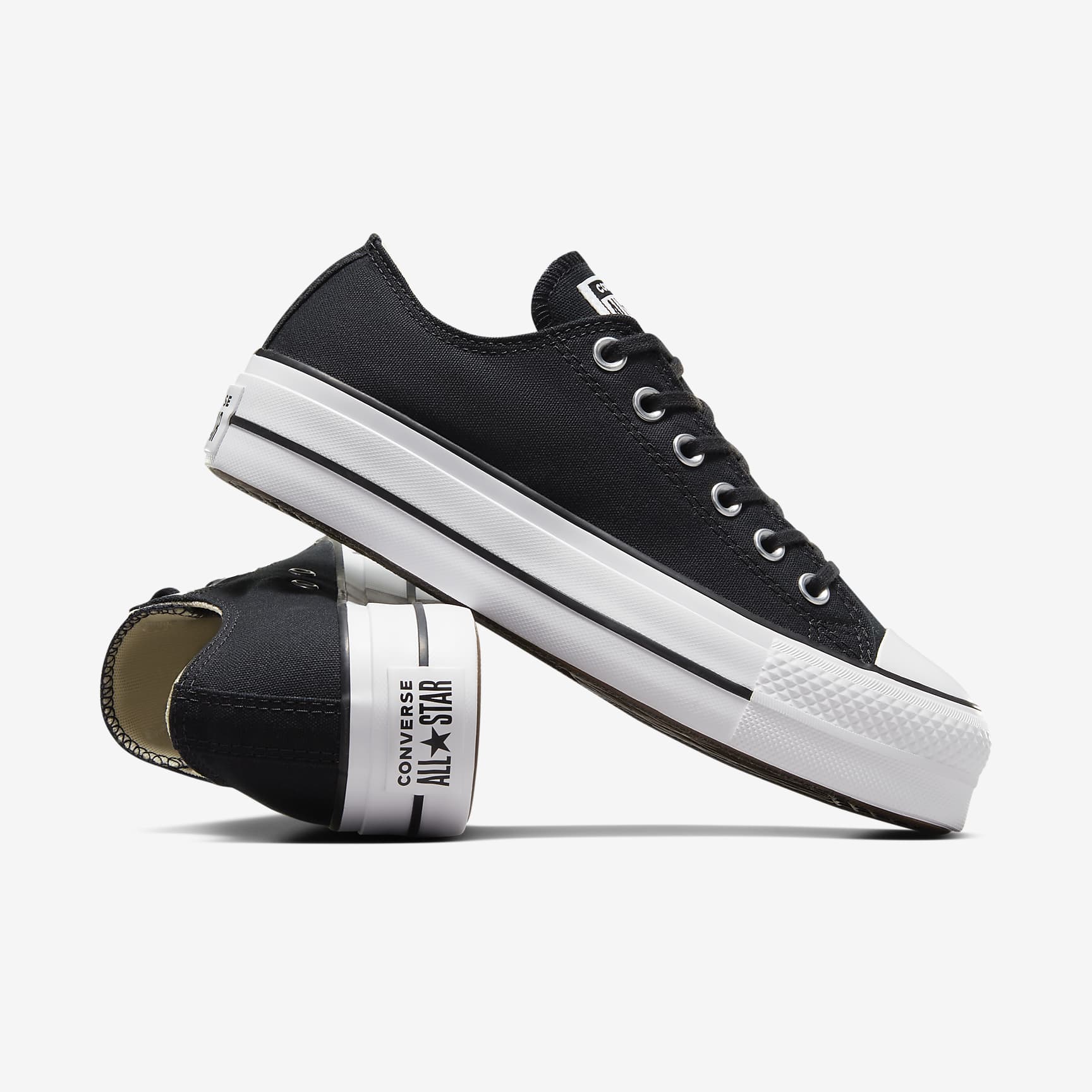 Iconic Chucks you love, double-stacked. Pick these if you want to give yourself a boost. Benefits * Canvas upper is lightweight and durable. * That timeless silhouette you’ve come to love. * Double-stacked rubber sole for added height. * Medial eyelets help keep your feet cool. * Reimagined license plate.