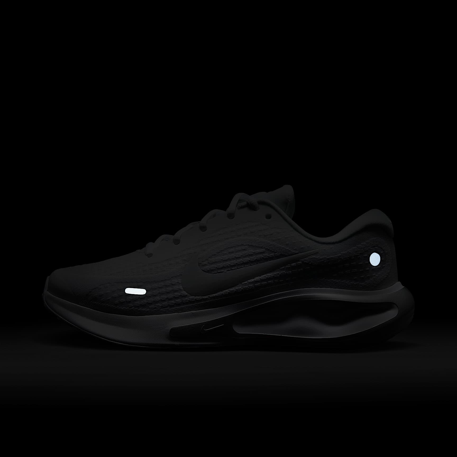 Enjoy every step, route and jaunt in the Nike Journey Run. It’ll have you striding and smiling on punishing pavements, thanks to extra-high foam stacks and supersoft cushioning. It's so comfy that you'll already be looking forward to lacing 'em up again. Engineered Mesh Upper An engineered mesh upper helps your feet feel secure. Extra Cushion Extra cushioning in the heel and soft touch points in the tongue and collar add comfort to every step. Grippy Traction A rubber outsole provides grippy traction for your miles. Product Details * Reflective details * Not intended for use as Personal Protective Equipment (PPE)