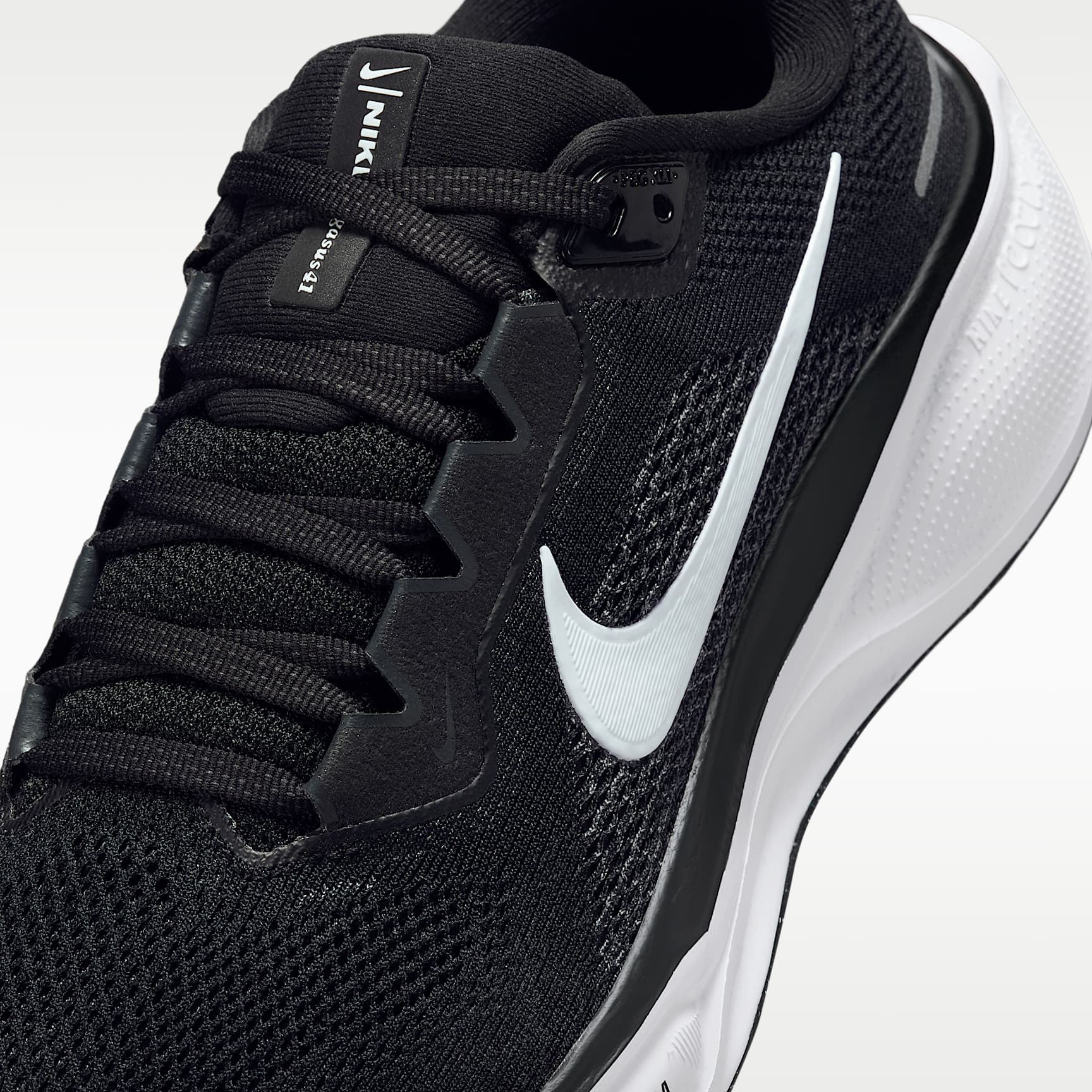 Springy foam plus snappy Air Zoom units equals our most energised ride. Responsive cushioning in the Pegasus provides an energised ride for everyday road running. Experience lighter-weight energy return with dual Air Zoom units and a ReactX foam midsole. Plus, improved engineered mesh on the upper decreases weight and increases breathability. Responsive Ride ReactX foam midsole surrounds forefoot and heel Air Zoom units for an energised ride. It's 13% more responsive than previous React technology. Waffle-inspired traction The signature Waffle-inspired rubber outsole provides traction and flexibility. Plush padding A plush collar, tongue and sockliner provide a secure and comfortable fit. What's new? * A ReactX foam midsole * A lighter, more breathable engineered mesh upper Product details * Weight: approx. 251g (women's size 5.5) * Heel-to-toe drop: 10mm * MR-10 last—our best, most consistent fit (same as Pegasus 40) * Reflective design details * Not intended for use as personal protective equipment (PPE)