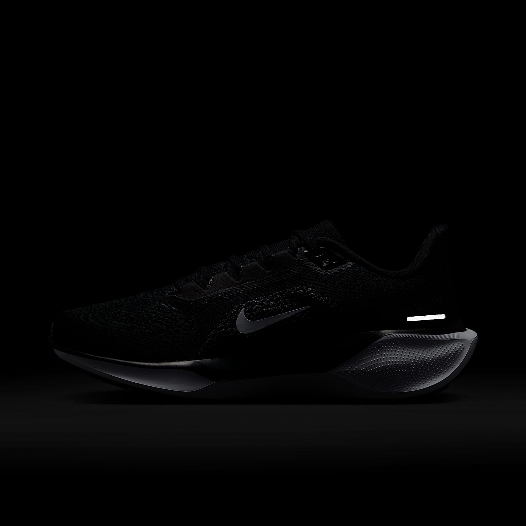 Responsive cushioning in the Pegasus provides an energised ride for everyday road running. Experience lighter-weight energy return with dual Air Zoom units and a ReactX foam midsole. Plus, improved engineered mesh on the upper decreases weight and increases breathability. Springy cushioning We paired Nike ReactX foam with two Air Zoom units (one in the forefoot and one in the heel) to give you a bouncy, springy sensation and an energised feel at toe-off. Waffle-inspired traction The signature Waffle-inspired rubber outsole provides traction and flexibility. Plush padding A plush collar, tongue and sockliner for a secure and comfortable fit What's new? * The ReactX foam midsole is 13% more responsive than previous React technology. * The engineered mesh upper is lighter and more breathable than the Pegasus 40. Product details * Weight: 251g approx. (women's size 5.5) * Heel-to-toe drop: 10mm * MR-10 last—our best, most consistent fit (same as Pegasus 40) * Reflective design details * Not intended for use as personal protective equipment (PPE)