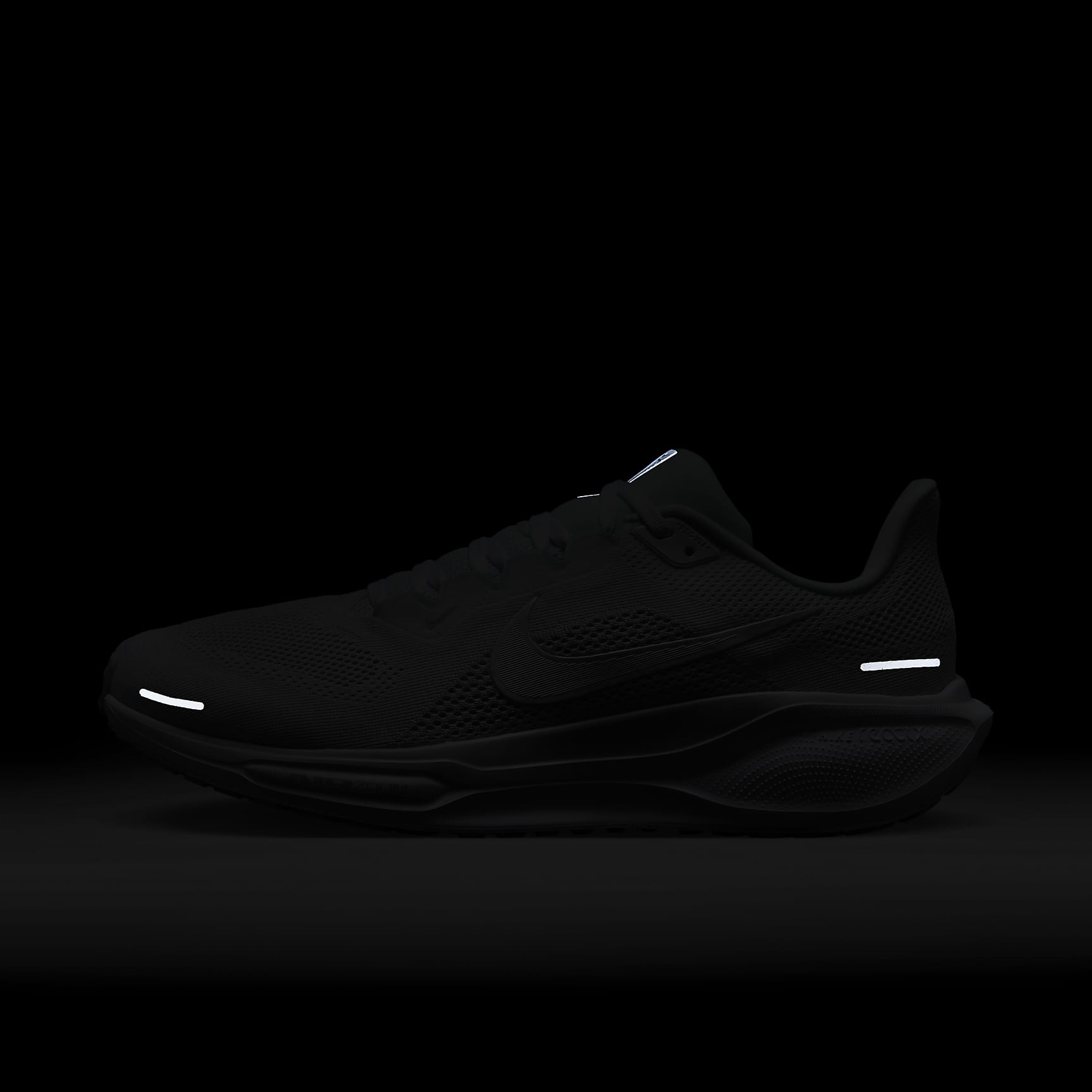 Springy foam plus snappy Air Zoom units equals our most energized ride. Responsive cushioning in the Pegasus provides an energized ride for everyday road running. Experience lighter-weight energy return with dual Air Zoom units and a ReactX foam midsole. Plus, improved engineered mesh on the upper decreases weight and increases breathability. Responsive Ride ReactX foam midsole surrounds forefoot and heel Air Zoom units for an energized ride. It's 13% more responsive than previous React technology. Waffle-Inspired Traction Signature waffle-inspired rubber outsole provides traction and flexibility. Plush Padding Plush collar, tongue and sockliner provide a secure and comfortable fit. What's New? * ReactX foam midsole * Lighter, more breathable engineered mesh upper Product Details * Weight: Approx. 297g/10.5oz (Men's US 10) * Heel-to-toe drop: 10mm * MR-10 Last - Our best, most consistent fit (same as Pegasus 40) * Reflective details * Not intended for use as Personal Protective Equipment (PPE)