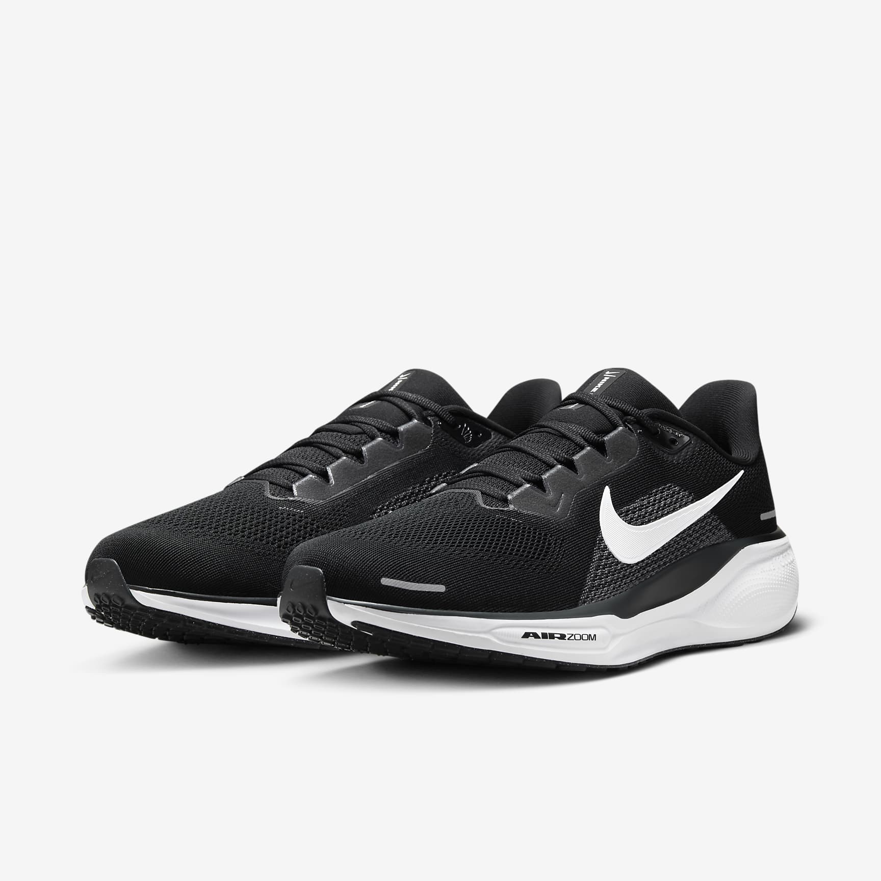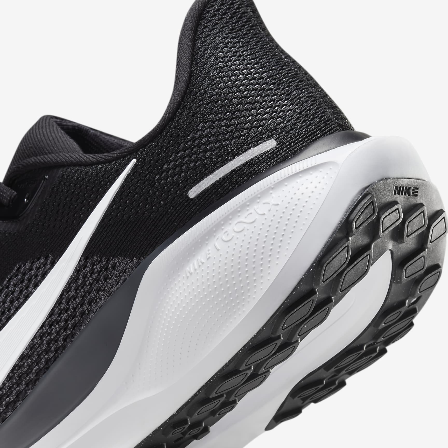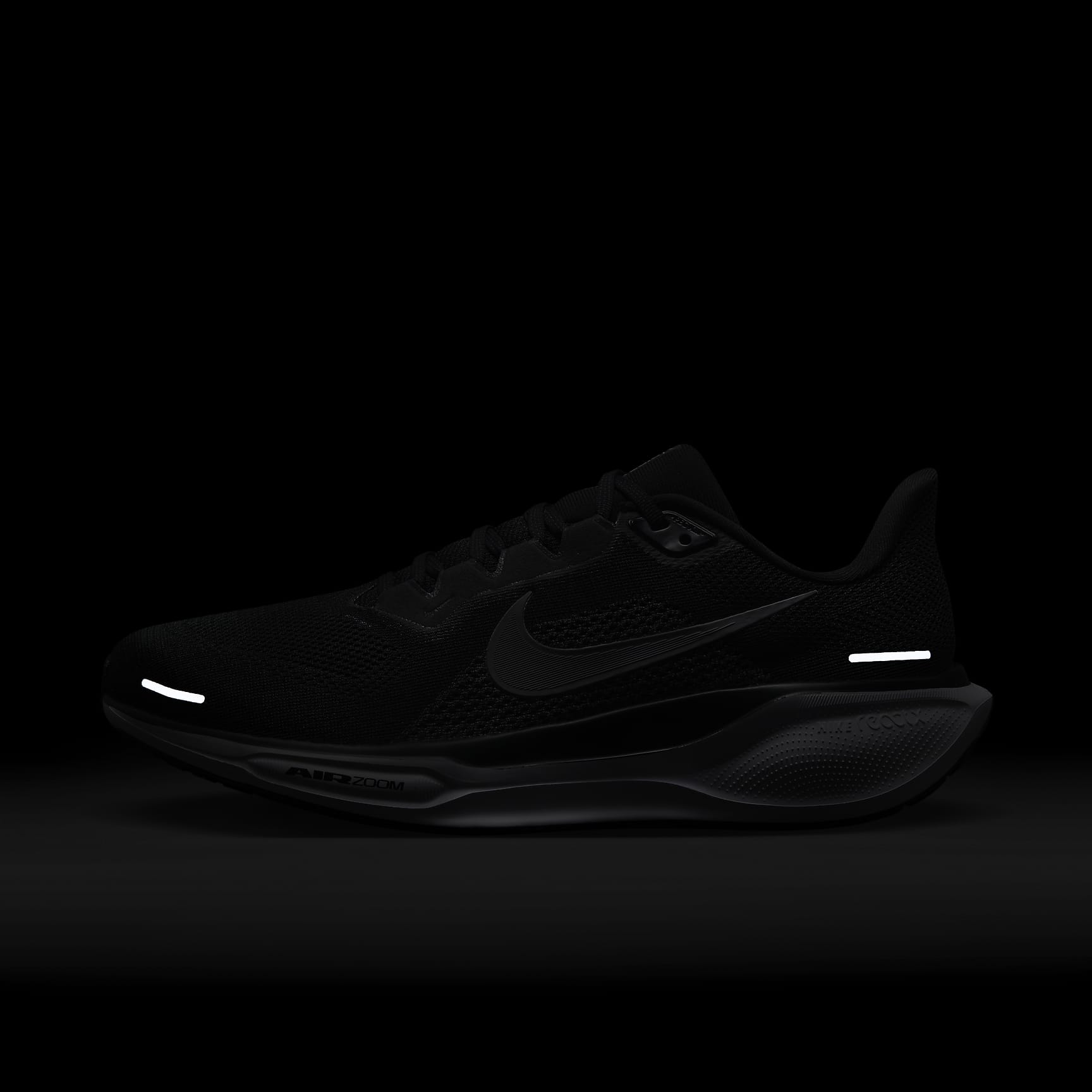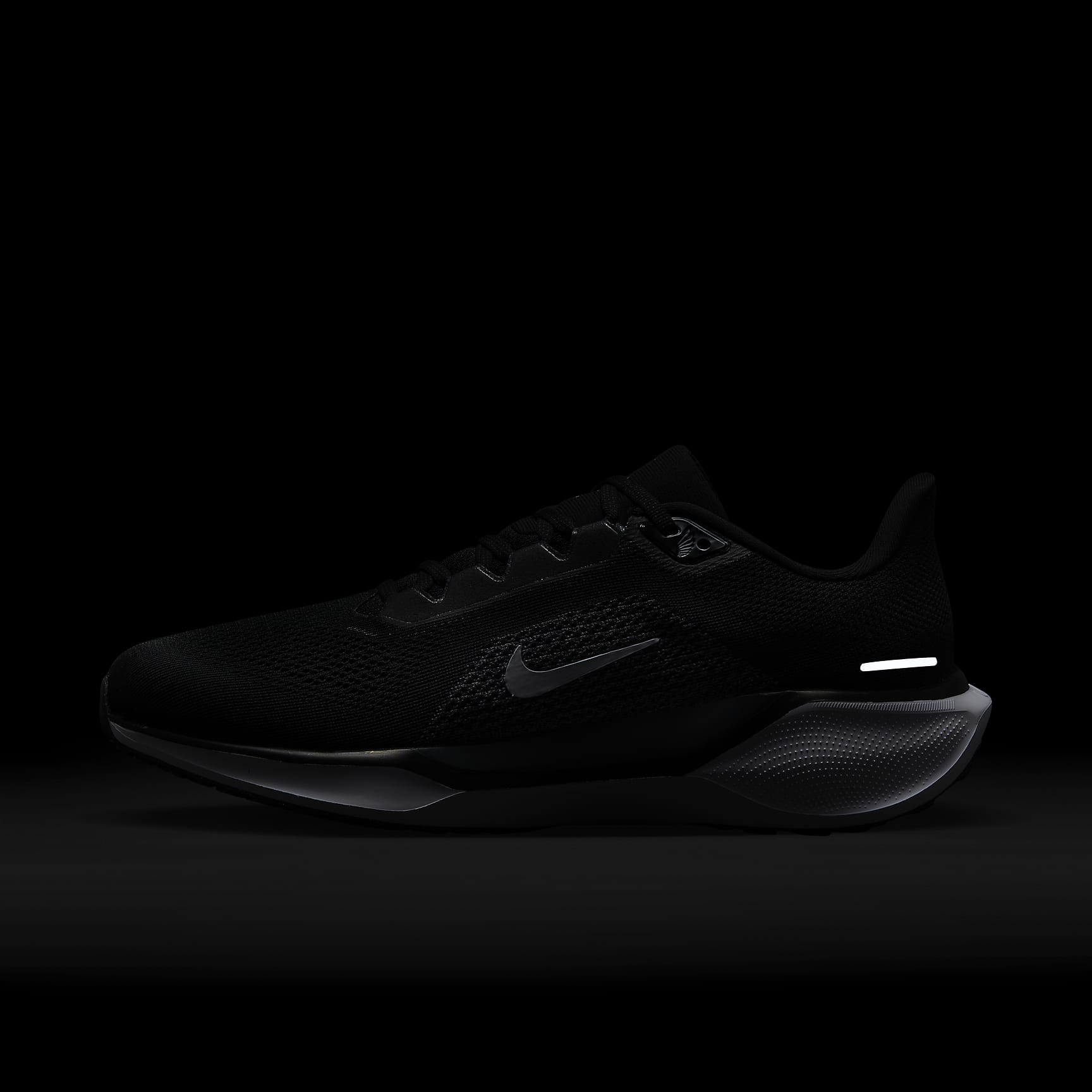 Responsive cushioning in the Pegasus provides an energized ride for everyday road running. Experience lighter-weight energy return with dual Air Zoom units and a ReactX foam midsole. Plus, improved engineered mesh on the upper decreases weight and increases breathability. Springy Cushioning We paired Nike ReactX foam with two Air Zoom units (one in the forefoot and one in the heel) to give you a bouncy, springy sensation and an energized feel at toe-off. Waffle-Inspired Traction Signature waffle-inspired rubber outsole provides traction and flexibility. Plush Padding Plush collar, tongue and sockliner for a secure and comfortable fit What's New? * ReactX foam midsole is 13% more responsive than previous React technology. * Engineered mesh upper is lighter and more breathable than the Pegasus 40. Product Details * Weight: Approx. 297g/10.5oz (Men's US 10) * Heel-to-toe drop: 10mm * MR-10 Last - Our best, most consistent fit (same as Pegasus 40) * Reflective details * Not intended for use as Personal Protective Equipment (PPE)