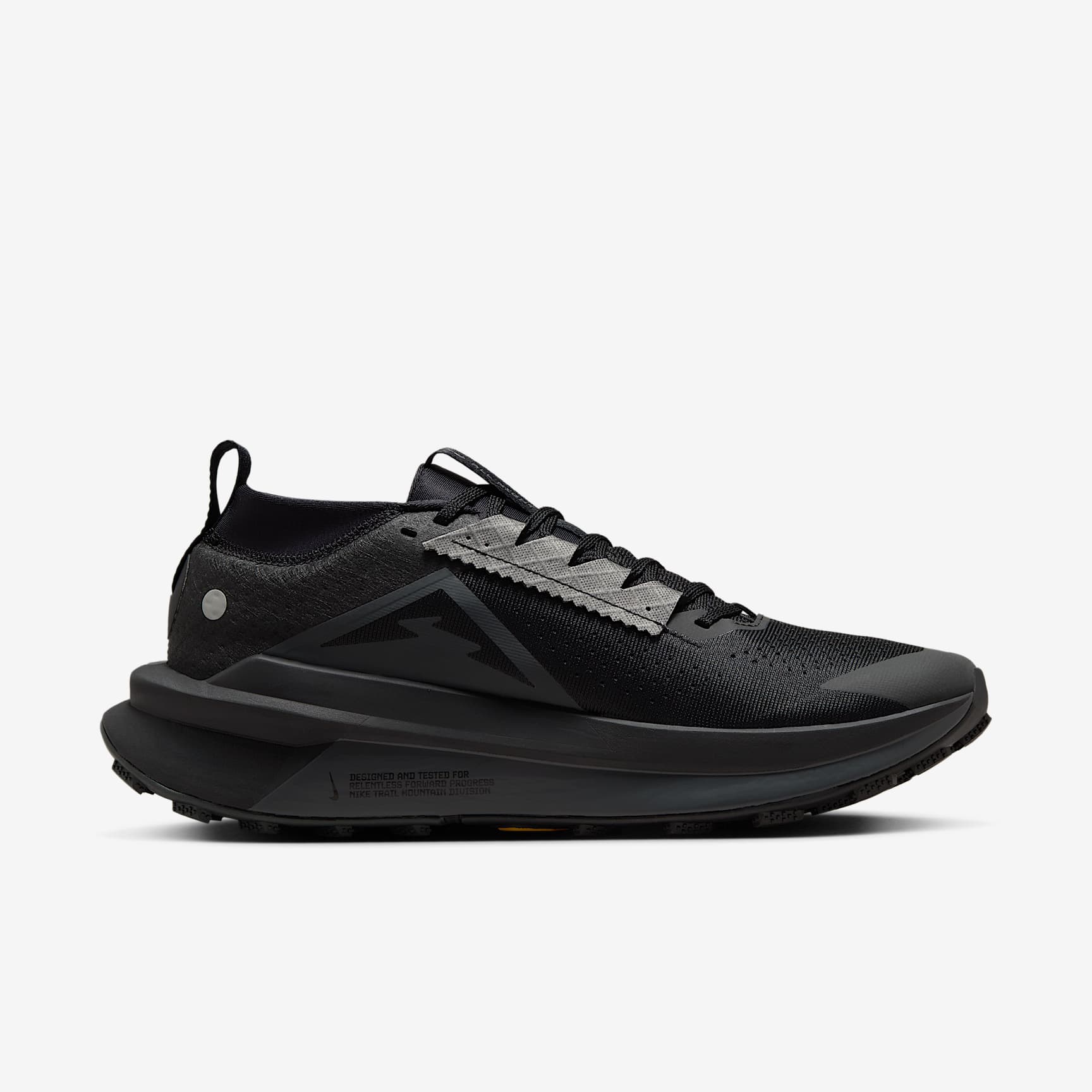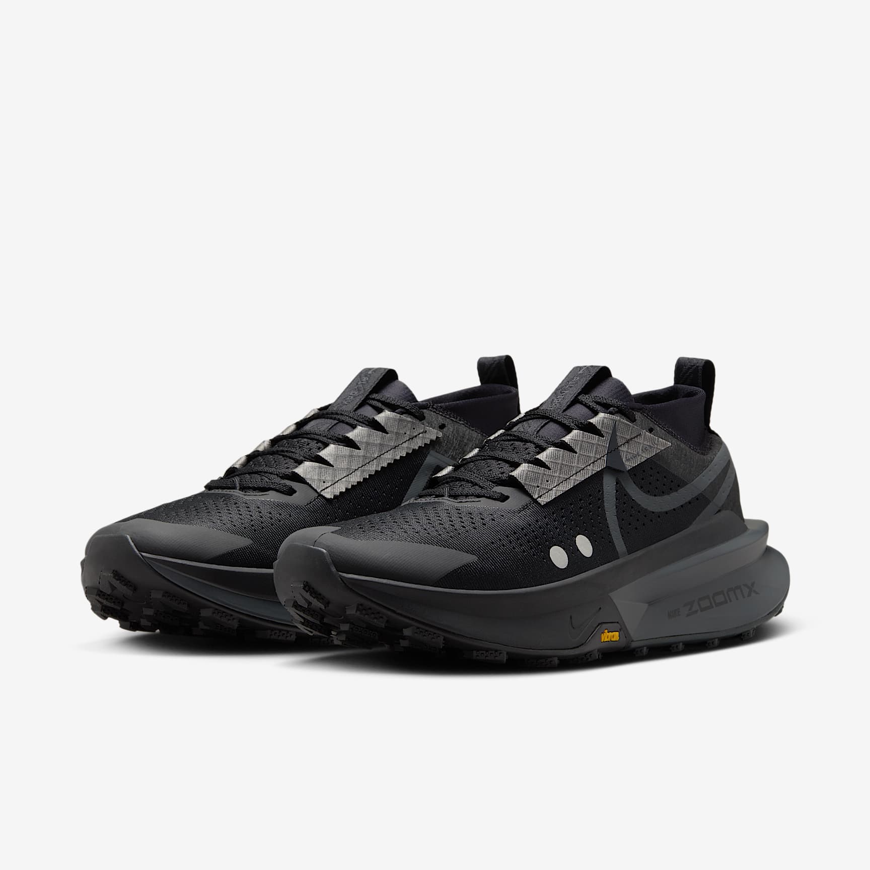 Equipped with an ultra-responsive ZoomX foam midsole, the Zegama 2 is designed to conquer steep ridges, jagged rocks and races from trailhead to tip. Optimal cushioning complements a rugged outsole made for your trail-running journey. Engineered mesh Engineered mesh—stronger and more flexible than normal mesh—on the upper helps provide stability for various trail conditions. ZoomX midsole A lightweight Nike ZoomX midsole is combined with increased stack heights to help provide cushioning during extended stretches of running. Traction for technical terrain Vibram Zegama outsole made with Vibram Megagrip has a diverse lug pattern highlighted with wide spacing. This means you get traction for more technical terrain. More benefits * The ankle gaitor helps limit trail debris from getting in your shoe. * Overlays stretch across the toe for extra durability. Product details * Weight: 320g (approx.) (men's size 9) * Heel-to-toe drop: 4mm * Reflective design details * Not intended for use as personal protective equipment (PPE)