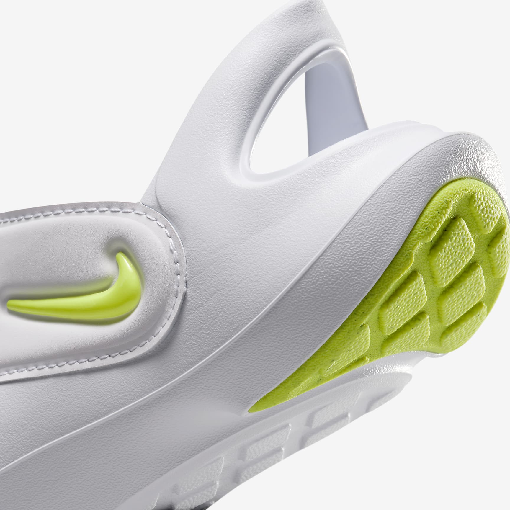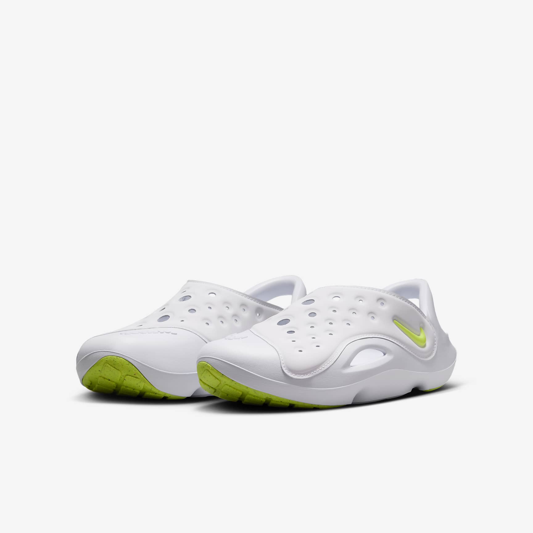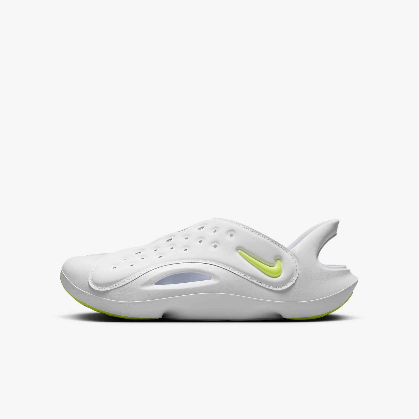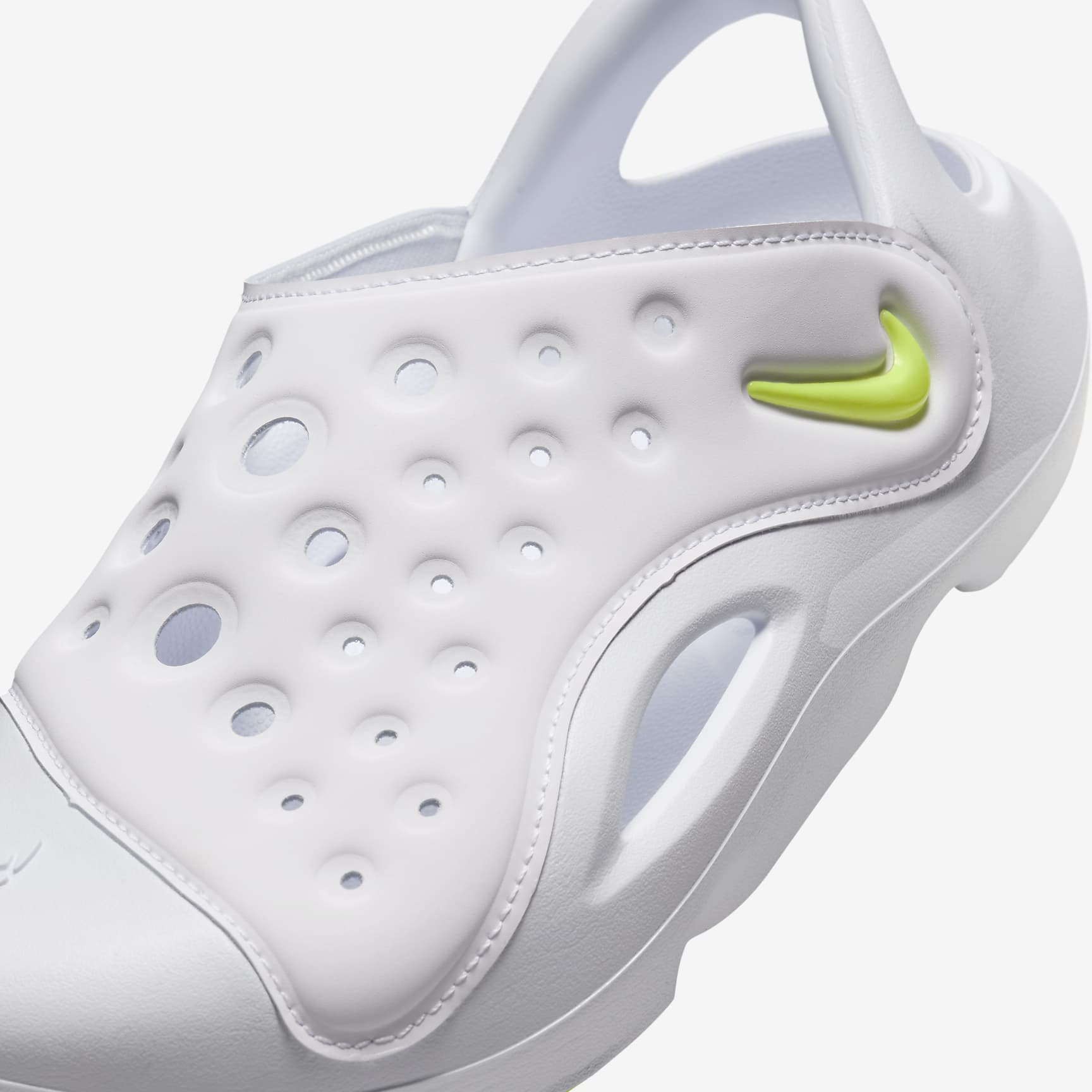 From sunny days at the pool to splashing through creeks, the Nike Aqua Swoosh is ready for it all. Soft fabric up top and plush foam underfoot help make for comfortable steps while a heel strap secures the fit. Plus, drainage holes on the upper and cutouts along the sides help make these ideal for all your water-based adventures. Benefits * Soft and smooth upper helps provide stretchy support. * Fixed heel strap helps secure the fit. * Rubber outsole helps provide durable traction.