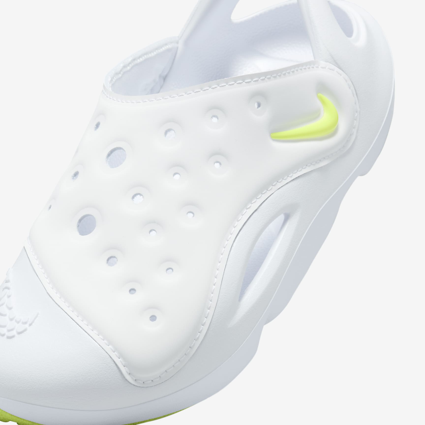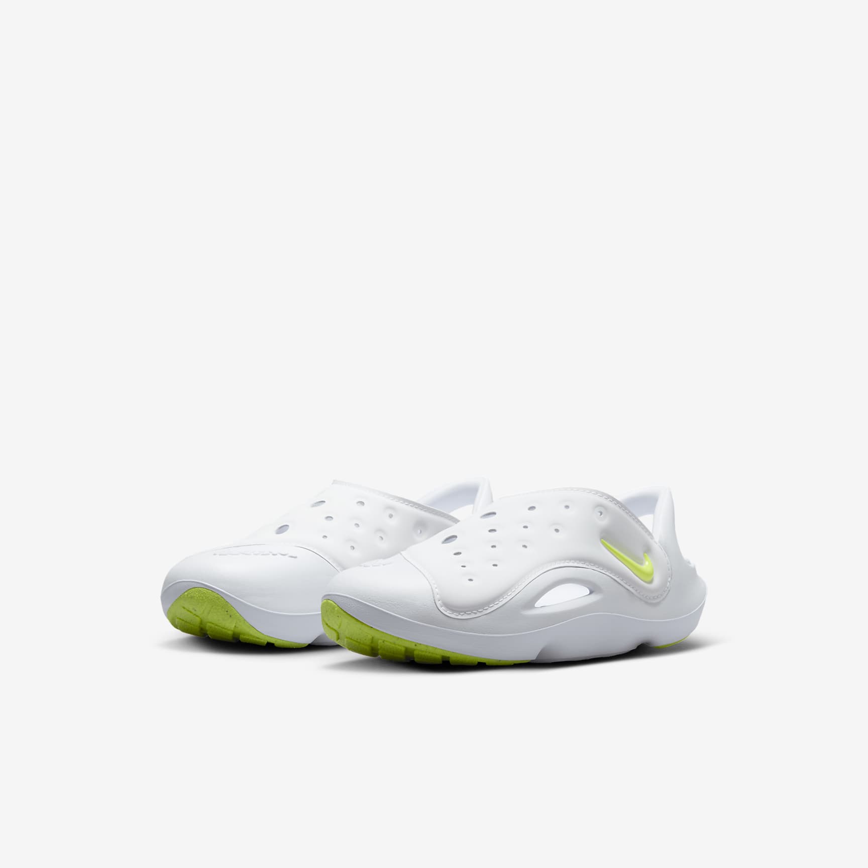 Help your little explorer stay ready for adventure with the Nike Aqua Swoosh. Soft fabric up top and plush foam underfoot help make for comfortable steps while a heel strap secures the fit. Plus, drainage holes on the upper and cutouts along the sides help make these ideal for splash pads, pool days and other water activities. Benefits * Soft and smooth upper helps provide stretchy support. * Fixed heel strap helps secure the fit. * Durable rubber outsole features a tread pattern to help give little feet the traction they need.