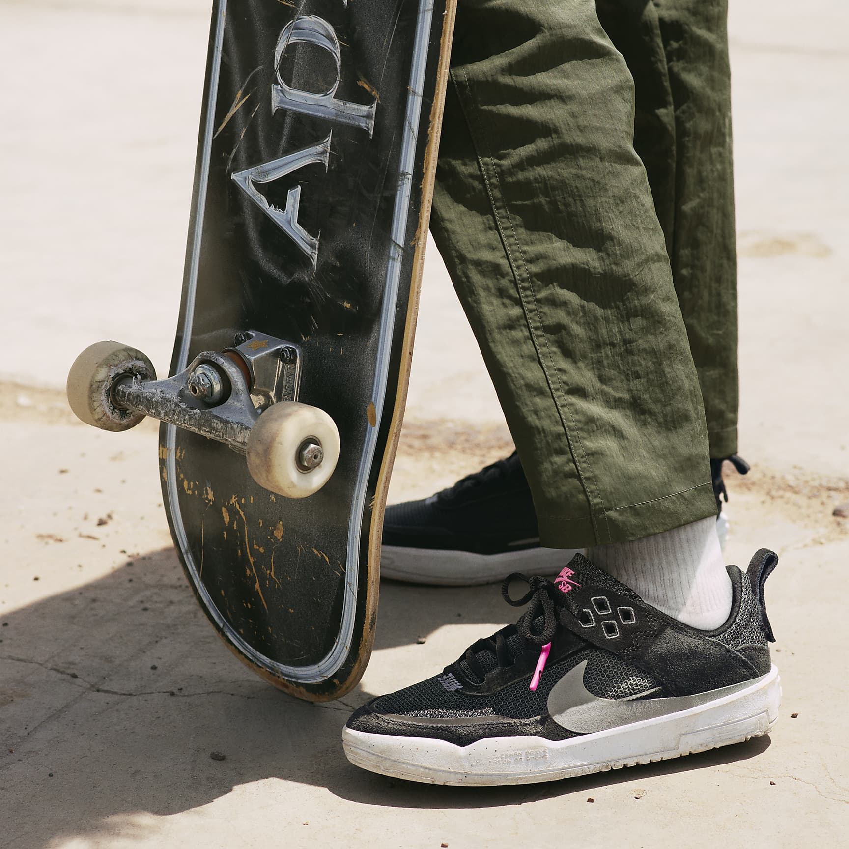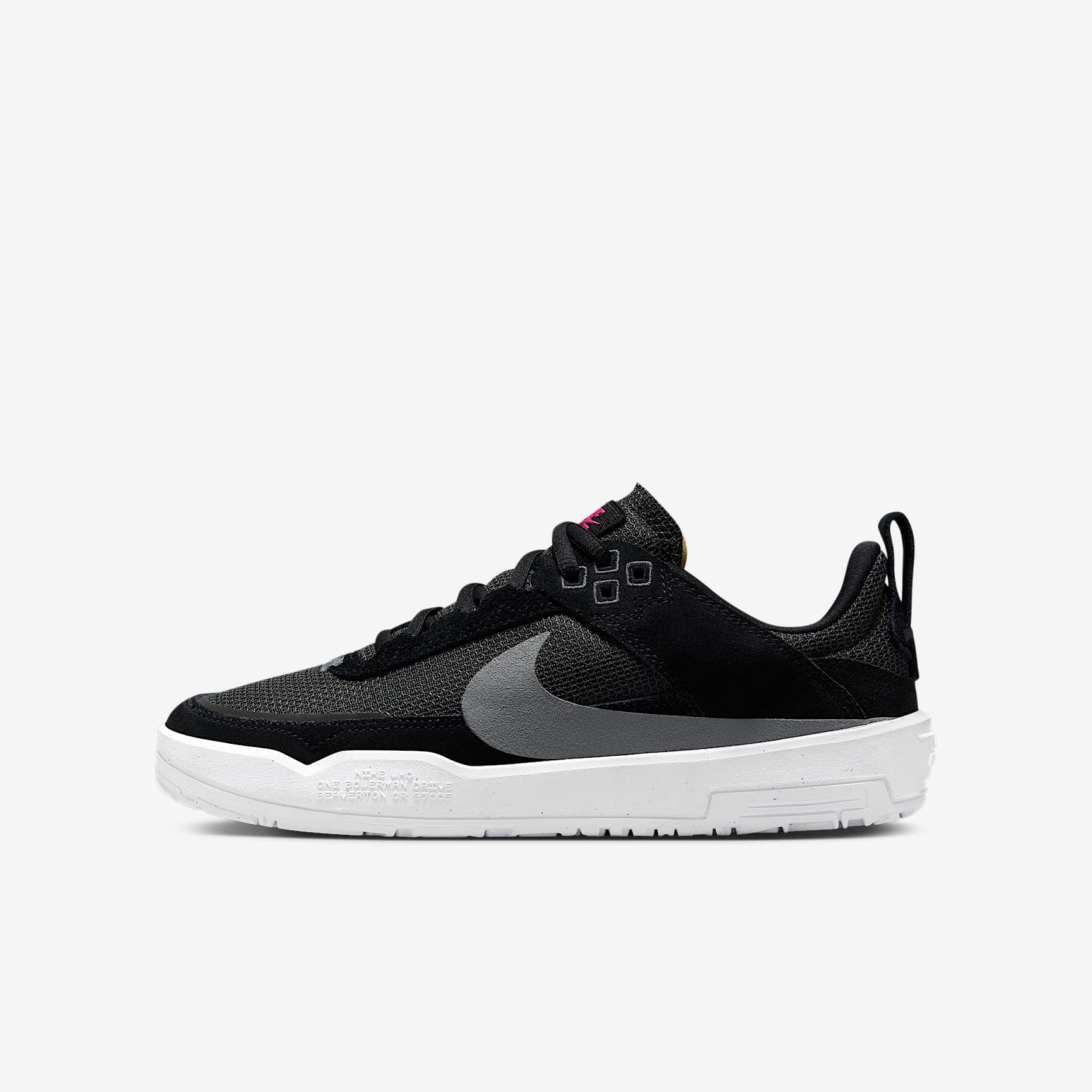 Finally, a skate shoe made just for you! The Nike SB Day One is the first Nike skate shoe made from the ground up specifically for kids. Its skate-specific tread and Zoom Air unit help give you the grip and cushioning you need to keep pushing and trying new tricks. We added mesh up top to help make them breathable while durable suede overlays break in easily to help give you the flick and feel you love. Air You Can Feel Snappy Zoom Air unit helps provide added heel cushioning to give you the comfort you need to skate all day. Boardfeel We know how important it is to be able to feel the board under your feet—it's what helps you control your board. The lighter and more flexible the shoe, the better the boardfeel. With that in mind, we pulled out as much excess foam as we could from these shoes to reduce their overall weight and increase their flexibility. Durable and Breathable Durable suede overlays break in easily to help give you that flick and feel you love. Mesh adds breathability so you never have to end your skate session early because of hot feet. Cupsole Construction? What's That? We used a process called cupsole construction to make these shoes. It means the bottom and top of the shoe are two separate pieces that then get put together. More Benefits * Rubber dipped lace tips help add durability and prevent fraying. * Suede pull tab on the heel helps make these easy to get on. Product Details * Classic laces * Foam in the midsole