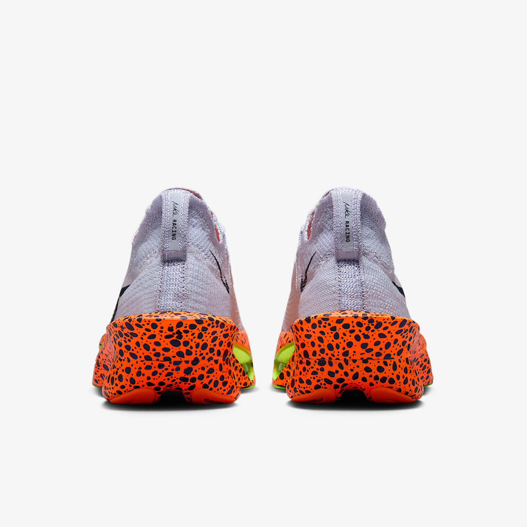 Fine-tuned for marathon speed, the Alphafly 3 helps push you beyond what you thought possible. Three innovative technologies power your run: a double dose of Air Zoom units helps launch you into your next step; a full-length carbon-fibre plate helps propel you forwards with ease; and a heel-to-toe ZoomX foam midsole helps keep you fresh from start to 26.2. Time to leave your old personal records in the dust. Energy return for your marathon Two forefoot Air Zoom units combine with ZoomX foam to store and return the energy back to you, powering every step. Propulsive feeling A full-length carbon-fibre plate delivers a propulsive sensation that helps you smoothly transition through every stride and tackle turns with confidence. Cushioned ride Fully connected ZoomX foam creates an ultralight and cushioned feel, helping you stay fresh and comfortable from mile 1 to 26.2. What's new about the Alphafly 3? The Alphafly 3 is our lightest Alphafly ever, featuring a slightly wider carbon-fibre plate for increased stability, a fully connected ZoomX foam midsole for smoother transitions and an all-new AtomKnit upper designed for improved multi-directional containment and breathability. More benefits * Notched laces offer a secure but soft lace-up. * Integrated knit tongue with lofted padding helps alleviate lace pressure. Product details * Weight: 174g approx. (women's UK 5.5) * Heel-to-toe drop: 8mm