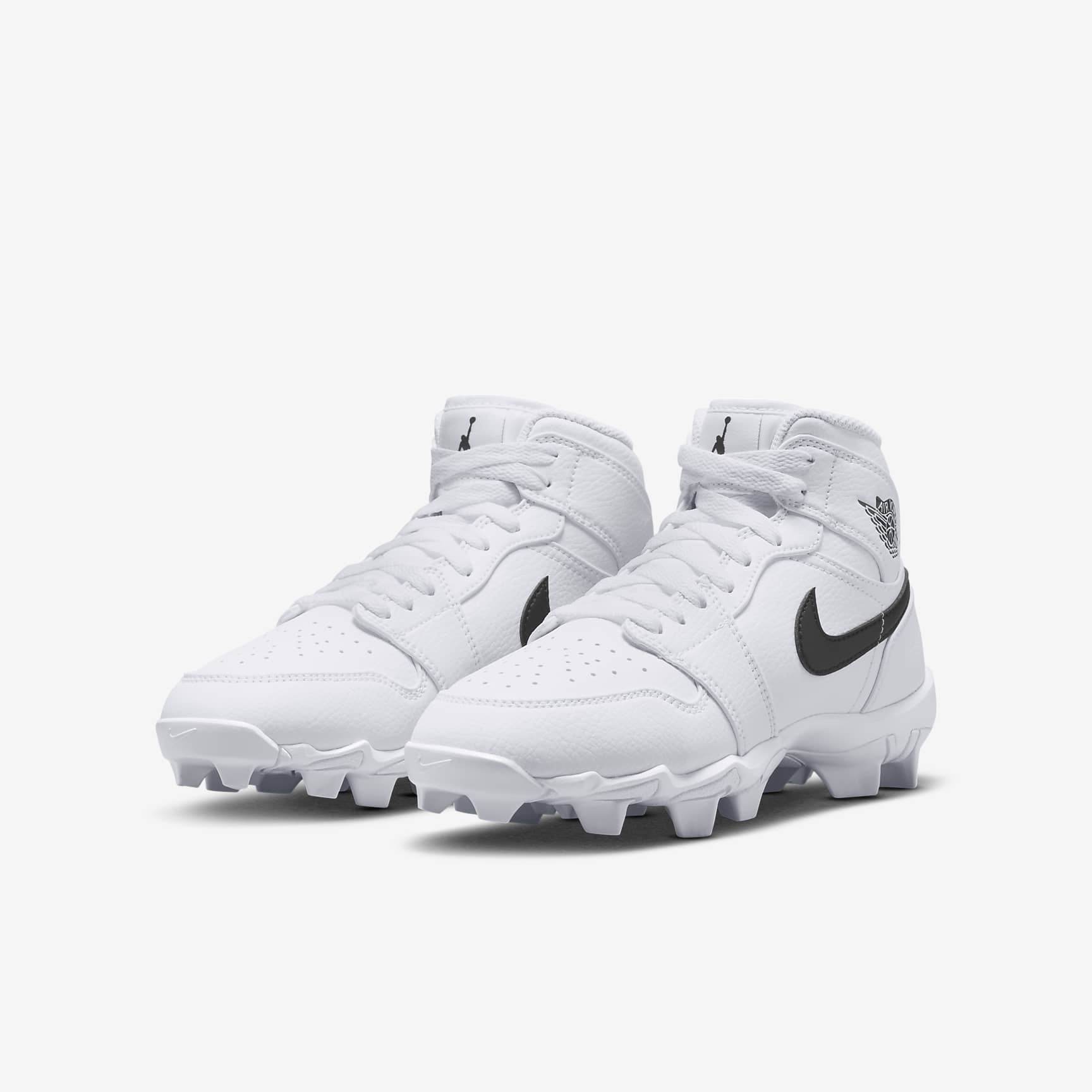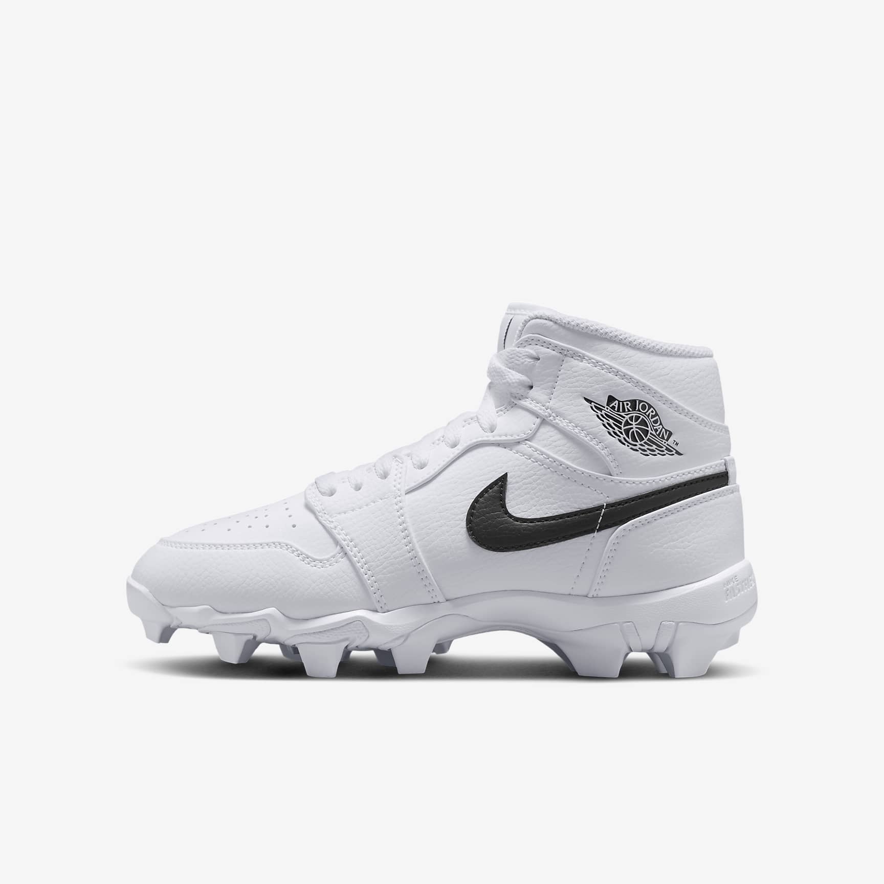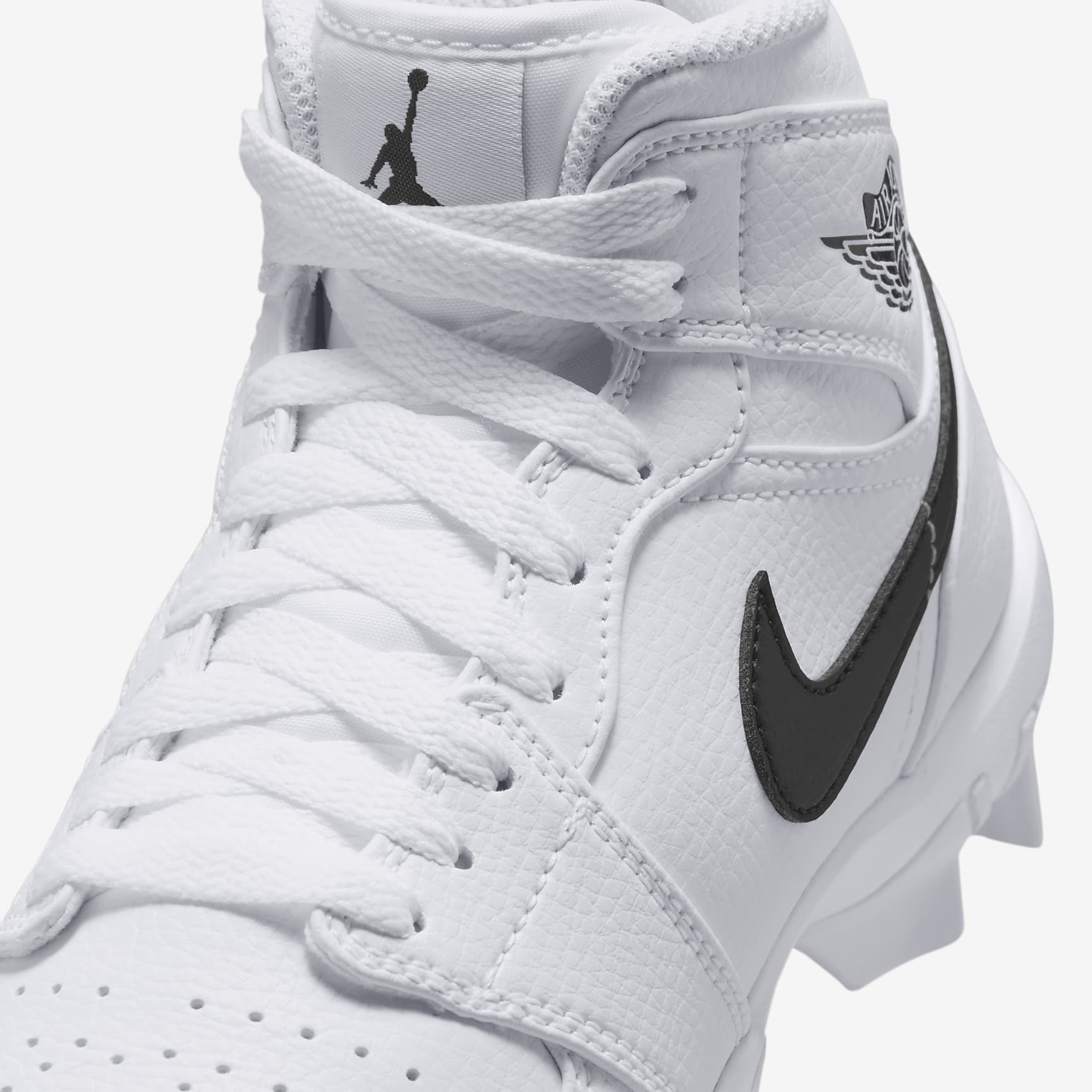 No matter what game you're playing, the Jordan 1 cleat is here to help give you a little extra edge on the field. Its wide stud placement helps you cut fast while external pods deliver optimal traction for quick pivots. Plus, its durable design is ideal for whatever activity you choose—whether that’s football, baseball, softball or lacrosse. Benefits * Upper takes the best parts of the AJ1 and reimagines the silhouette as a cleat. * Synthetic leather adds durability and structure. * Wide stud placement helps you make quick cuts on the field. Product Details * Classic laces * Perforations on toe
