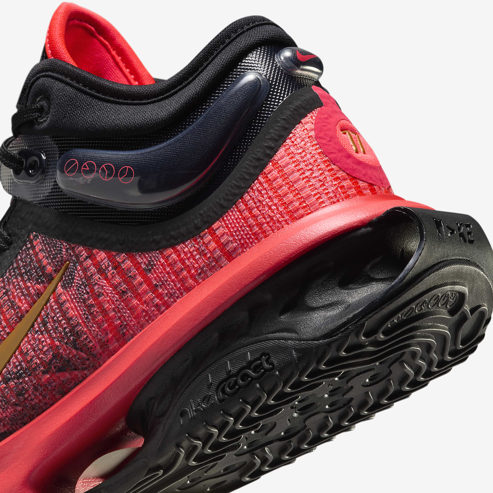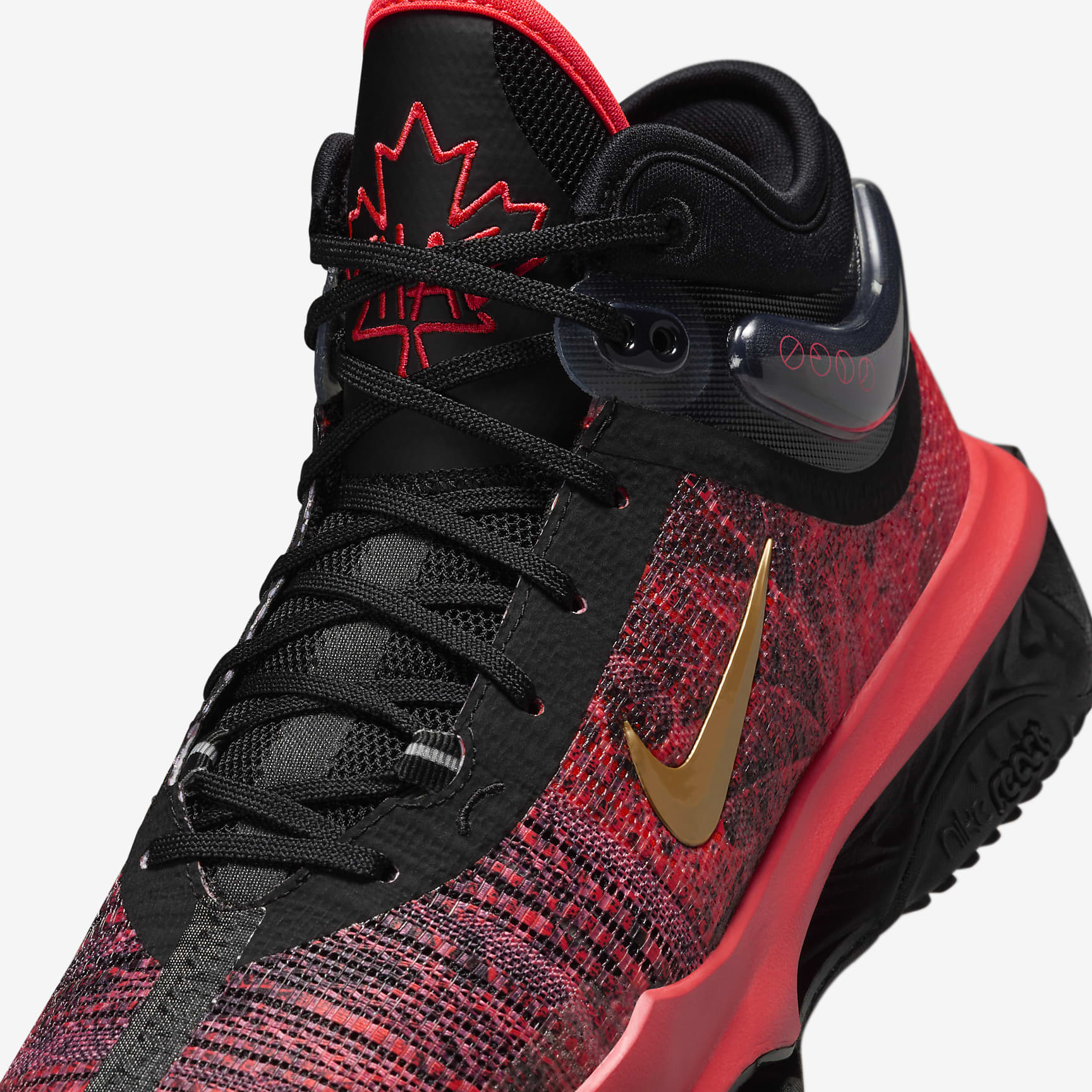 Shaedon Sharpe will posterise a poor defender yet head back on defence without so much as a shrug. This special G.T. Jump 2 celebrates the high-flying, humble Canadian, taking its cues from his country's origins and the team that picked him. Show off your bounce with three Air Zoom units that offer next-level, Shaedon-like springiness. Nike React foam helps cushion the landing once you've come down from the clouds and helps keep you fresh as you get ready for lift-off once again. See you at the rim. Behind the design The Swoosh logo and outsole are dipped in gold to represent the rising star's nickname, "Sugar Shae", coined by his family as a nod to his sweet nature. And, of course, the red and white colours shout out the team that picked him and the country he proudly reps at the global level. Ready for take-off Three doses of Air Zoom units (bottom layer of the upper and 2 forefoot units) give you more bounce off the floor. It is combined with the jump plate, wrapped with rubber for added support and durability, for an extra spring. Land softly Nike React foam in the heel offers cushioning and comfort when landing suddenly and powerfully. The moulded heel has a curve for energy absorption and support. The iconic heel and collar design provide lightweight containment and manage micro-movements of the foot. Pick your direction The herringbone traction uses data-informed design to create grip on the court. Linear and lateral lines provide multi-directional grip that helps reduce slipping and sliding.