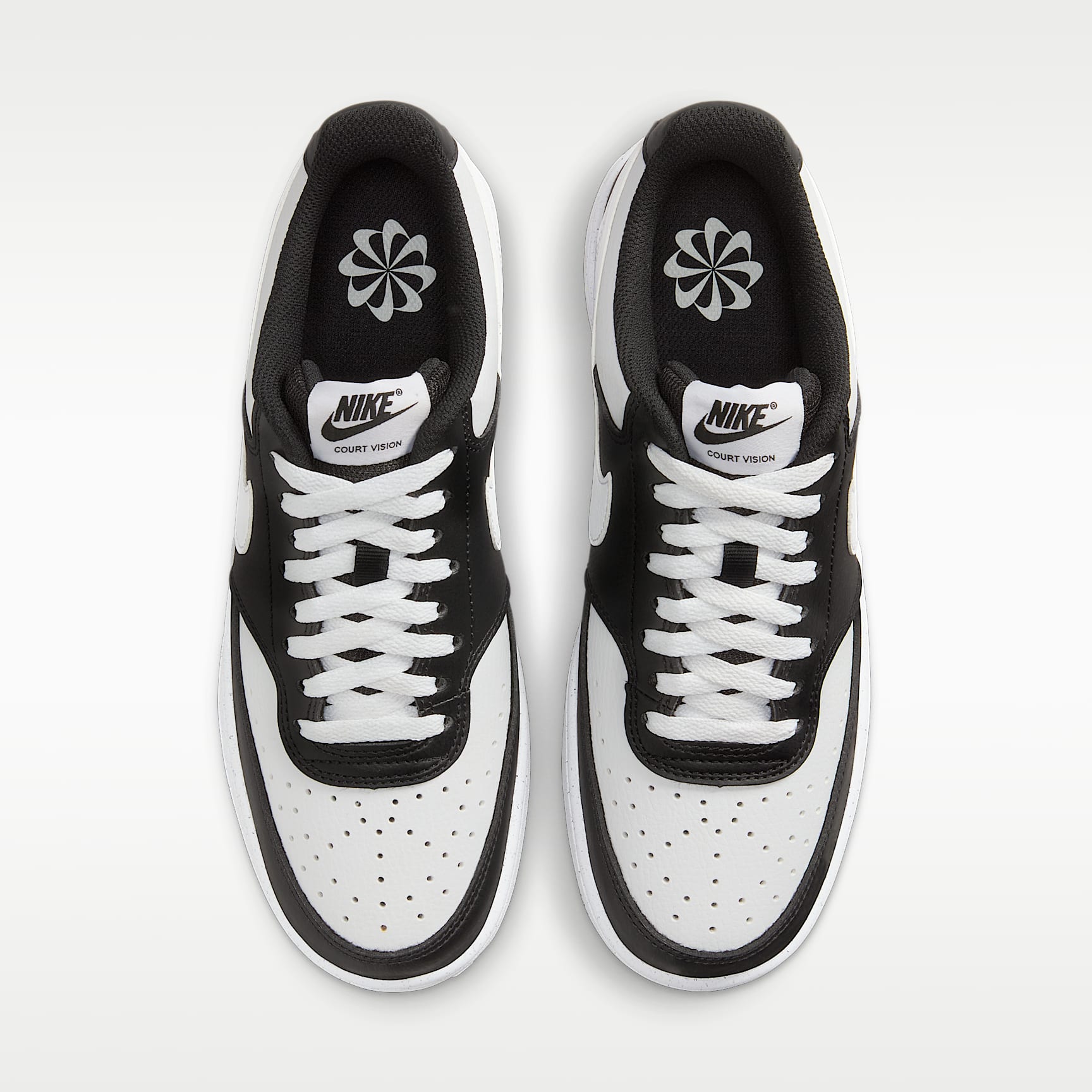 FRESH OFF THE COURT. In love with the classic look of '80s basketball but have a thing for the fast-paced culture of today's game? Meet the Nike Court Vision Low Next Nature. Made from at least 20% recycled materials by weight, its crisp upper and stitched overlays are inspired by the days of hook-shots and tube socks. The padded collar and rubber outsole bring comfort and traction for your world. Benefits * Made from at least 20% recycled material by weight. * Using synthetic materials, the design features materials that echo mid-1980s basketball shoes. * Padded, low-cut collar looks sleek and feels great while the perforations on the toe and sides add comfort and breathability. * Vulcanised construction fuses the outsole to midsole for a streamlined look that's durable and comfortable. Product Details * Perforations on the toe and sides * Rubber outsole