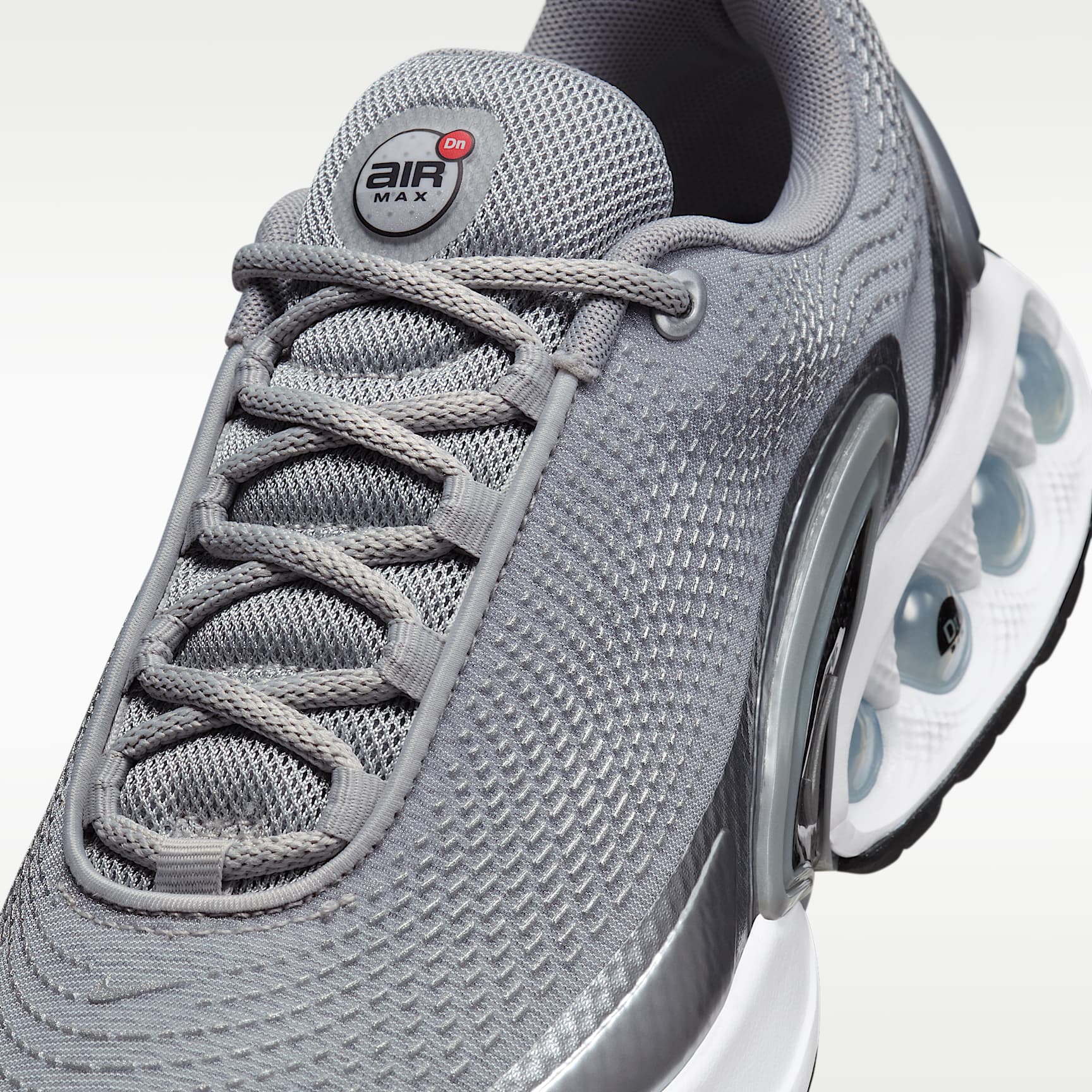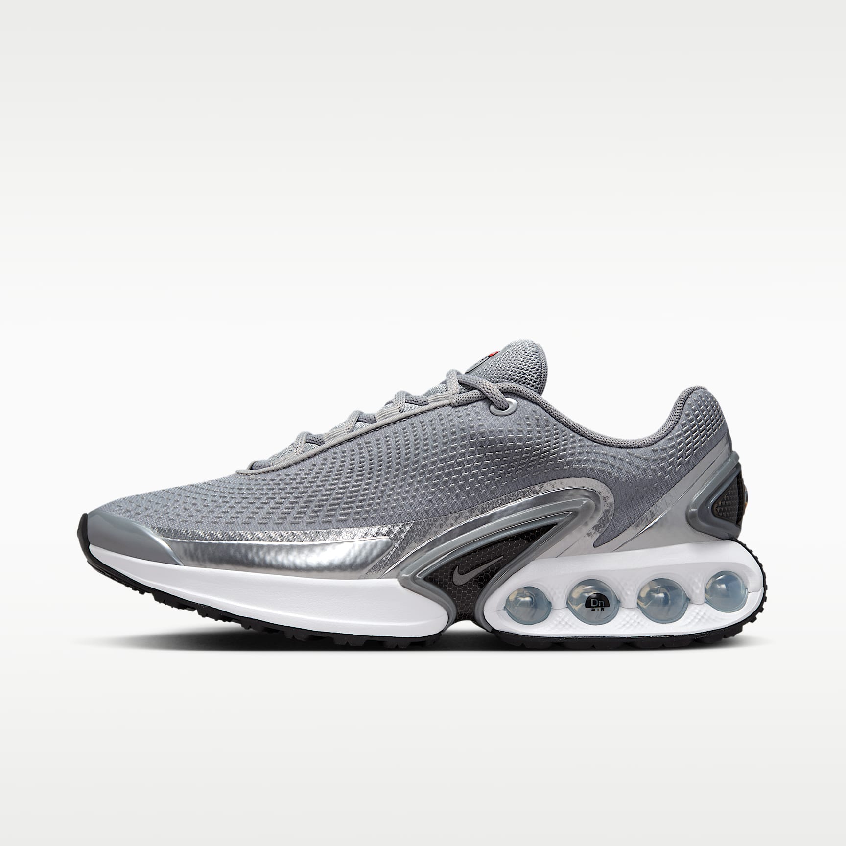 Say hello to the next generation of Air technology. The Air Max Dn features our Dynamic Air unit system of dual-pressure tubes, creating a reactive sensation with every step. This results in a futuristic design that’s comfortable enough to wear from day to night. Plus, this premium edition features a metallic monochromatic finish. Go ahead—Feel the Unreal. Maxxed Out Motion Our Dynamic Air unit system features 2 sets of dual-pressure tubes. With the firmest amount of pressure in the heel and the softest amount of pressure toward your midfoot, the air levels shift within each set for a smooth transition as you step. Maxxed Out Comfort Multilayered mesh on the upper feels lightweight and breathable, with a haptic print for a textured look. Plush foam surrounds the cushioning system for an enhanced feel that's uniquely soft and supportive. Maxxed Out Energy Providing comfort from top to bottom, this tactile design boasts performance-level bounce to energize your every move. After all, who said going to a concert isn’t a sport? Product Details * Metallic accents * Foam midsole * Rubber outsole Nike Air Max Origins Revolutionary Air technology first made its way into Nike footwear in 1978. In 1987, the Air Max 1 debuted with visible Air technology in its heel, allowing fans more than just the feel of Air cushioning—suddenly they could see it. Since then, next-generation Air Max shoes have become a hit with athletes and collectors by offering striking color combinations and reliable, lightweight cushioning.
