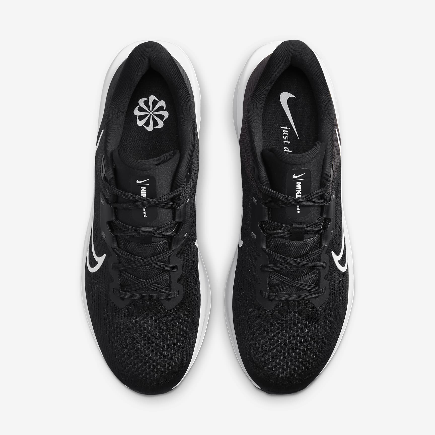 A high foam stack and secure fit for your everyday miles. The Nike Quest 6 is for runners of all levels. But make no mistake, it's anything but entry-level. A supercomfortable and supportive midfoot fit band helps keep you stable for your miles. Plus, a supersoft midsole foam helps cushion each step. Secure Fit Midfoot fit band helps keep your foot more secure the tighter your laces are. Softer, More Responsive Increased midsole height means a softer and more responsive ride compared to the Quest 5. Grippy Traction Rubber outsole has the traction to help keep your feet gripped to the pavement. Product Details * Weight: Approx. 295g/10.4oz (Men's US 10) * Heel-to-toe drop: 10mm