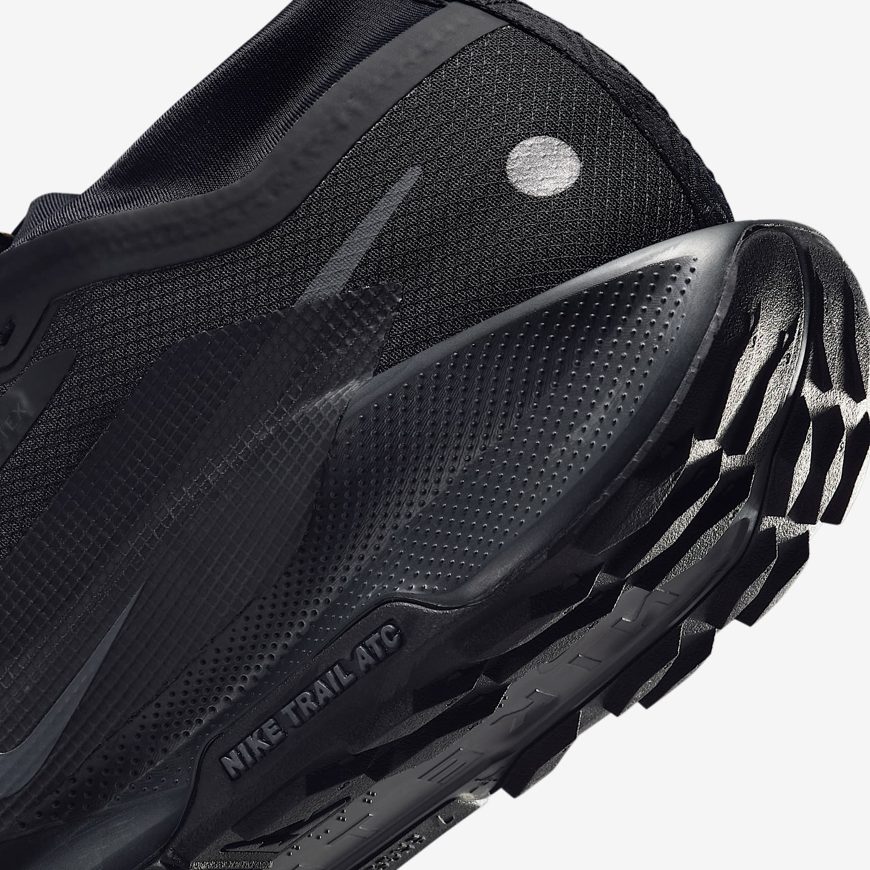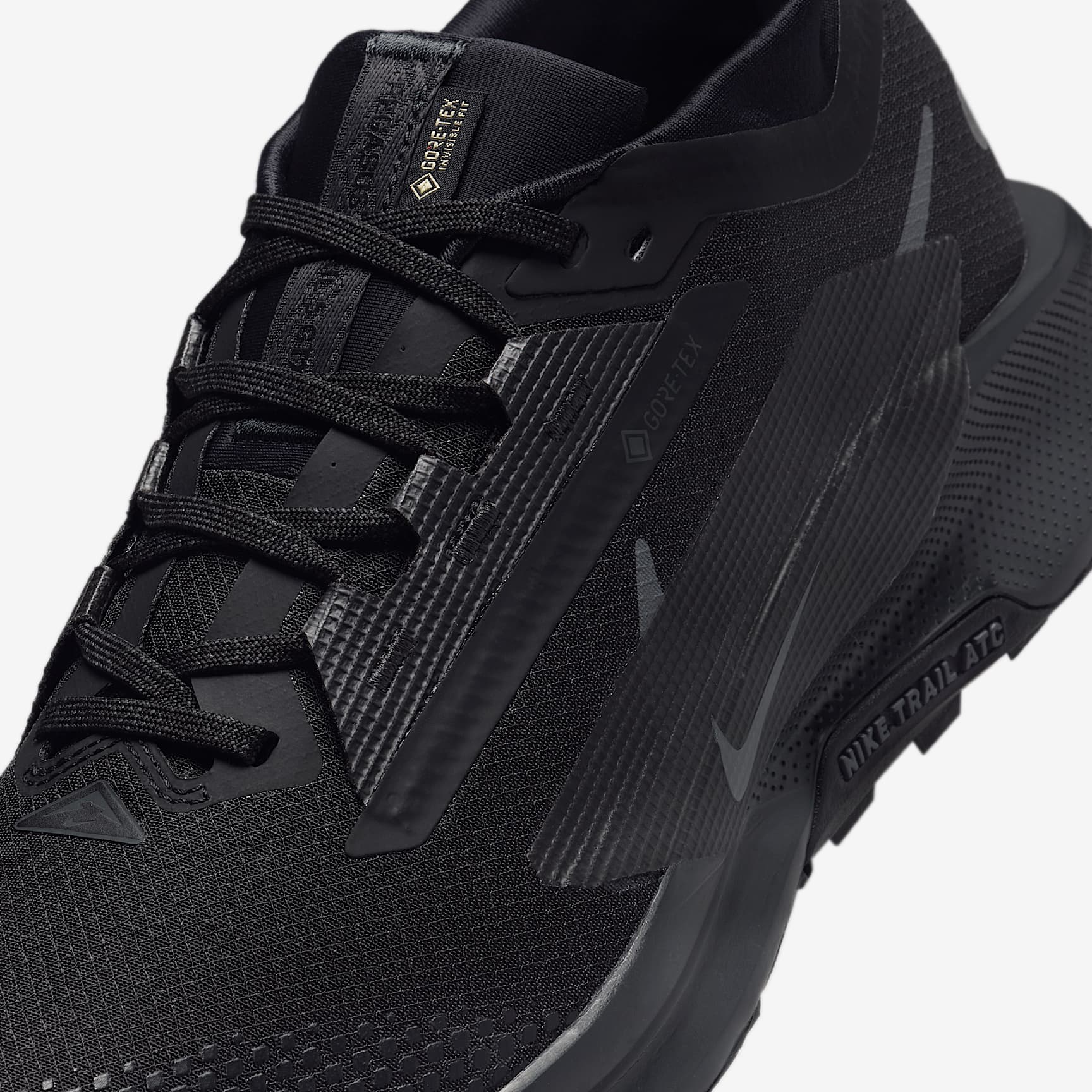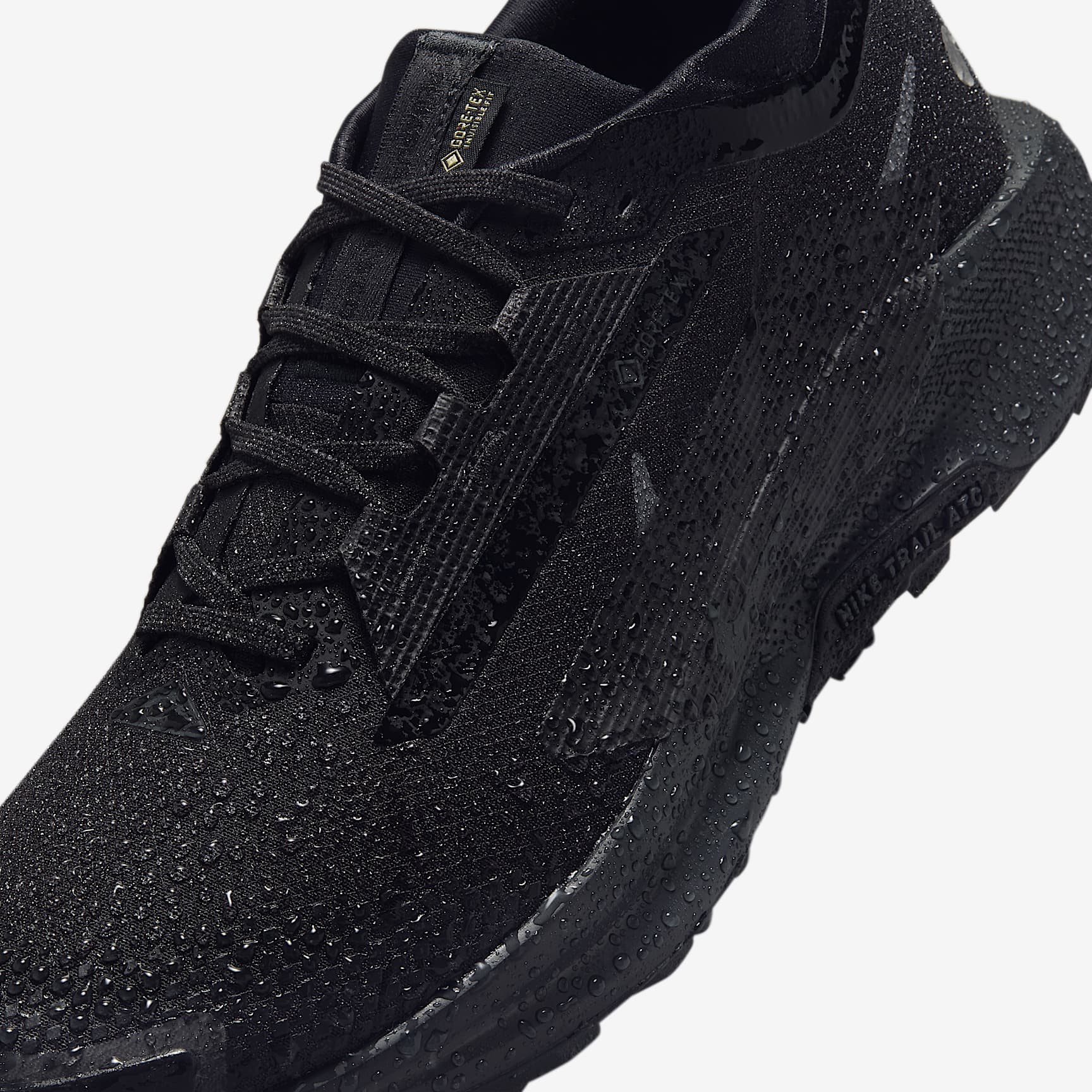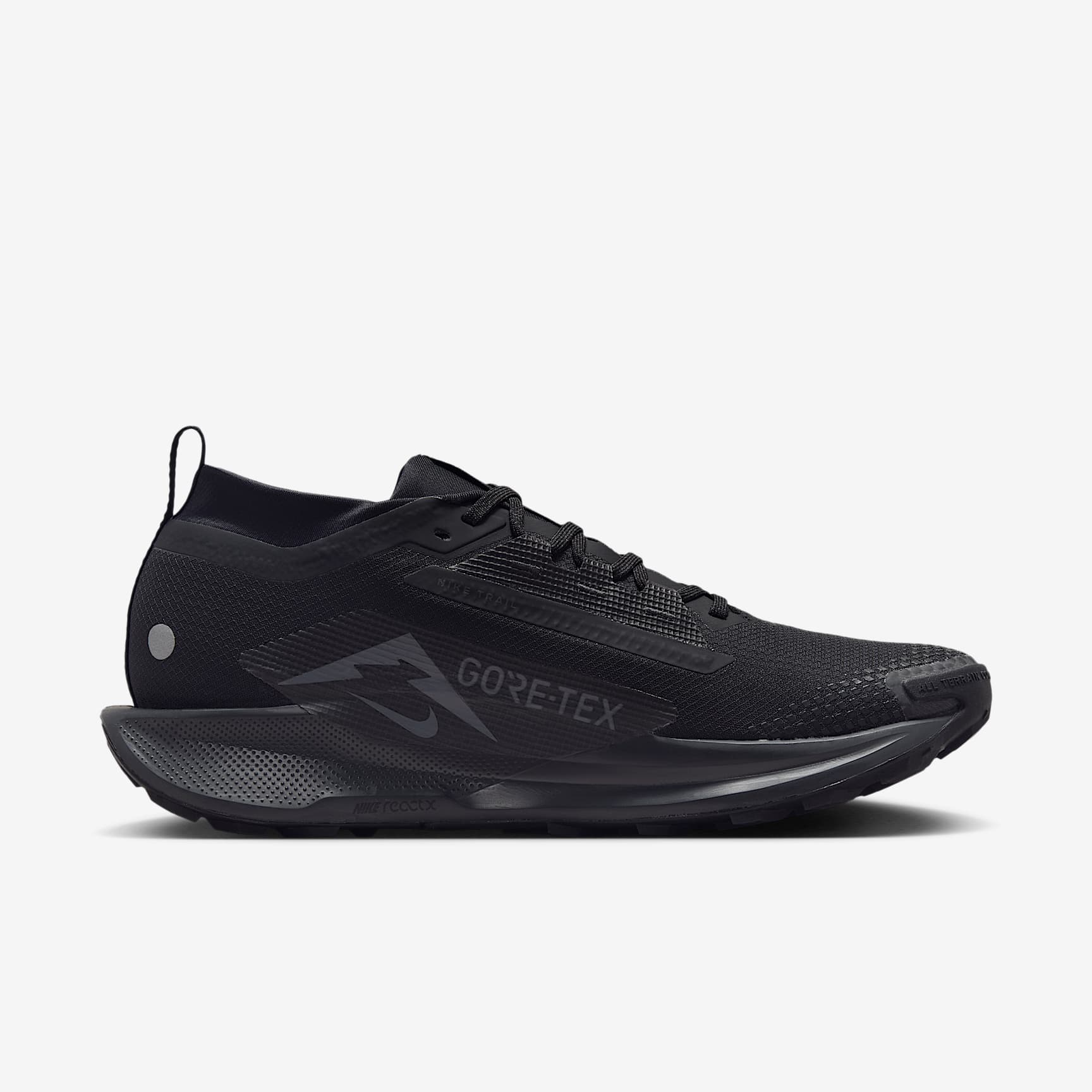 GORE-TEX tech and a grippy outsole provide wet-weather protection. The Pegasus Trail 5 provides wet-weather protection for trail running. A waterproof GORE-TEX upper, an all-terrain outsole and reflective details help you comfortably take on the elements. With a ReactX foam midsole, it gives you responsive cushioning for an energized ride. GORE-TEX Upper A waterproof GORE-TEX upper and 3-D print toe cap help keep water out so your feet stay dry. Responsive Ride Springy ReactX foam midsole gives you lightweight energy return. It's 13% more responsive than previous React technology. ATC Outsole Nike Trail All Terrain Compound (ATC) rubber outsole provides enhanced grip on steep inclines and in wet weather while giving you a smooth ride on the road. What's New? * ReactX foam midsole * Nike Trail ATC outsole Product Details * Weight: Approx. 300g/10.6oz (Men's US 10) * Heel-to-toe drop: 9.5mm * Reflective details at sides of heel * Not intended for use as Personal Protective Equipment (PPE)