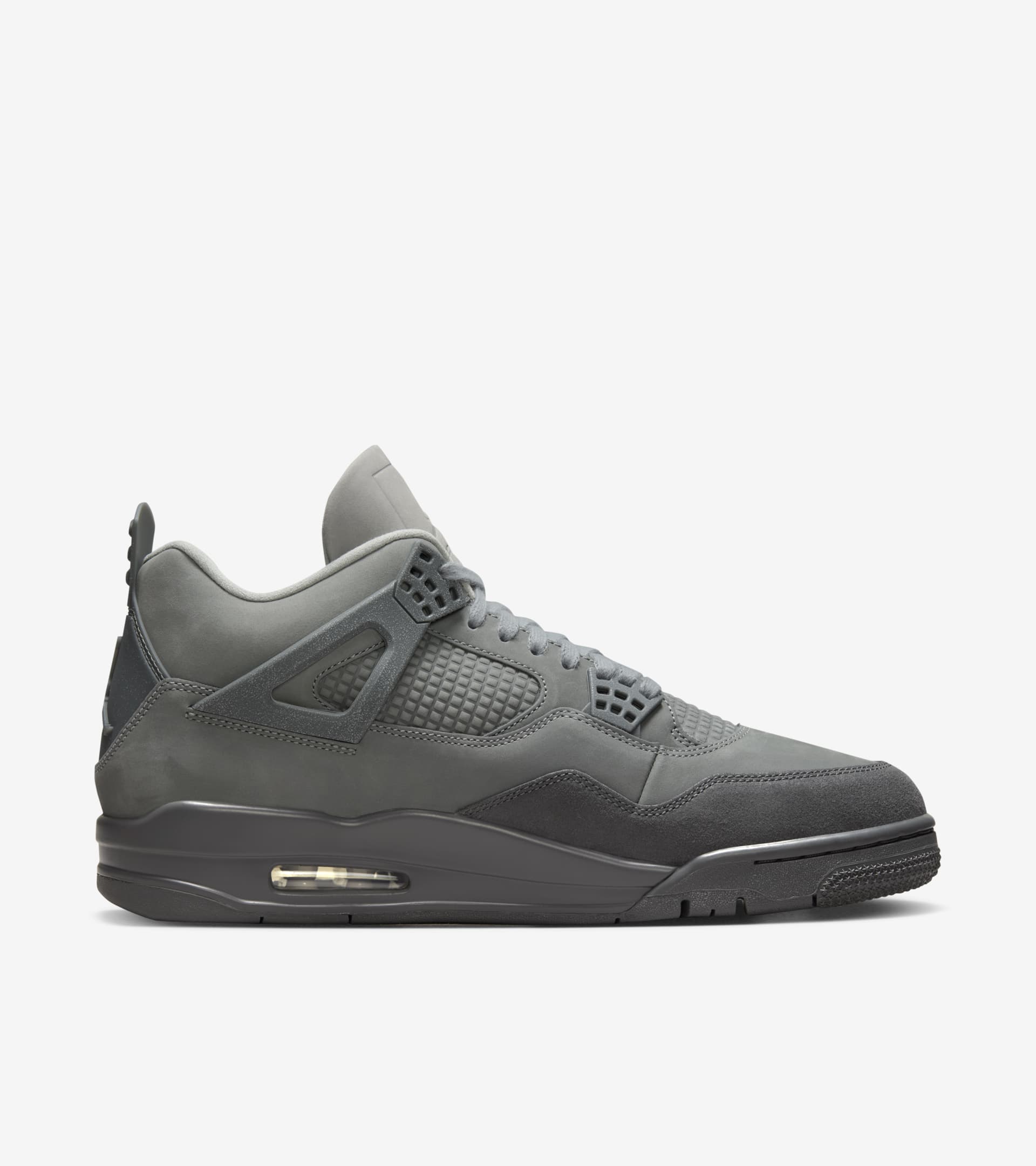 This 'Wet Cement' edition of the AJ4 draws inspiration from the cobblestone streets of Paris, evoking their rustic yet sophisticated aesthetic. A mix of nubuck leather and suede gives these grey hues some texture and dimension, making this monochromatic shoe fit for any "rue" or avenue. SKU: FQ7928-001