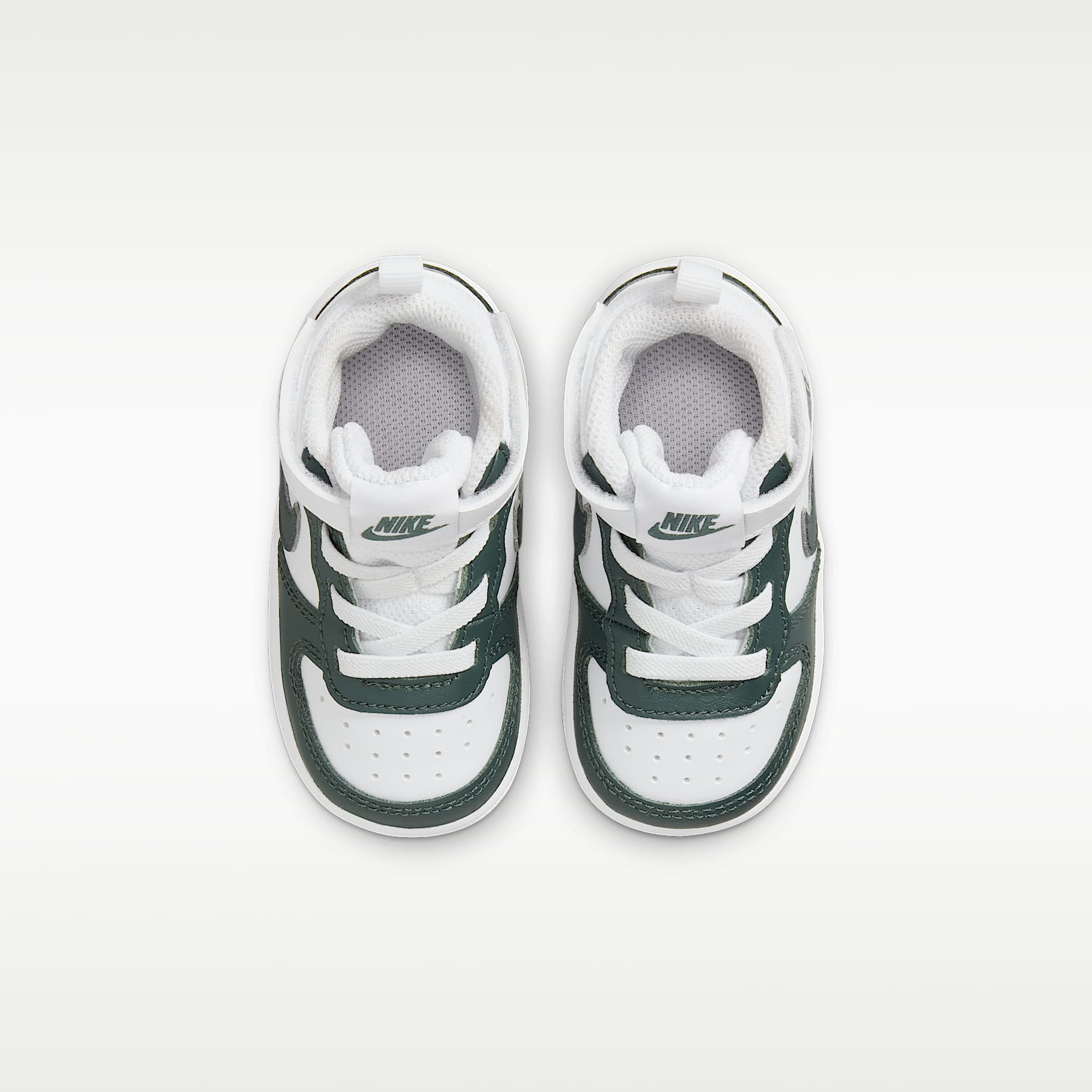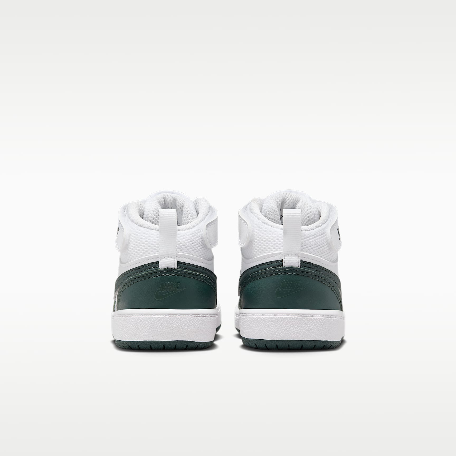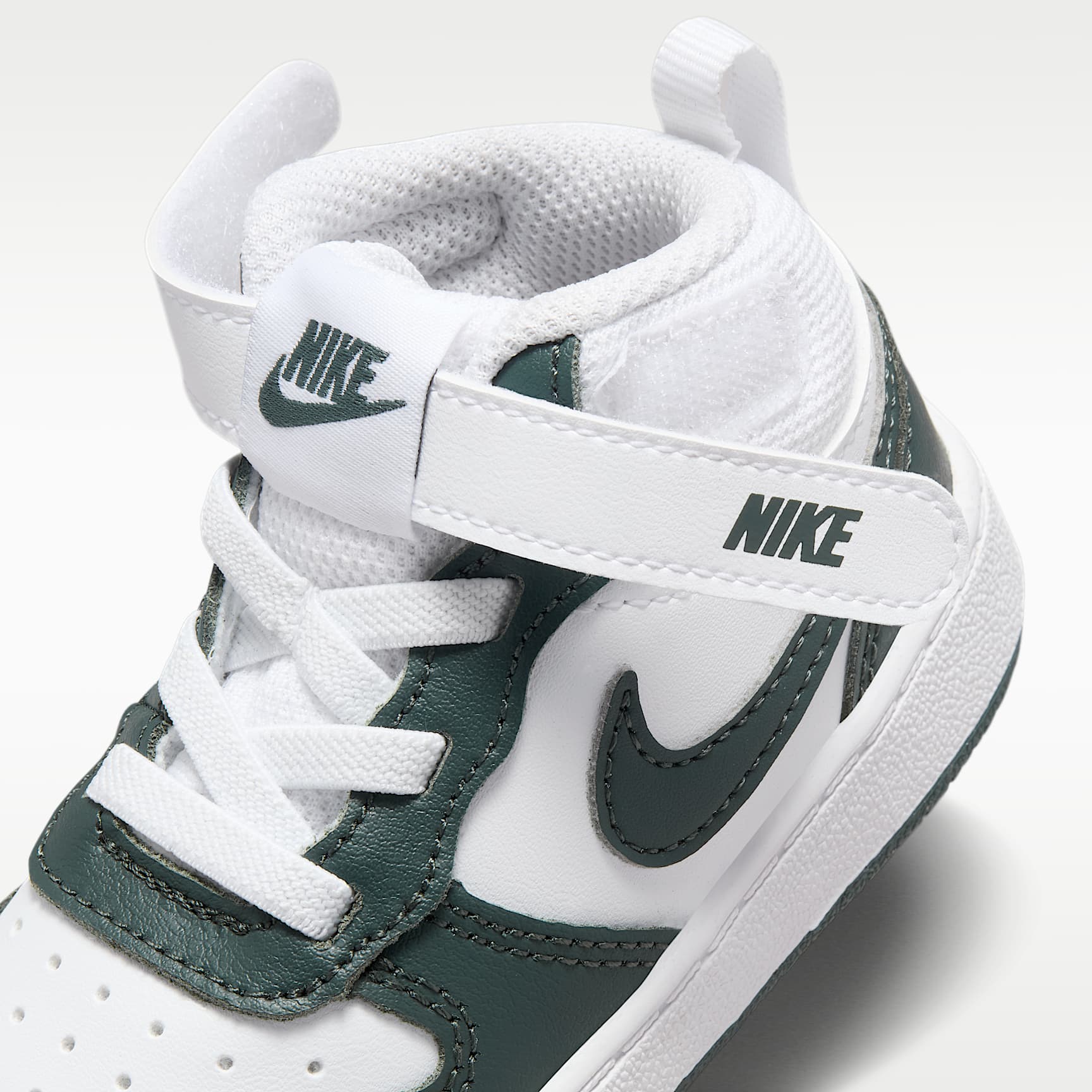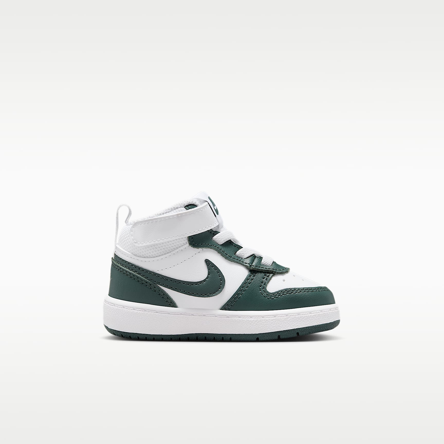 ALL-STAR COMFORT. Your little one will feel like an all-star off the court with the Nike Court Borough Mid 2. The classic mid-top design features durable leather for a premium look and feel. A hook-and-loop strap makes it easy to take the shoe on and off. Benefits * Leather is durable and easy to clean. * Elastic laces and a hook-and-loop strap make it easy to take the shoe on and off. * Padding around the tongue and ankle provide extra comfort. * Grooves in the sole make it flexible. Product Details * Cupsole construction for a classic look and feel