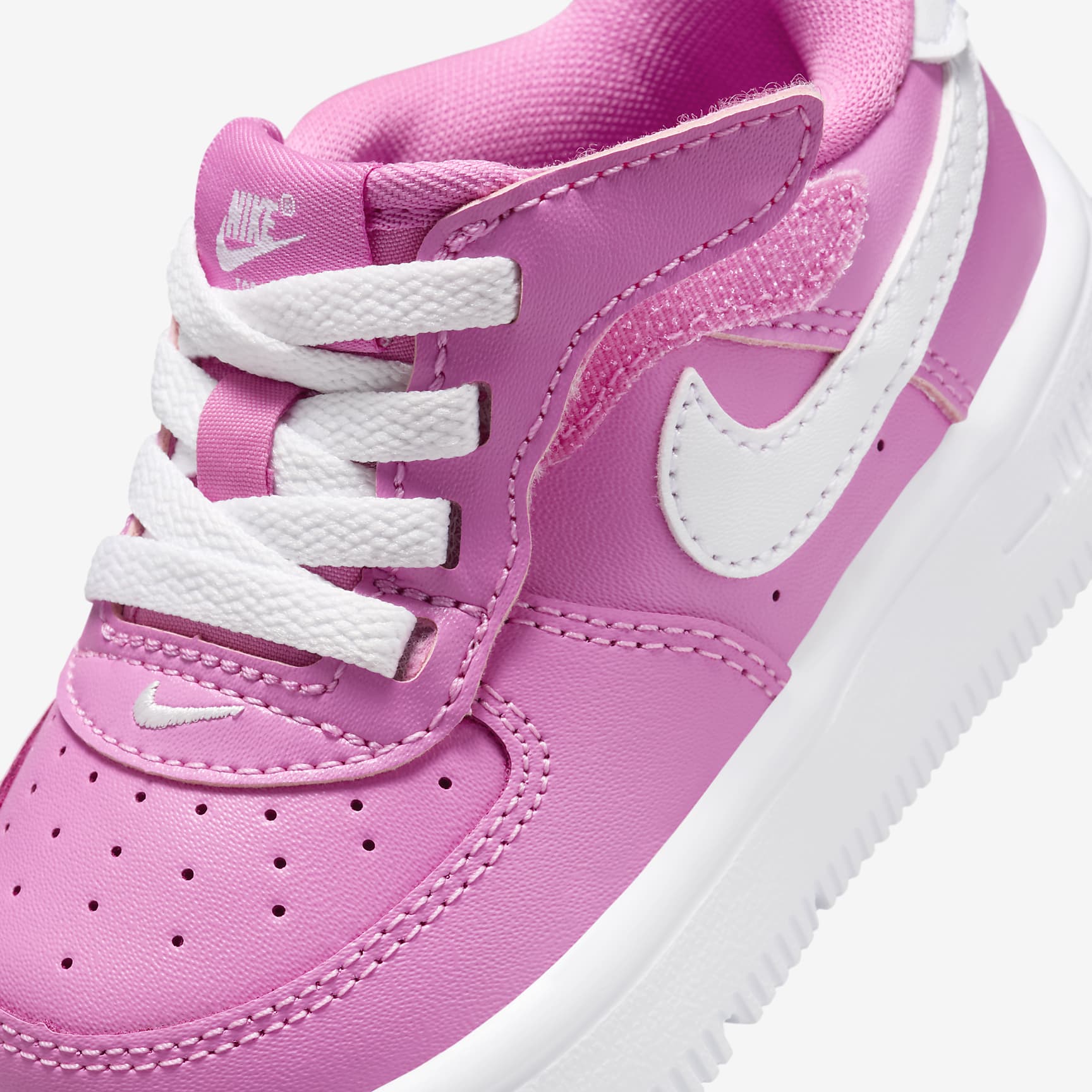 The look of laces without the struggle of having to tie them? Now, that's easy. The laces on these sneakers are just for show—the lace area opens up so squirmy feet can slip in easily. The quick-to-secure strap helps you lock in and adjust the fit. No tying needed! But these shoes aren't just easy to put on. We designed them around kids' feet for overall comfort too. Benefits * FlyEase is now Nike EasyOn. Our helpful Nike EasyOn features empower kids to do it themselves so they can focus on what matters most: play. * Hook-and-loop strap lets you open the lace area like a book to help make it easy to slip these on squirming feet. * Stitched-down laces let kids enjoy the traditional look of the AF1. * More foam means more comfort! Soft foam underfoot helps cushion every step. * Flex grooves in the outsole help each step feel natural. Product Details * Stitched-down classic laces * Perforations on toe