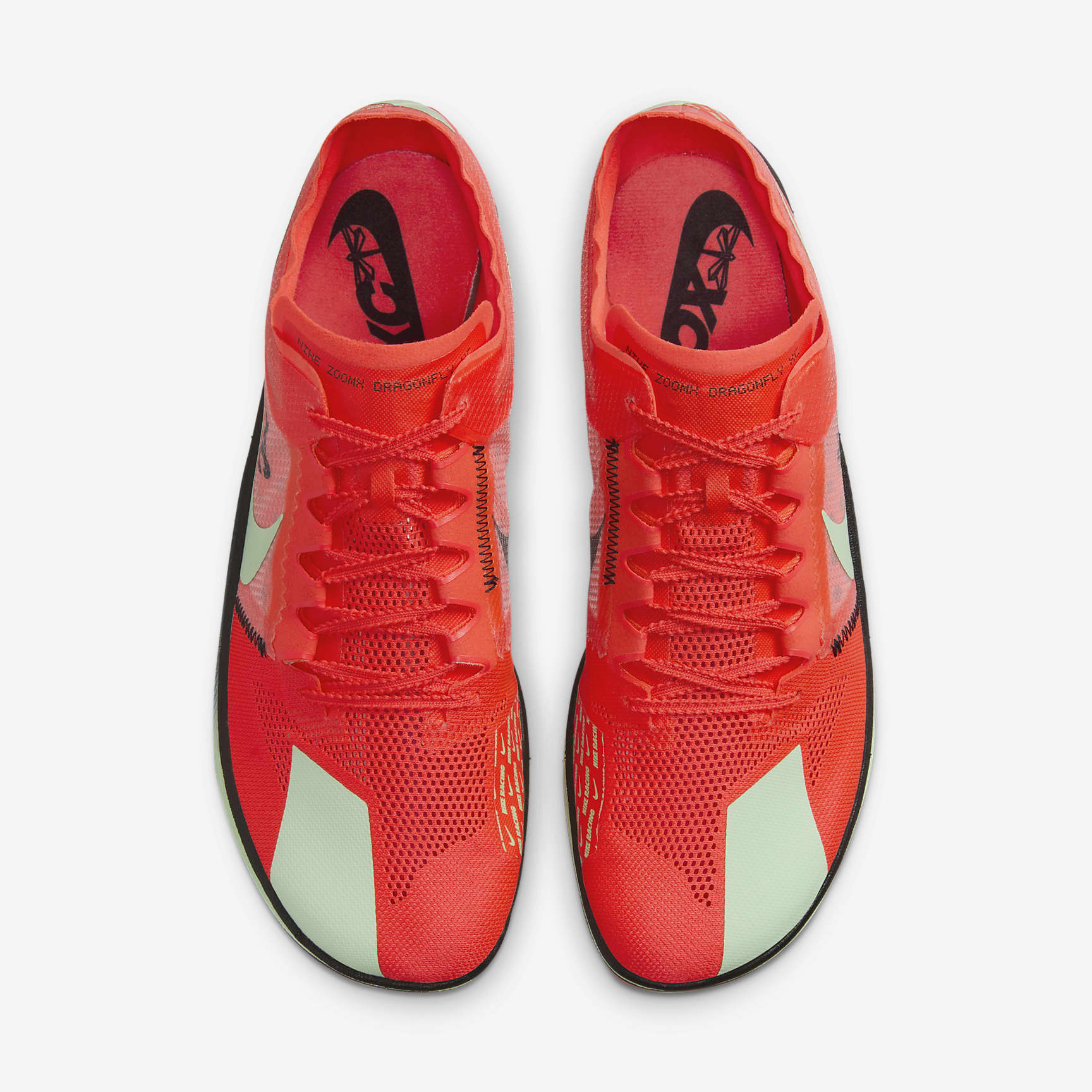ZoomX foam and full-length plate optimise energy return. The Dragonfly is for the cross-country barrier-breakers, the flurry-finishers who refuse to give in to the elements. It's our fastest distance spike on the track built to go off road. ZoomX foam adds a jolt of energy return while a wider base helps give you peace of mind in inclement conditions. Speed up the Tempo The combination of full-length ZoomX foam and a full-length plate optimises resiliency and energy return while staying lightweight. Stay dry The partial Vapor Weave upper helps keep the shoe light even when wet. The soft, engineered mesh toe box helps keep your toes and forefoot comfortably contained. Stay secure An added arch band helps give you a secure fit in muddy conditions and a supportive feel on uneven terrain. Wider Base Extra width on the base of the shoe provides extra stability and confidence on all surfaces.