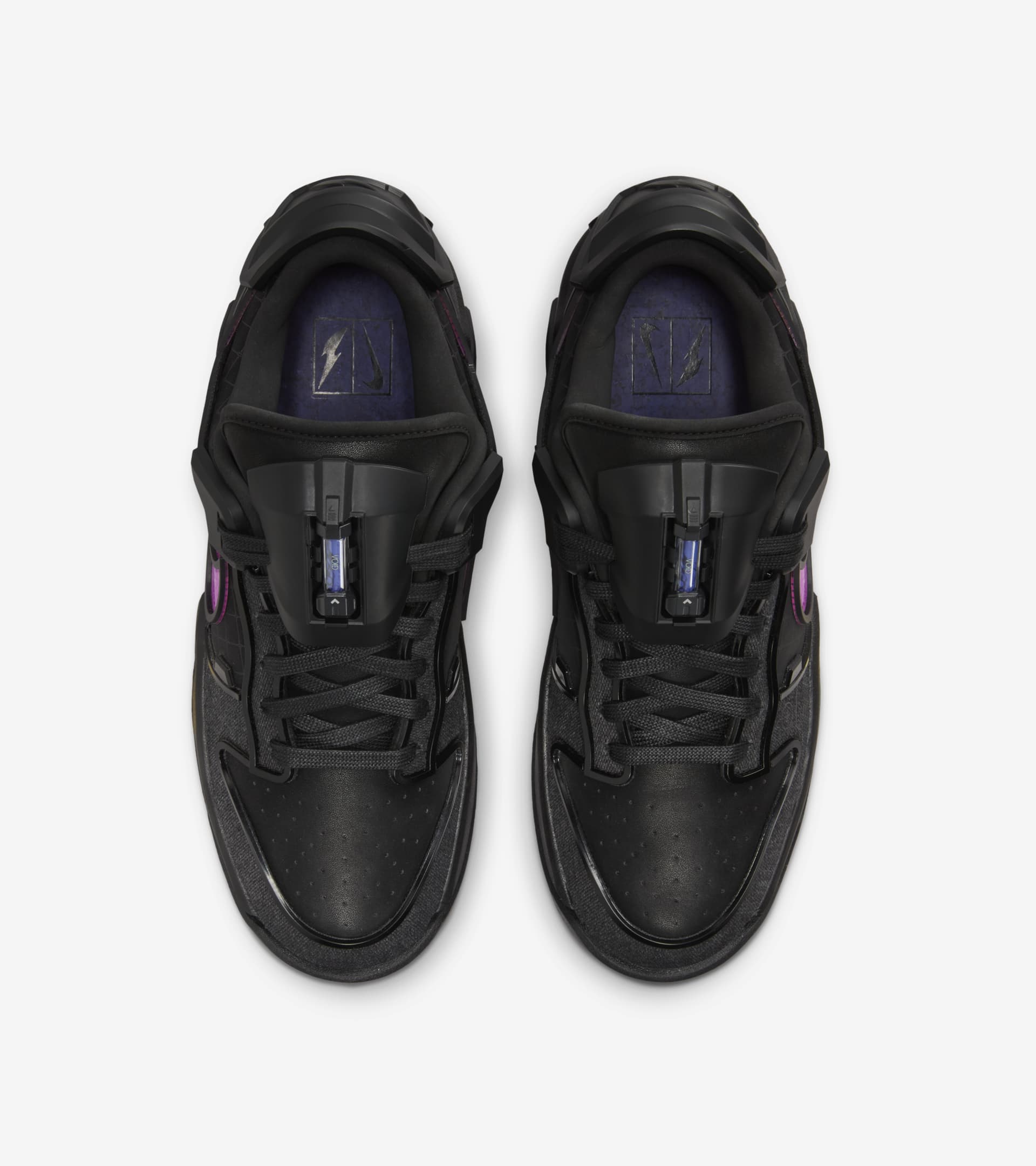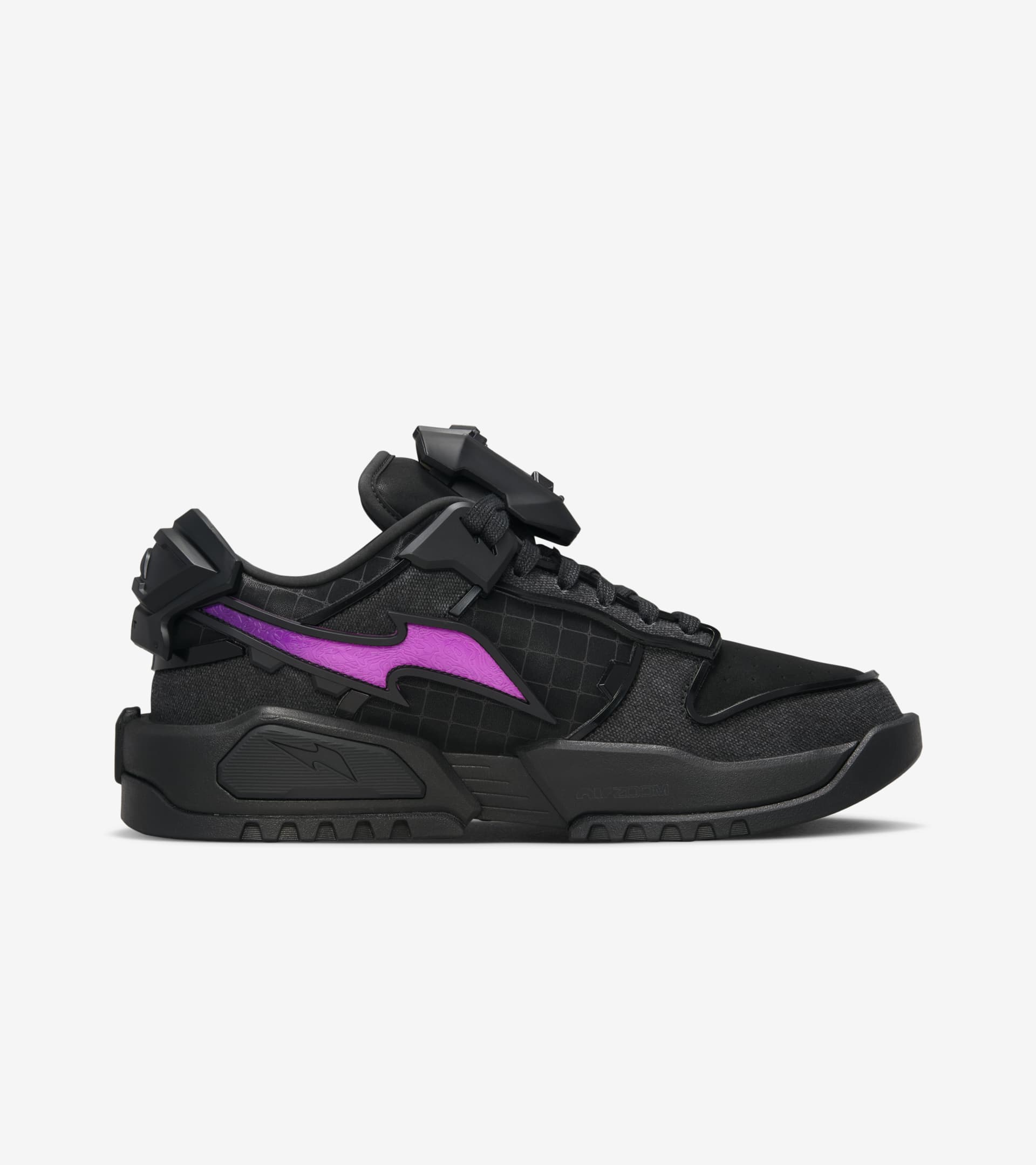 Gamers, creators and collectors—this one is for you. Widely recognized for its gaming roots and world-merging visuals, RTFKT reimagines the iconic Dunk for the digital generation. The Dunk Genesis was first introduced as a virtual object with dynamic digital skins, and it now enters the real world as a state of the art physical. Its cohesive design incorporates canvas overlays and nubuck-like synthetic with color gradients on the Swoosh logos. Laser-etched details pair with silicone-printed "space" laces for a futuristic finish. Plus, the upper components use a molded bio-based PU trim that creates exaggerated angles, depth and dimension. Hits of hypnotic purple hues pop against the Black backdrop, while the detachable tongue clip and heel shield let you customize your look. The RTFKT-branded foam midsole comes equipped with Air Zoom cushioning for responsive comfort. This Nike x RTFKT edition isn't just wearable—it's a gateway to digital collectibles, with each pair harboring an NFC tag that you can scan to claim a virtual counterpart. Merging physical and digital worlds lets us peer into the future, where digital sneakers serve as canvases for modularity and limitless creativity. By having access to the virtual counterpart, you'll also be able to access the game-ready 3-D files. SKU: HM4465-001