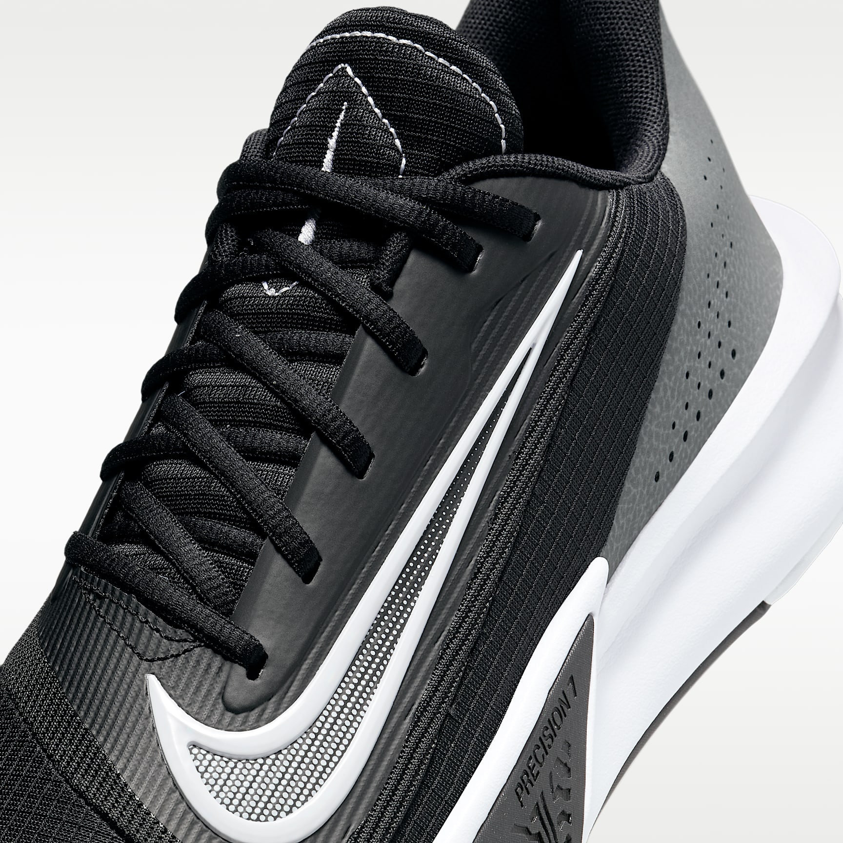 Score at will at the rim or from deep in the Nike Precision 7. Crafted with a combination of ground control, comfort and on-court traction, it's perfect for instant impact plays when your name is called for the next casual game. Check in and make the plays that swing the outcome in your favour. All-game comfort The plush foam on the collar and tongue enhances the feeling of comfort around the ankle and over the top of the foot—areas where you want no distractions. It helps strike a sound balance between ground control when changing sudden direction and comfort when racing from one end of the floor to the other. The breathable mesh upper helps keep you contained. Cushion for the push The sculpted foam midsole feels soft and supportive, providing cushioning for the game's non-stop movement. Stick and move Herringbone traction provides multi-directional grip, great for players who rely on their quickness and cutting ability. The rubber wraps up the sides in the forefoot to give you traction on your edges. More benefits * Low collar provides mobility at the ankle. * Visible cut-out in the foam helps reduce weight. Product details * No-sew overlays * Moulded Swoosh logo