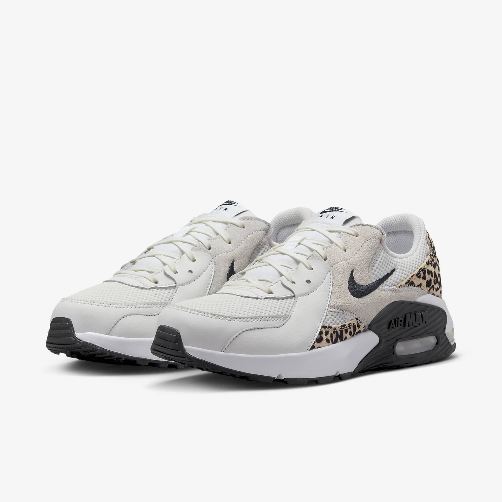 Get into the groove with the Nike Air Max Excee. Inspired by the Nike Air Max 90, these kicks put a modern twist on a legendary icon through leopard-print details, elongated design lines and distorted proportions. Benefits * Max Air units add lasting cushioning and can be seen through 3 windows for a truly modern look. * Elongated design lines honor the Air Max 90 and modernize these kicks in a fresh way. * Stitched overlays add heritage styling and durability. * Padded, low-cut collar looks sleek and feels comfortable. Product Details * Foam midsole * Rubber outsole Nike Air Max Origins Revolutionary Air technology first made its way into Nike footwear in 1978. In 1987, the Air Max 1 debuted with visible Air technology in its heel, allowing fans more than just the feel of Air cushioning—suddenly they could see it. Since then, next-generation Air Max shoes have become a hit with athletes and collectors by offering striking color combinations and reliable, lightweight cushioning.