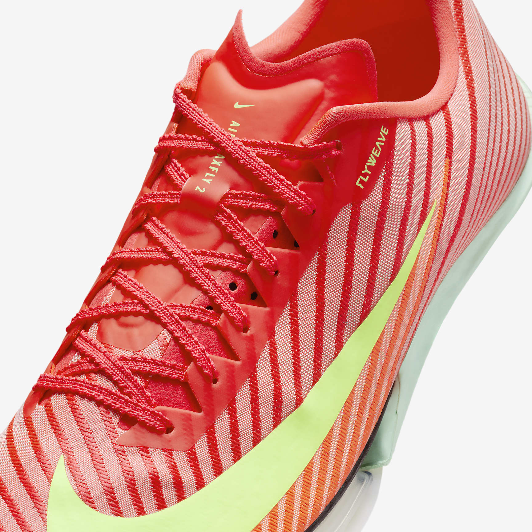 Fit for the world's fastest, the Maxfly 2 is back in the starting blocks. Designed for the 100 meters to 400 meters (hurdle events too), it combines an ultra-aggressive feel with the responsiveness of an Air Zoom unit to propel the speediest sprinters on the planet. Flyweave Construction Nike Flyweave construction on the upper provides a secure and conforming fit for various foot shapes. Carbon Fiber Flyplate The carbon fiber Flyplate's shape and stiffness help keep you on your toes and minimize deceleration. Zoom, Zoom The forefoot Air Zoom unit has two chambers to give you a propulsive feel and stability from takeoff to the tape. What's New About the Maxfly 2? Lighter, more responsive than the Maxfly, the Flyplate's shape and stiffness give you a propulsive feel. Middle spike removed from Maxfly and elevated platform on big-toe side help spikes feel more stable.