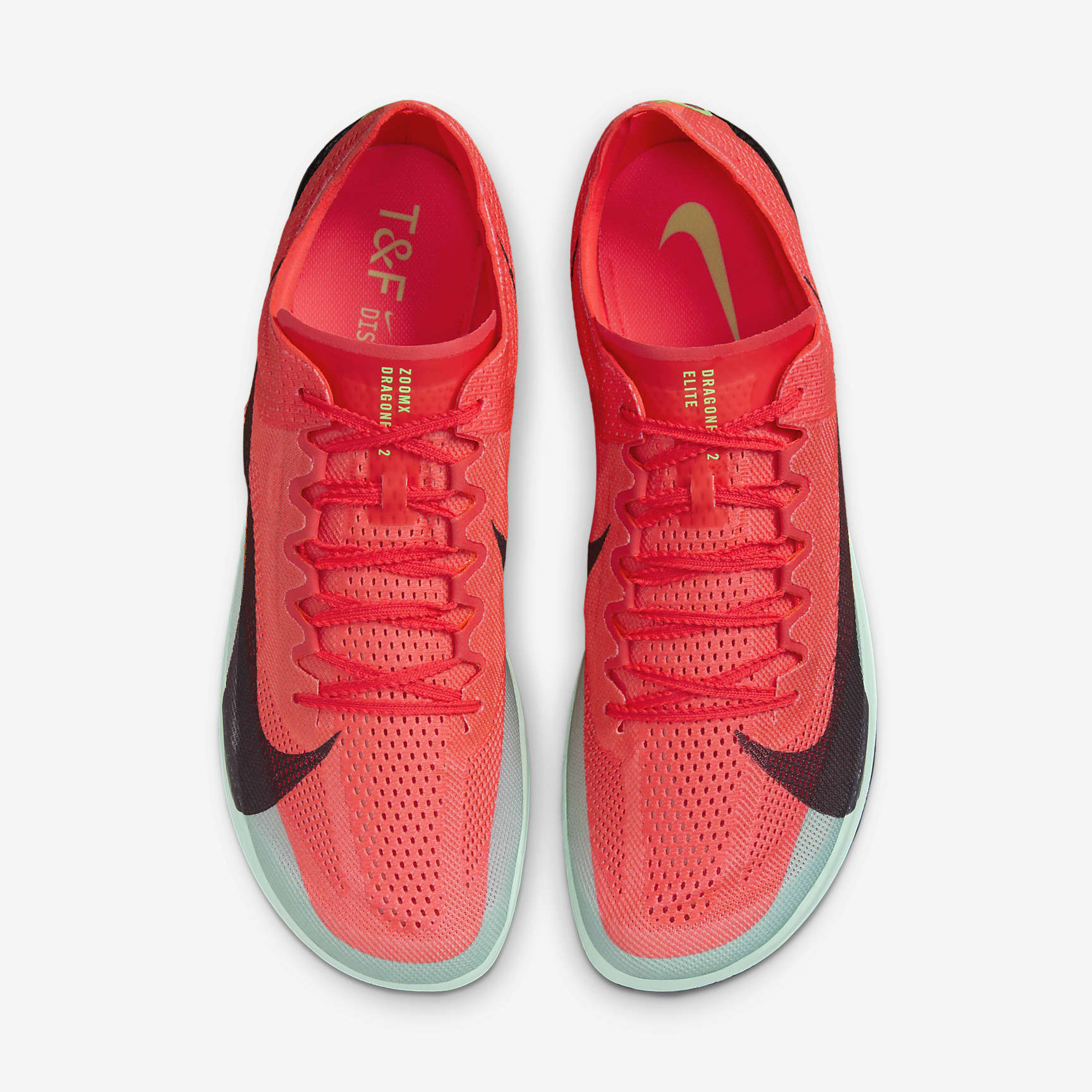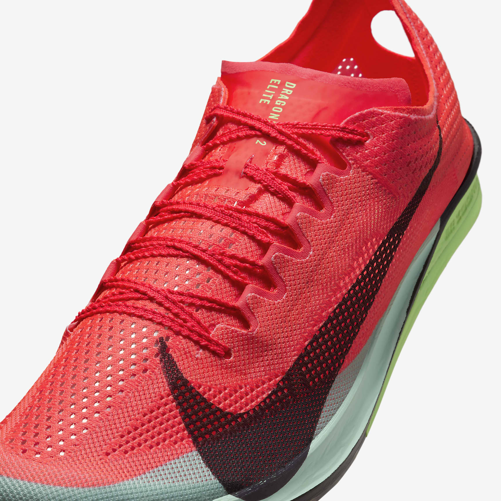 Ultralight foam and carbon plate help unlock your race-day speed. Our most dominant distance track spikes are back at the starting line, ready to break even more world records. Now loaded with an ultralight ZoomX foam and a responsive carbon plate, the Dragonfly 2 Elite can help unleash a new level of speed you’ll want to save for race day. It's donned by the fastest 5K and 10K runners in the sport, who are ready to reach new heights. Engineered Upper New yarns and engineered upper enhance breathability and comfort. The upper's conforming fit gives a disappearing sensation that is built to go the distance. Heel is reinforced to help improve stability. ZoomX Foam Full-length ZoomX foam, Nike’s lightest and most resilient foam, delivering a high level of energy return with every stride you take. Stable Connection Four permanent spikes help reduce the weight of the plate and create a wide, flat platform for a stable connection to the track. Carbon Plate Carbon unlocks plate response and helps reduce weight. The curved design gives you a propulsive feel. What's New? A slightly wider midfoot and forefoot compared to the previous iteration improve the feeling of stability on straightaways and especially around the turns.