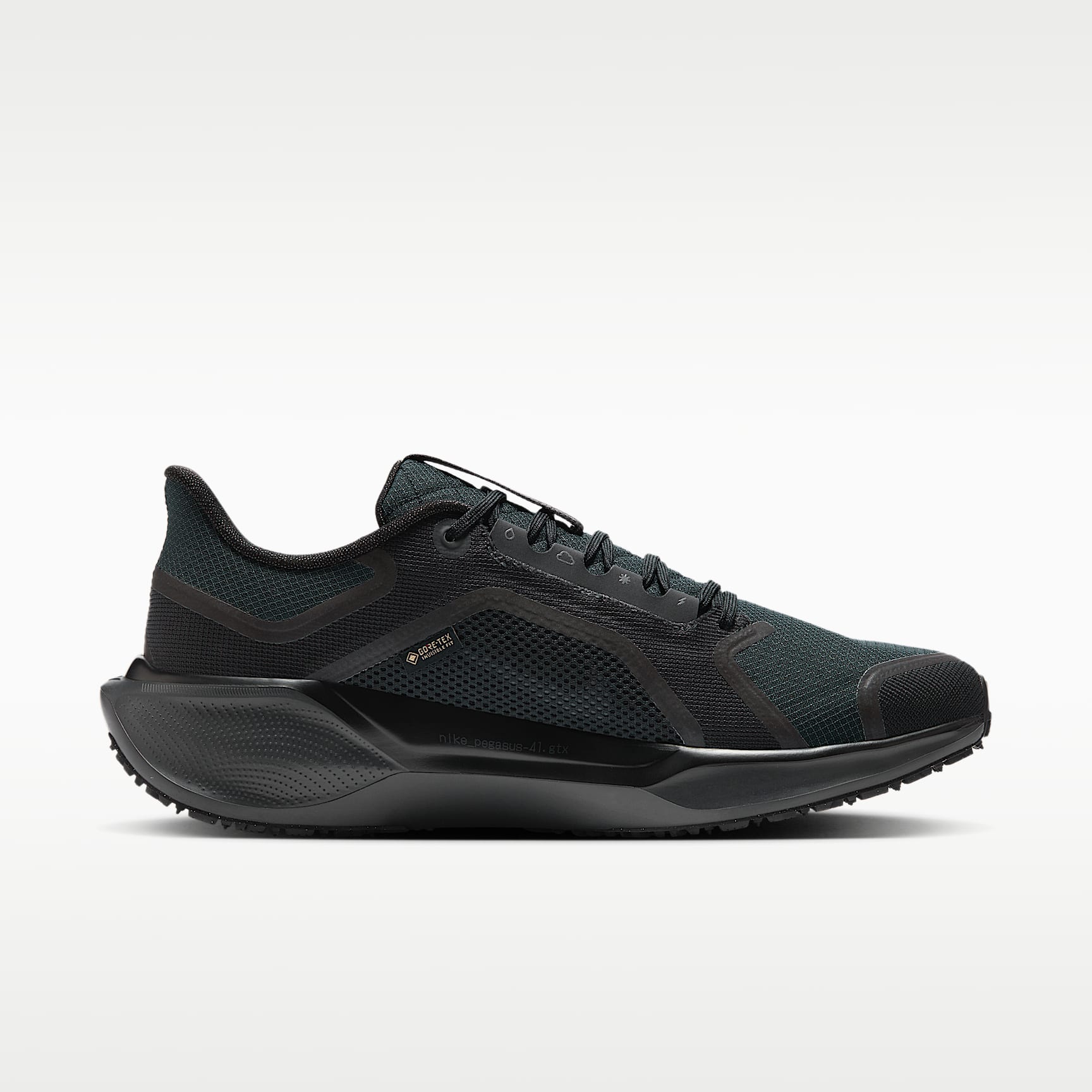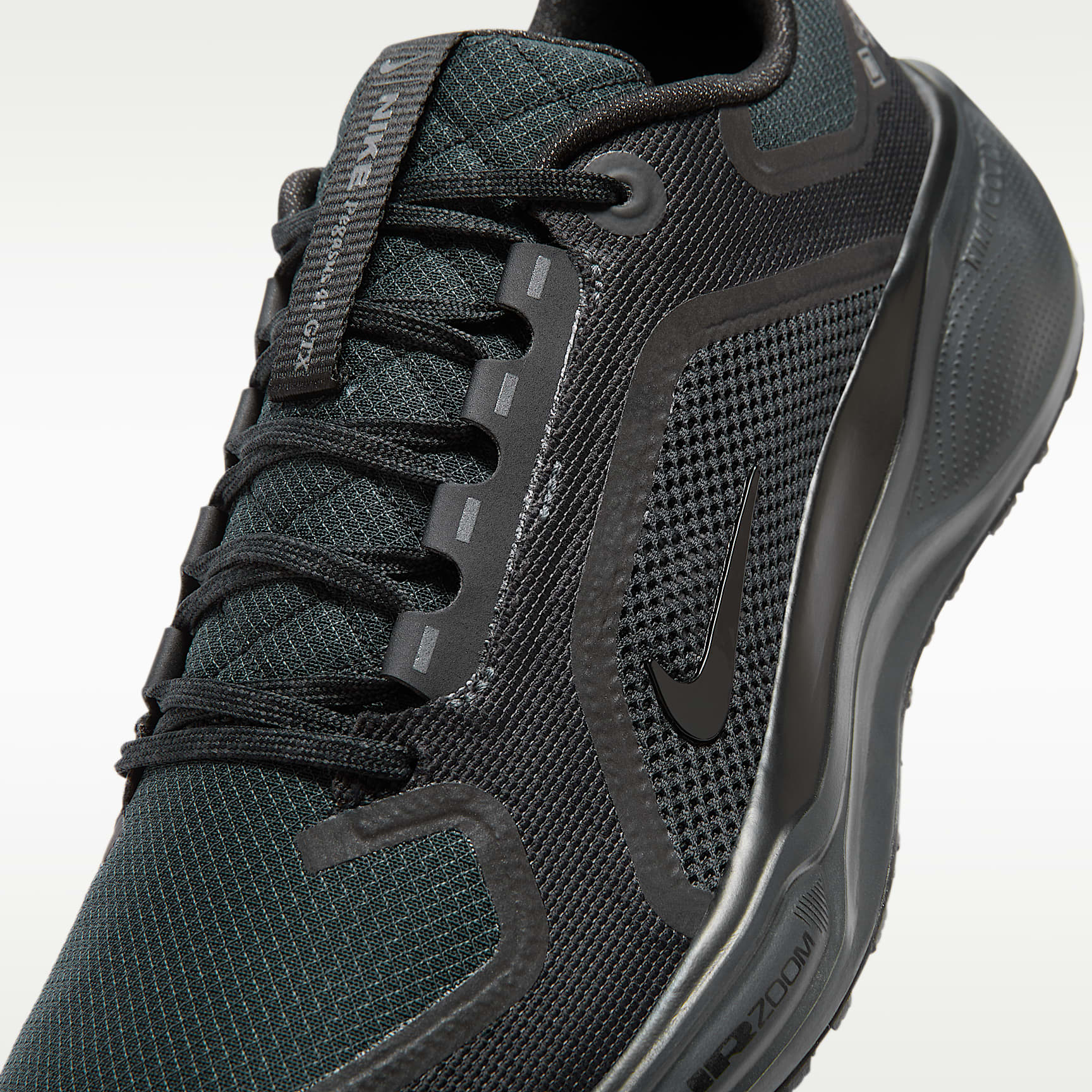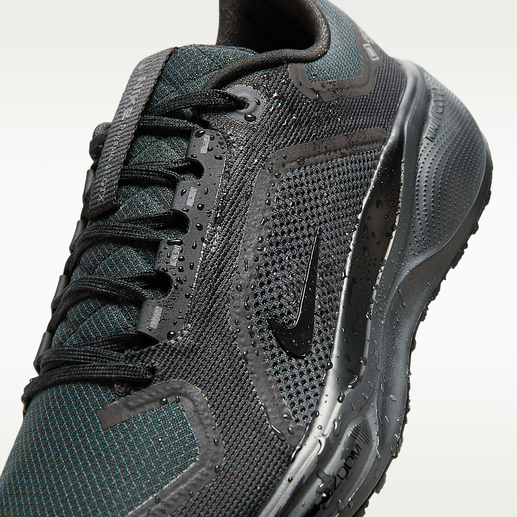 Responsive cushioning in the winterised Pegasus provides an energised ride for wet-weather road running. Experience lighter-weight energy return with dual Air Zoom units and a ReactX foam midsole. Plus, a waterproof GORE-TEX upper and reflective design details throughout help you comfortably take on the elements. GORE-TEX upper A waterproof GORE-TEX upper and technical mesh help keep water out so your feet stay dry. ReactX foam The midsole is made from responsive, supportive ReactX foam, which surrounds forefoot and heel Air Zoom units for an energised ride. Storm Tread outsole The Storm Tread outsole provides traction in wet weather. Heathered collar Heathered material around the collar helps keep your ankle warm. What's new? The ReactX foam midsole is 13% more responsive than previous React technology. Product Details * Reflective design GORE-TEX logo and Swoosh logo * Reflective design graphics and overlays * Not intended for use as Personal Protective Equipment (PPE) * Heel-to-toe drop: 10mm * MR-10 last—our best, most consistent fit (same as Pegasus 40)