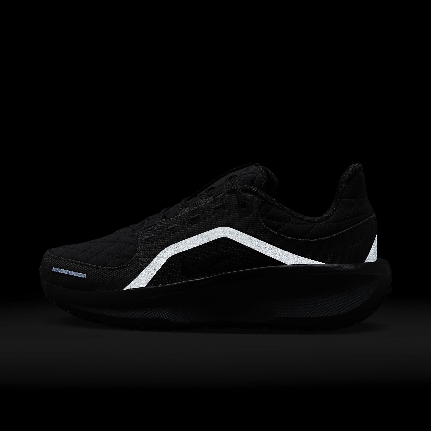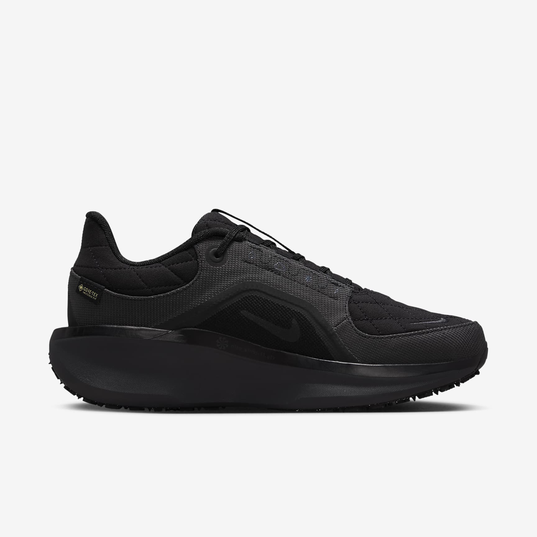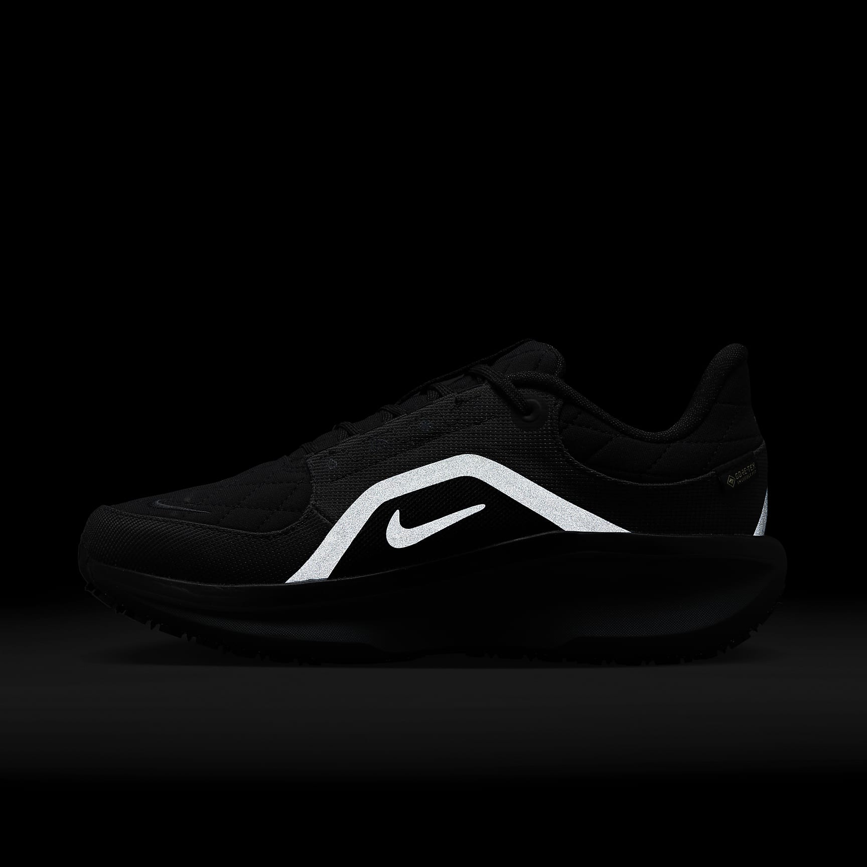 With a waterproof GORE-TEX upper and reflective design details, this winterised Winflo 11 provides a balanced ride for wet-weather runs. Experience energy return with a combination of Cushlon 3.0 foam and a full-length Nike Air unit in the midsole. Key features * A waterproof GORE-TEX upper helps keep water out so your feet stay dry. * A Cushlon 3.0 foam midsole with a full-length Nike Air unit * A rubber Waffle-inspired outsole for reliable traction * Heathered material around the collar helps keep your ankle warm. * What's new? A spacious forefoot, a wider heel and even better breathability. Product details * Reflective design logo * Weight: 262g approx. (women's size 6) * Heel-to-toe drop: 10mm * MR-10 Last—Our best, most consistent fit * Not intended for use as personal protective equipment (PPE)