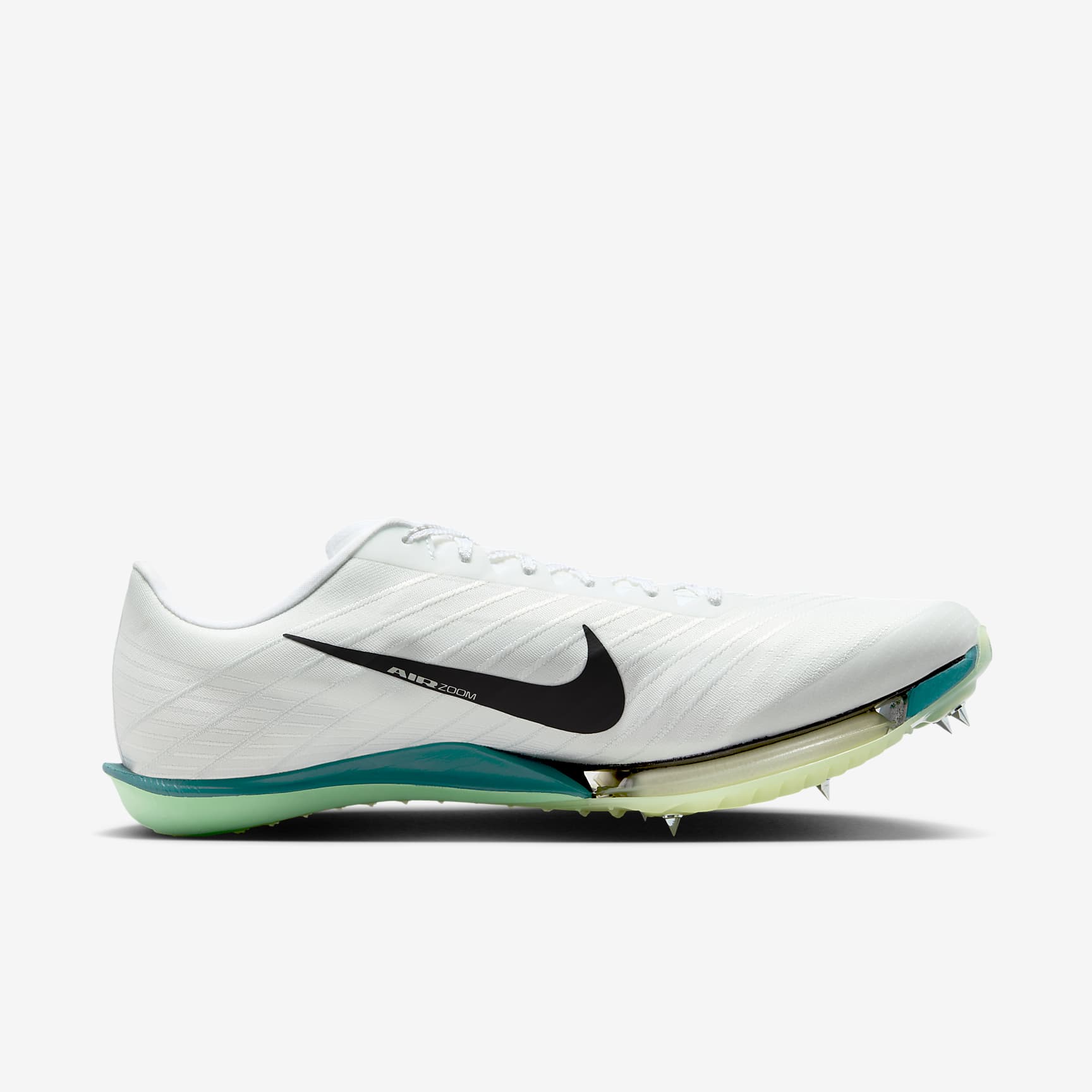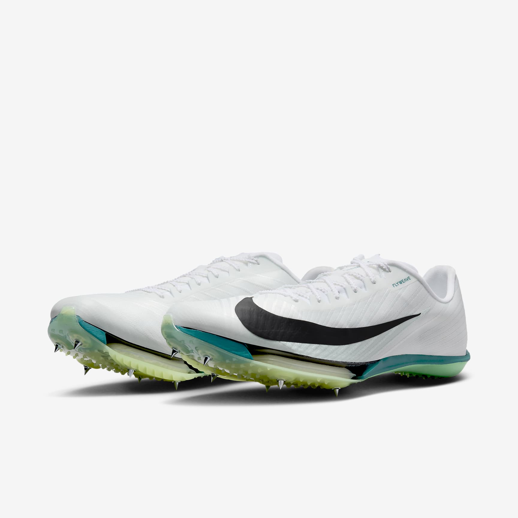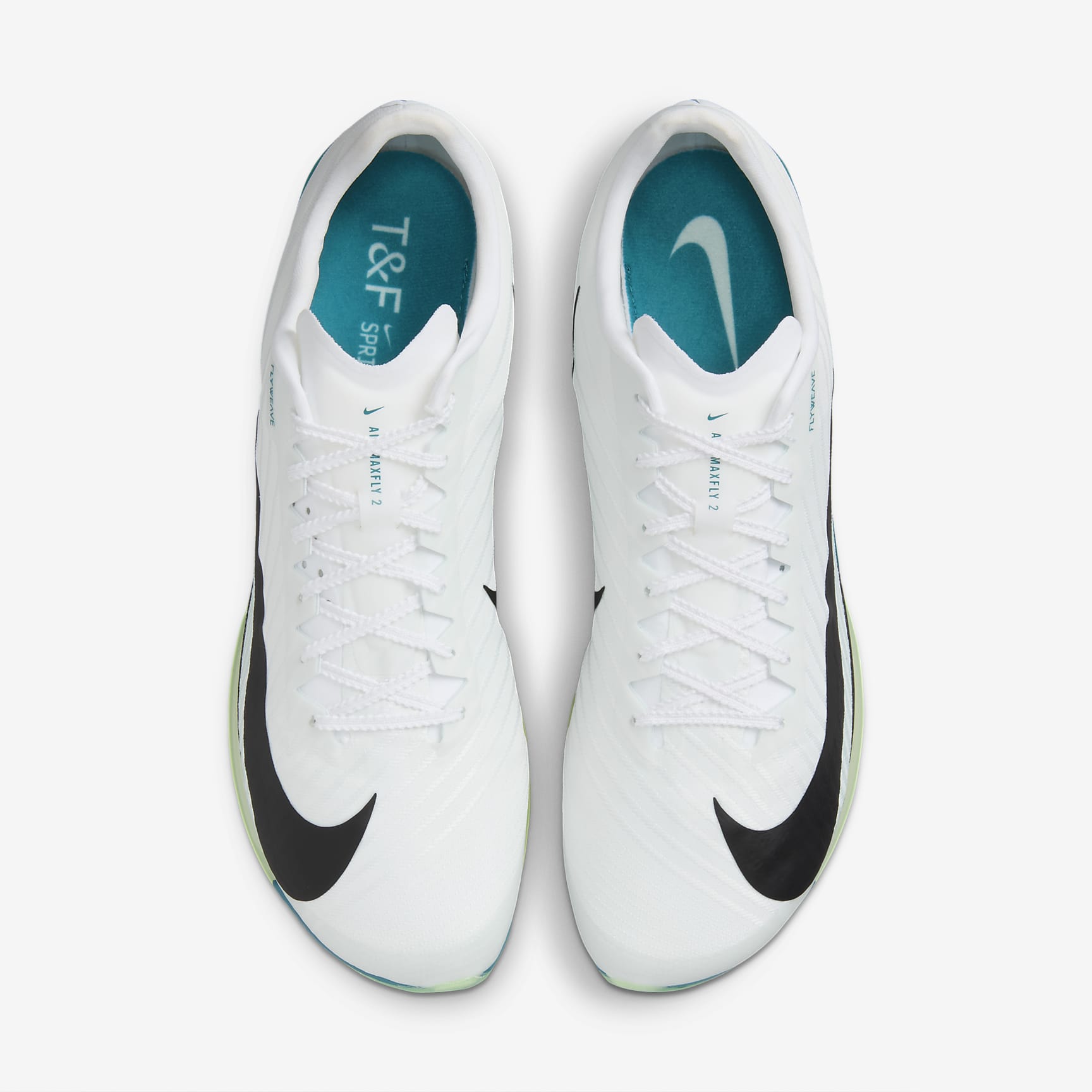 Fit for the world's fastest, the Maxfly 2 is back in the starting blocks. Designed for the 100 metres to 400 metres (hurdle events too), it combines an ultra-aggressive feel with the responsiveness of an Air Zoom unit to propel the speediest sprinters on the planet. Flyweave construction Nike Flyweave construction on the upper provides a secure and contouring fit for various foot shapes. Carbon-fibre Flyplate The carbon-fibre Flyplate's shape and stiffness help keep you on your toes and minimise deceleration. Zoom, zoom The forefoot Air Zoom unit has two chambers to give you a propulsive feel and stability from take-off to the tape. What's new about the Maxfly 2? Lighter, more responsive than the Maxfly, the Flyplate's shape and stiffness give you a propulsive feel. The middle spike removed from the Maxfly and the elevated platform on the big-toe side help the spikes feel more stable.