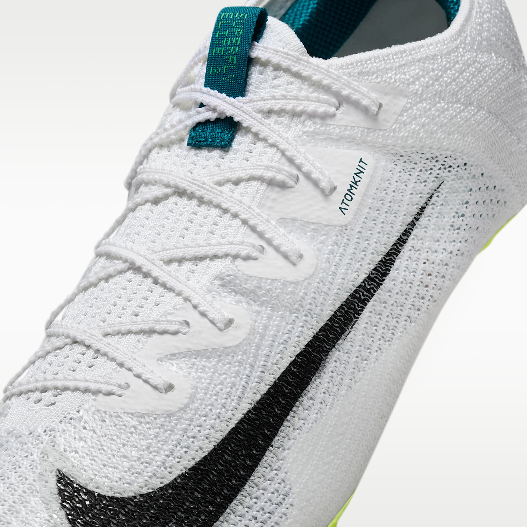The lightweight AtomKnit upper and stiff plate help fuel your speed. Made for runs from 100 metres to 400 metres, the Superfly Elite 2 is secure, stable and feathery on foot. Its removable pins on the outsole help keep your feet gripped to the track to help fuel your breakaway speed. Fly away AtomKnit, an updated version of Flyknit, has a lightweight, contoured fit and enhanced breathability. Tough Grip We designed the plate using data from hundreds of runners. The result is an outsole with increased stiffness and reduced weight. Peaks throughout the plate give your foot grip as you run around turns. More benefits * Pad-print Swoosh logo helps minimise weight. * Notched laces provide a secure fit and help reduce the chances of the laces coming untied. Product details * Ideal for 100m–400m sprinters * World Athletics approved * Eight removable stainless steel pins