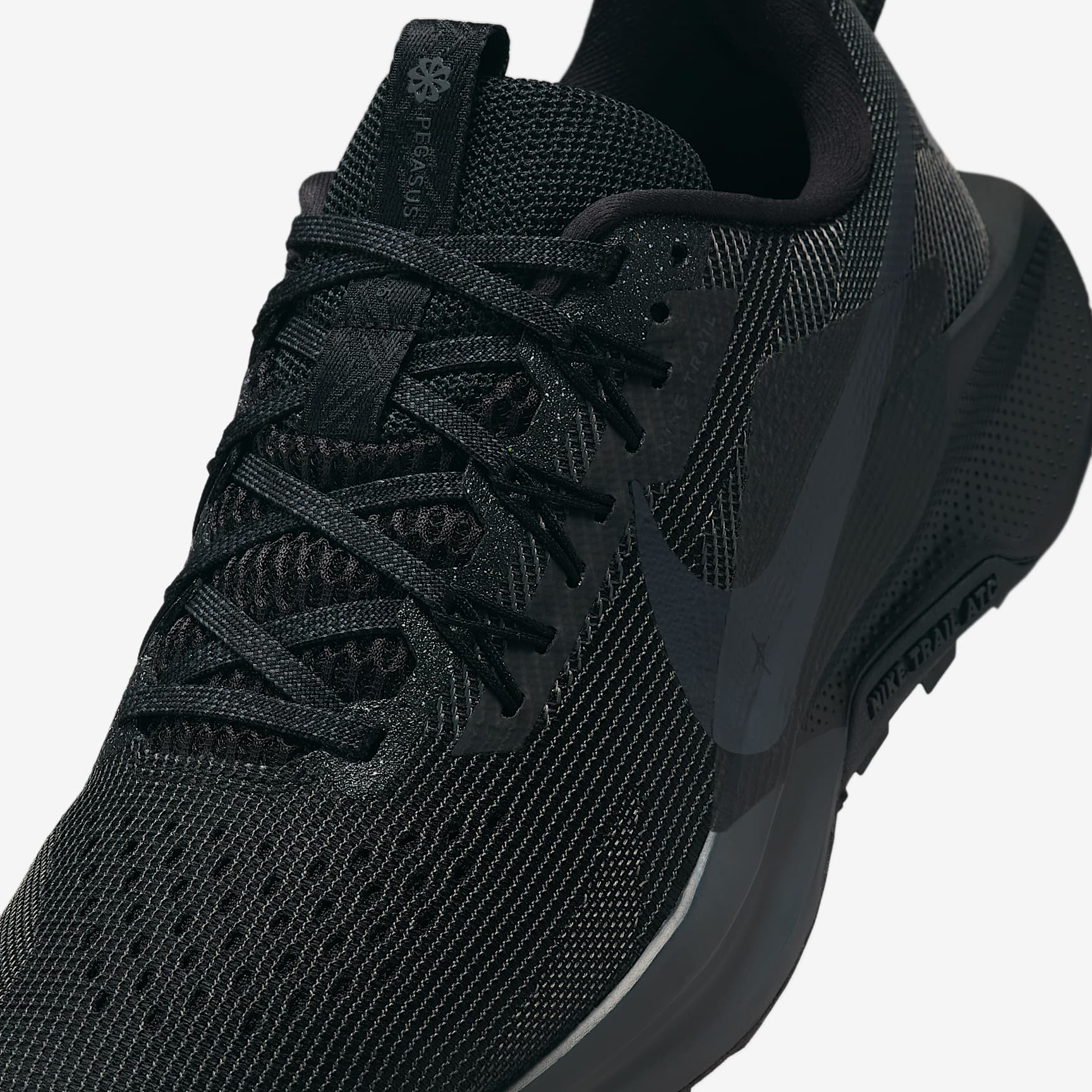 Springy foam and enhanced grip energise each step from road to trail. Spread your wings and see what nature brings as you chase earthy paths in the Peg Trail 5. Now equipped with an ultra-responsive ReactX foam midsole, this shoe is a true dual threat raring to cross the divide between dirt and drives. Mesh on the upper Mesh is combined with open holes on the upper for breathability. Responsive Ride Springy ReactX foam midsole gives you lightweight energy return. It's 13% more responsive than previous React technology. ATC outsole Nike Trail All-Terrain Compound (ATC) rubber outsole provides enhanced grip on the steep inclines and in wet weather, while giving you a smooth ride on the road. Flywire technology Flywire technology integrates with the laces to help secure your midfoot. What's new? * A ReactX foam midsole * Nike Trail ATC outsole Product details * Weight: 243g approx. (women's size 6) * Heel-to-toe drop: 9.5mm * Reflective design details * Not intended for use as personal protective equipment (PPE)
