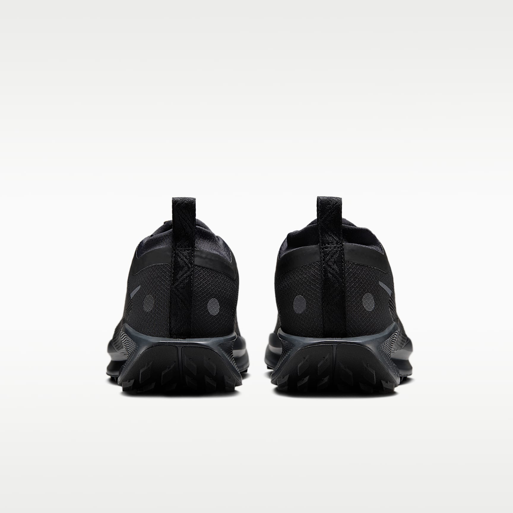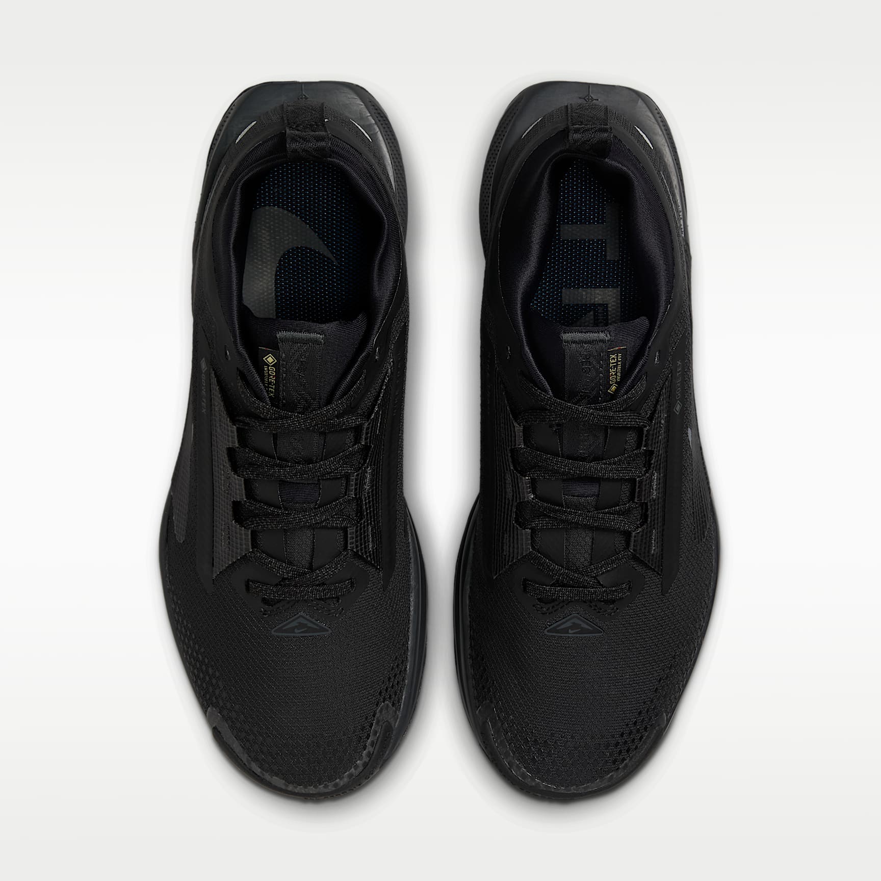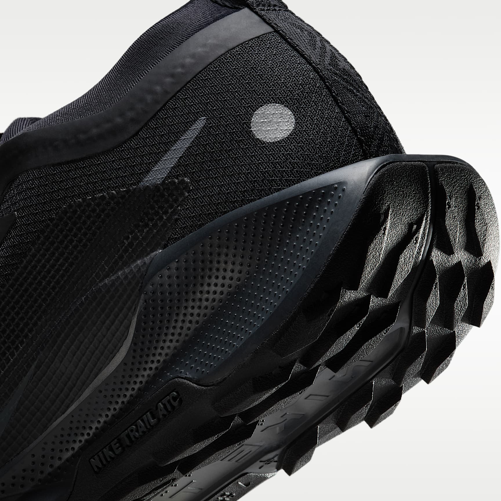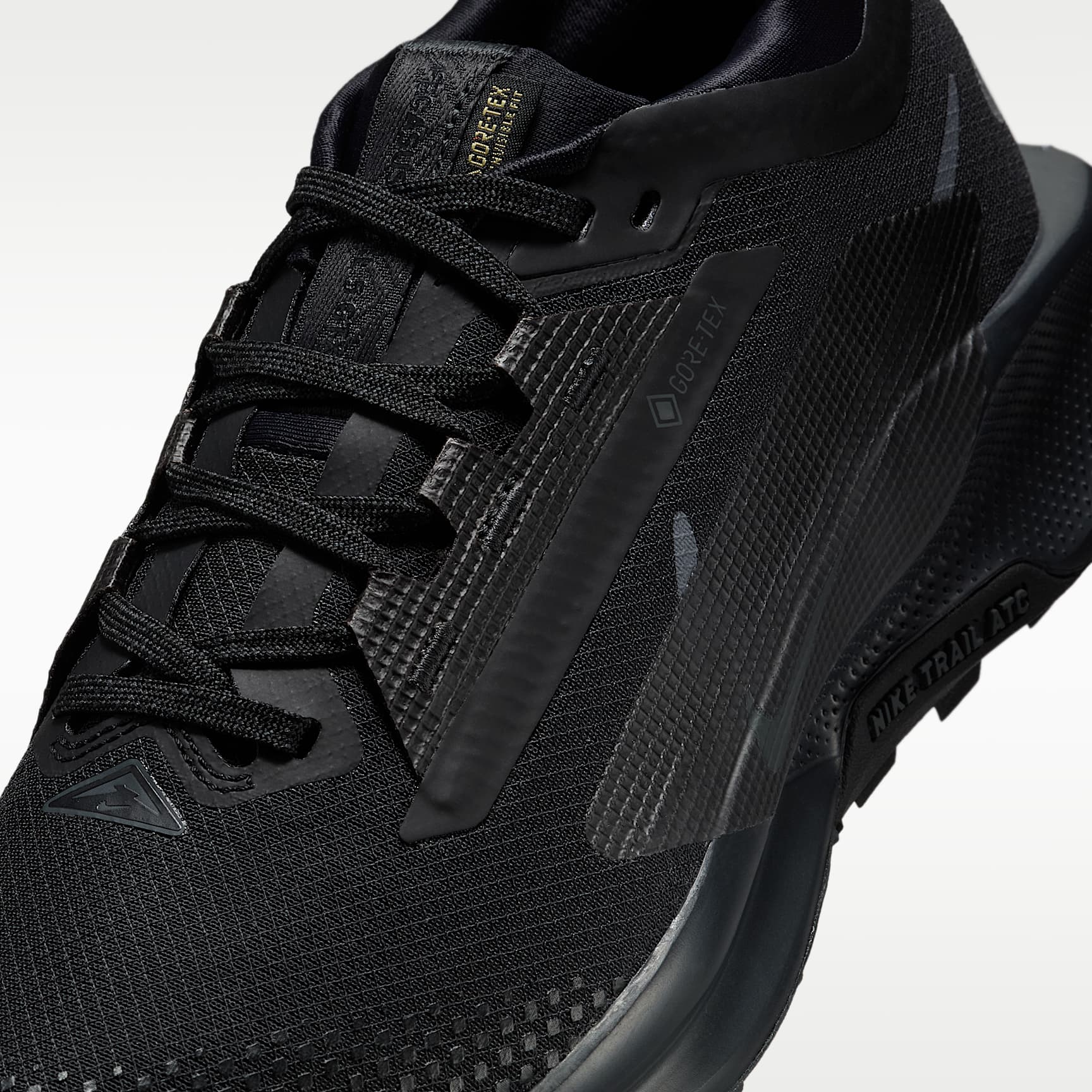 The winterized Pegasus Trail 5 provides wet-weather protection for trail running. A waterproof GORE-TEX upper, an all-terrain outsole and reflective design details help you comfortably take on the elements. With a ReactX foam midsole, it gives you responsive cushioning for an energised ride. GORE-TEX upper Waterproof GORE-TEX upper and 3D print toe cap help keep water out so your feet stay dry. ReactX foam ReactX foam midsole gives you lightweight energy return. ATC outsole The Nike Trail ATC outsole is made from an all-terrain compound that's great even in wet weather. High ankle cuff A sturdy, high ankle cuff helps keep debris and trail rubble from entering your shoe. What's new? The ReactX foam midsole is 13% more responsive than previous React technology. Product details * Weight: 253g approx. (women's size 5.5) * Heel-to-toe drop: 9.5mm * Reflective design detail on the side of the heel * Not intended for use as personal protective equipment (PPE)