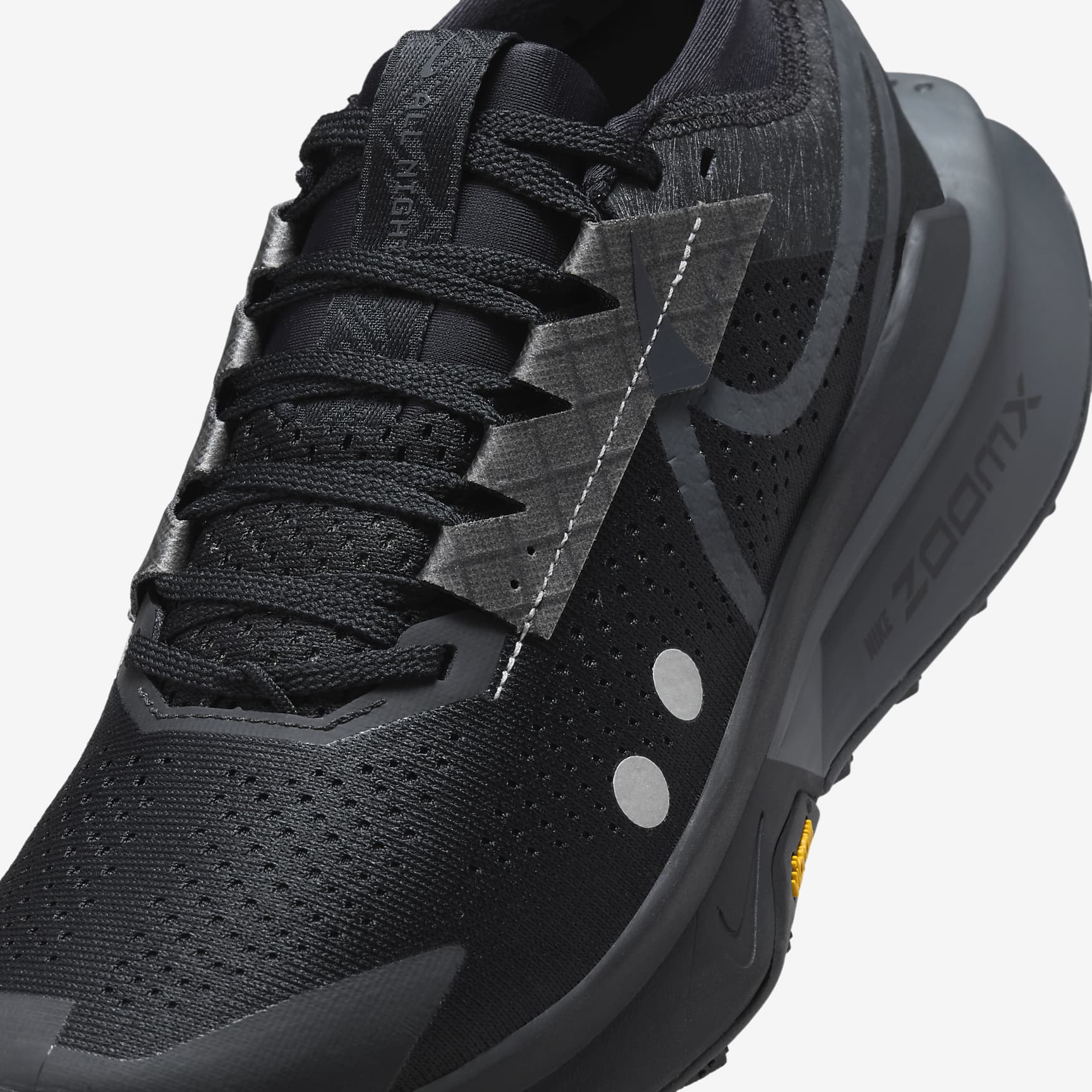 The ultralight foam plus a rugged outsole helps keep you supported. Up the mountain, through the woods, to the top of the trail you can go. Equipped with an ultra-responsive ZoomX foam midsole, the Zegama 2 is designed to conquer steep ridges, jagged rocks and races from trailhead to tip. Optimal cushioning complements a rugged outsole made for your trail-running journey. Stay sticky Vibram Zegama outsole made with Vibram Megagrip has a diverse lug pattern highlighted with wide spacing. This means you get traction for more technical terrains. Keep running A lightweight Nike ZoomX foam midsole is combined with a high stack height to help provide cushioning during extended stretches of running. Engineered mesh Engineered mesh—stronger and more flexible than normal mesh—on the upper helps provide stability for various trail conditions. More benefits * Ankle gaiter helps limit trail debris. * Overlays stretch across the toe for extra durability. Product details * Weight: 264g approx. (women's size 6) * Heel-to-toe drop: 4mm * Reflective design details * Not intended for use as personal protective equipment (PPE)