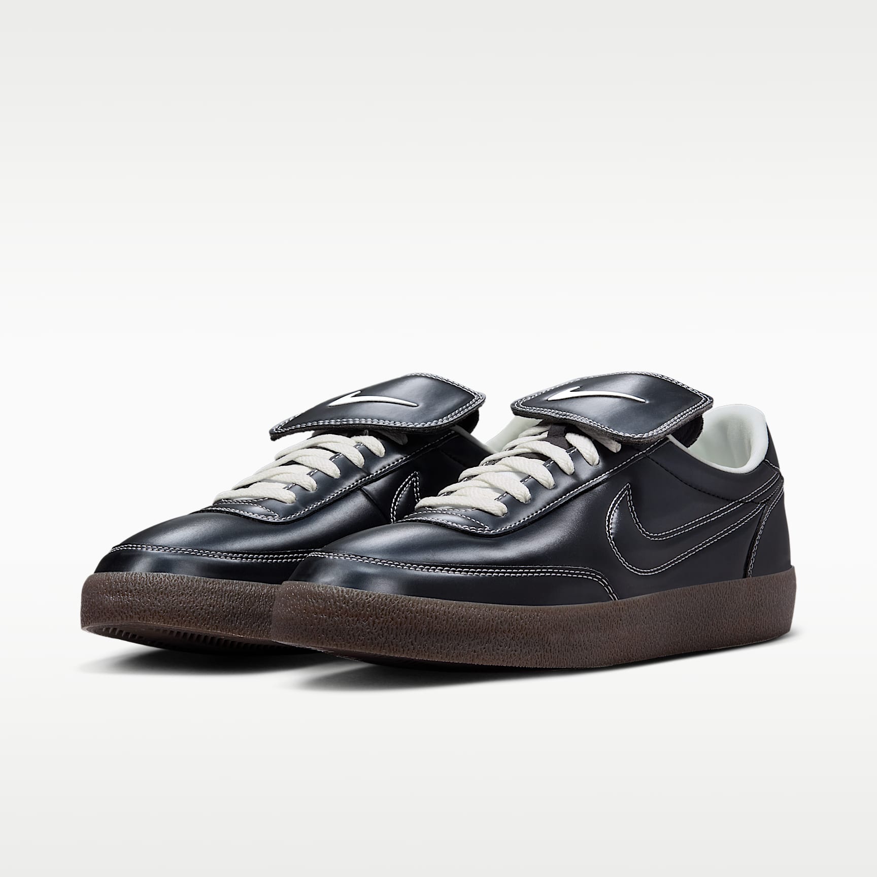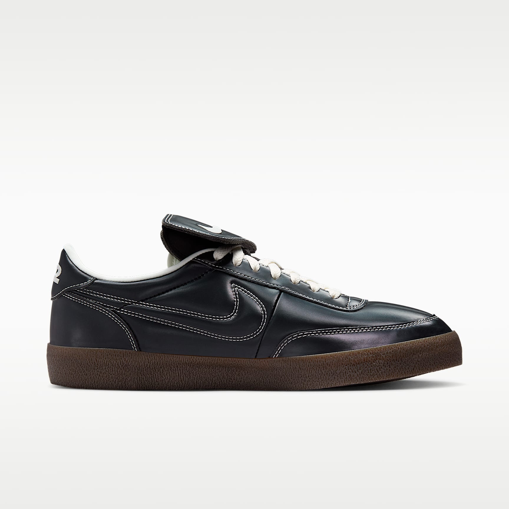 Inspired by the original low-profile tennis shoes, this Nike Killshot 2 upgrade uses glossy synthetic leather and detachable fold-over tongue flaps to create a fresh take on an old-school look. And it wouldn't be a "tennis" shoe without the rubber sole's reliable traction. Benefits * Embroidered 72 logo on the heel and the gum rubber sole add to the retro look. * Padded, low-cut collar looks sleek and feels great.