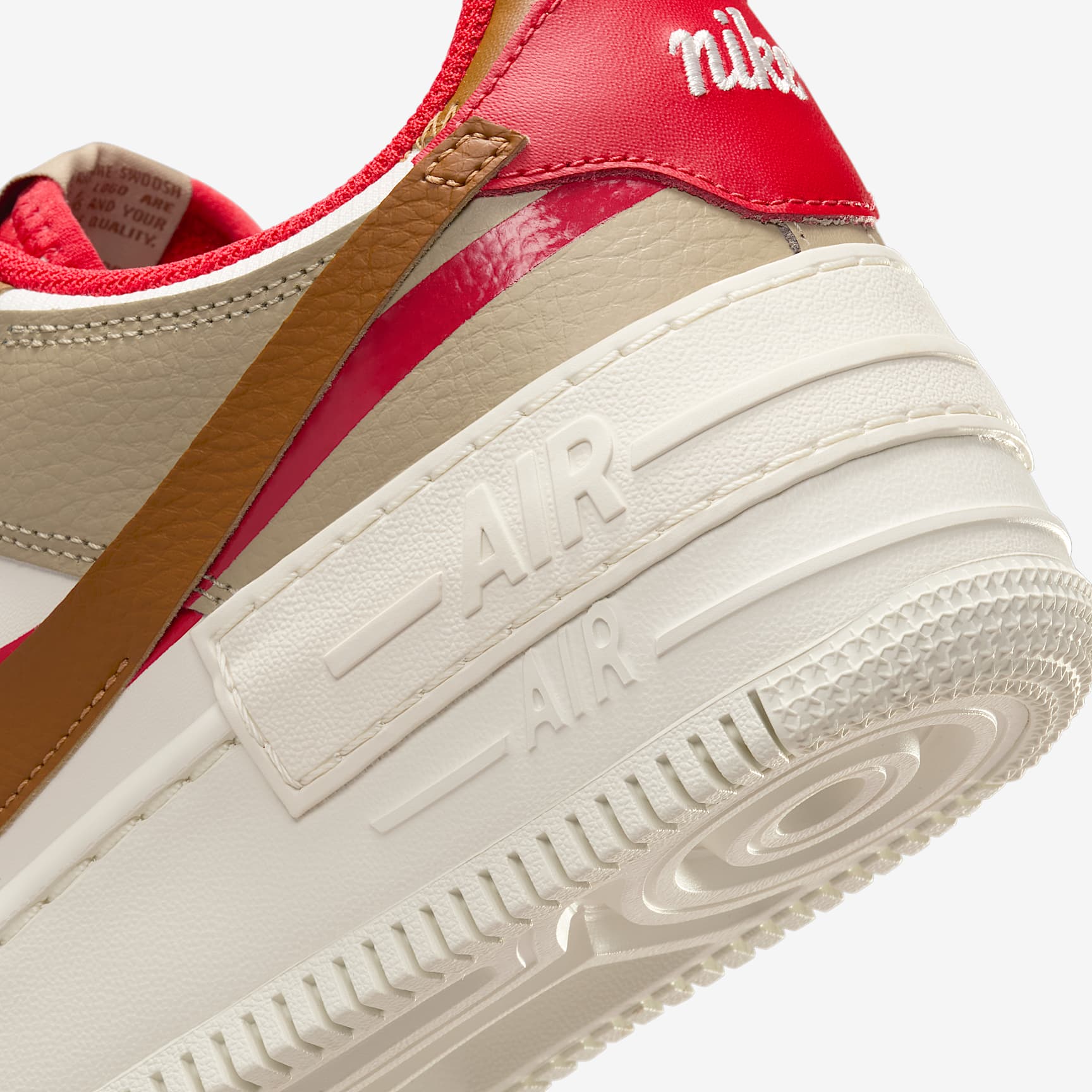 Everything you love about the AF1—but doubled! The Air Force 1 Shadow puts a playful twist on a classic basketball design. Layered materials bring depth, while an exaggerated midsole and double the branding give these sneakers a fresh look with two times the style. Benefits * With two eyestays, two mudguards, two backtabs and two Swoosh logos, you get a layered look with double the branding. * Real and synthetic leather upper with layered overlays is comfortable and durable. * Originally designed for performance hoops, Nike Air cushioning delivers lasting comfort. * Rubber outsole with our heritage hoops pivot circles provides great traction. * Low-cut, padded collar looks sleek and feels great. Air Force 1 Debuting in 1982 as a basketball must-have, the Air Force 1 came into its own in the '90s. The clean look of the classic white-on-white AF1 was endorsed from the basketball courts to the block and beyond. Finding its rhythm in hip-hop culture, releasing limited collabs and colorways, Air Force 1 became an iconic sneaker around the globe. And with over 2000 iterations of this staple, its impact on fashion, music and sneaker culture can’t be denied.