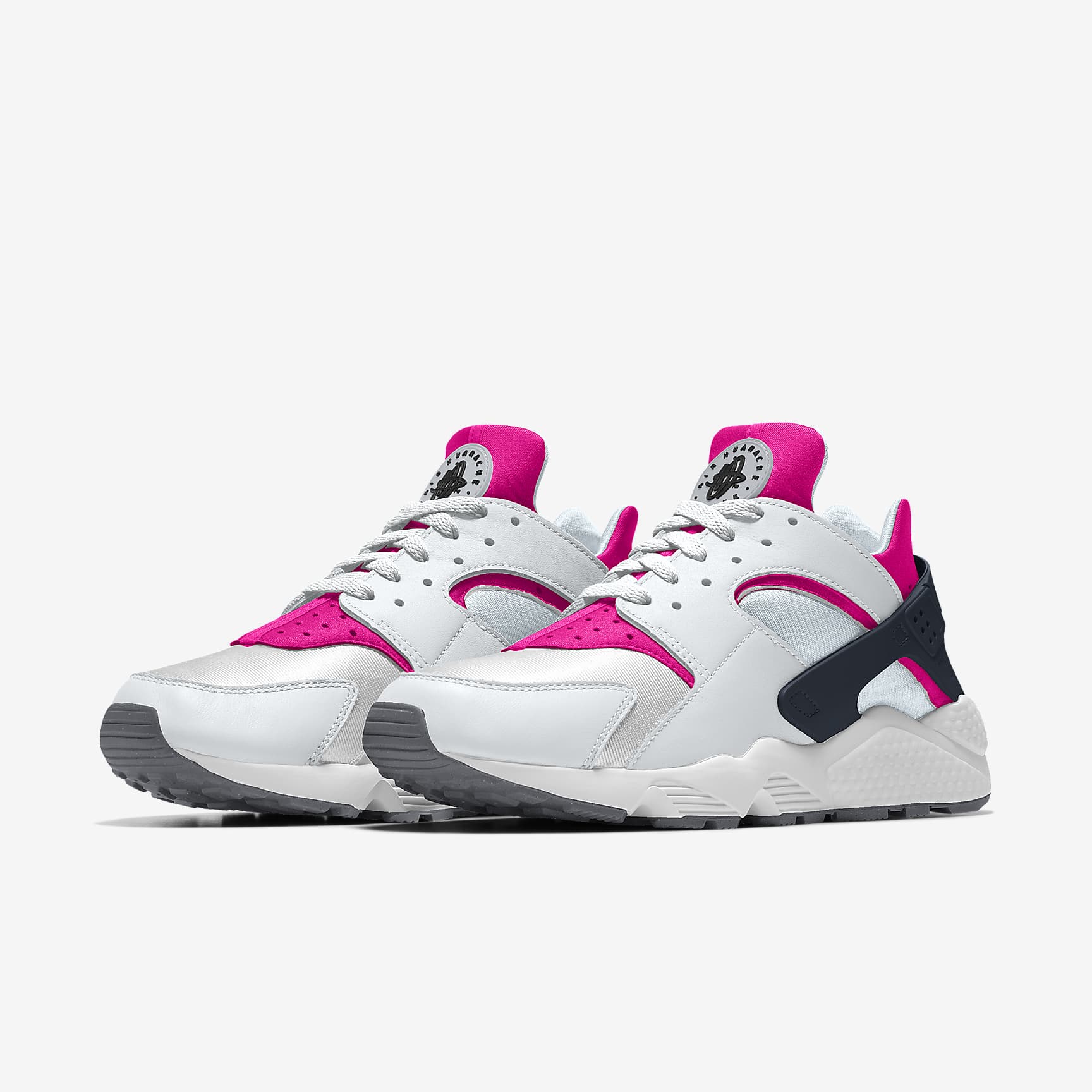 Have you hugged your foot today? Don't stop there. Bring your feel-good vibes to the world with a customisable twist on the ridiculously comfortable icon. Choose soft, supple suede for a throwback vibe, or give it a timeless finish with crisp leather. Select from an array of varsity-inspired colours for a classic look. Then, top it off with a piece of your story on the tongue patch. Whatever you choose, it's gonna feel good and look great. Your personalised Air Huarache—it's bragging rights for your feet.We recommend sizing up one half-size from your usual size for the best fit. What's Your Topper? Select between premium suede or leather to top off the stretchy, "hug your foot" fabric on the upper. Varsity Colour-Up What's your school? Got a fave team or wardrobe hue? Pick from an array of varsity-inspired colours and help brighten the world. Make it Personal Tell a piece of your story with a personalised message—choose up to 5 characters (numbers 0–9, letters A–Z and some symbols) to have embroidered on the tongue patch. Or, keep the classic look of the original Huarache emblem. More Benefits * Inspired by water-skiing, the upper's stretchy fabric hugs your foot for an incredible feel. * Originally designed for performance running, Nike Air cushioning delivers lasting comfort. * Caged heel adds support and pairs with elongated tongue to keep the early '90s look you love. * Cushioned inner sleeve stretches to your foot for an oh-so-personalised fit. Nike By You Details * Our Members are one of a kind, and your shoes are too. Each pair is proudly made one at a time, by hand. Good things are worth the wait. * Your initials? A nickname? Or something else that's so you. Get personal with a customisable inscription on your shoes. Plus, your name is on the box. * With our 3D builder, watch your creation come alive as you experiment with all kinds of design choices. Huarache Origins The Nike Air Huarache released in 1991. Footwear designer Tinker Hatfield wanted to combine the fit of neoprene water-ski boots with the functionality of South American sandals. The instant hit found its way to basketball courts and then the streets, where it earned its status as an icon.