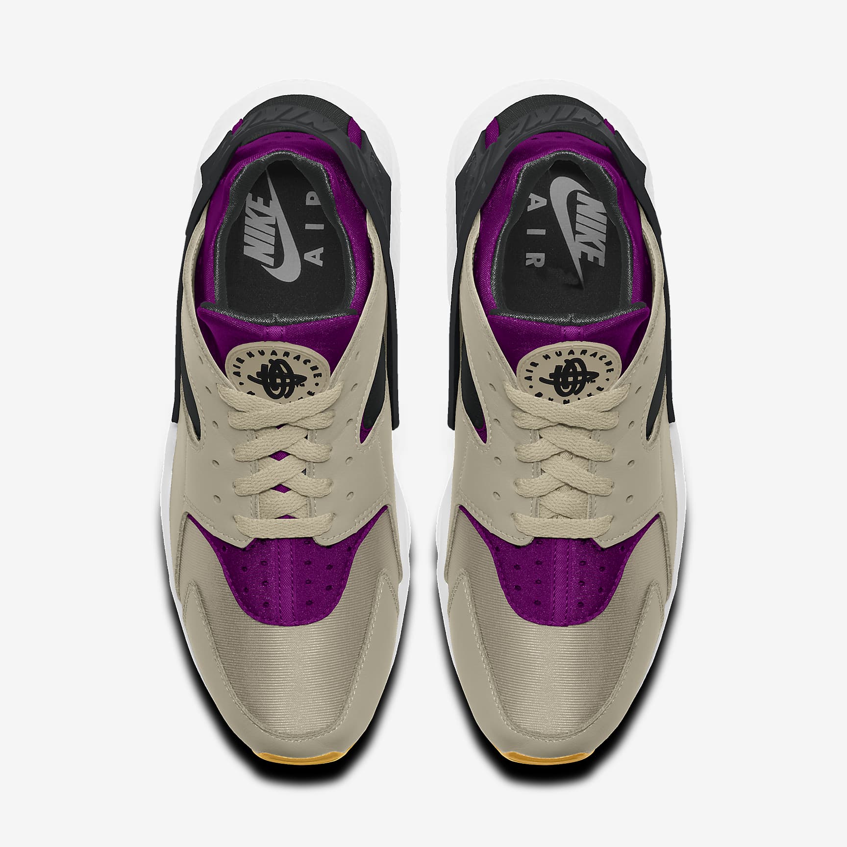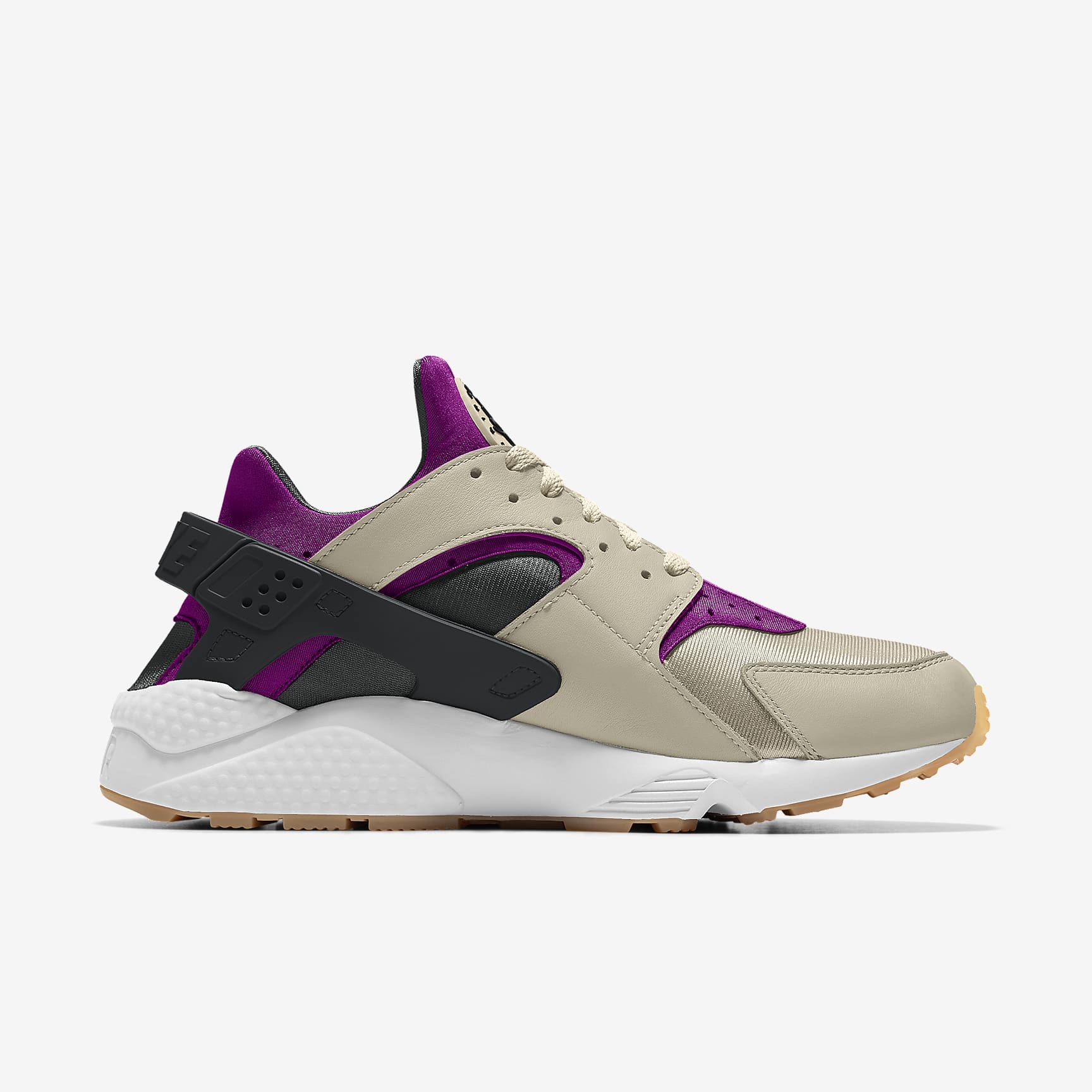 Have you hugged your foot today? Don't stop there. Bring your feel-good vibes to the world with a customisable twist on the ridiculously comfortable icon. Choose soft, supple suede for a throwback vibe, or give it a timeless finish with crisp leather. Select from an array of varsity-inspired colours for a classic look. Then, top it off with a piece of your story on the tongue patch. Whatever you choose, it's gonna feel good and look great. Your personalised Air Huarache—it's bragging rights for your feet.We recommend sizing up one half-size from your usual size for the best fit. What's Your Topper? Select between premium suede or leather to top off the stretchy, "hug your foot" fabric on the upper. Varsity Colour-Up What's your school? Got a fave team or wardrobe hue? Pick from an array of varsity-inspired colours and help brighten the world. Make it Personal Tell a piece of your story with a personalised message—choose up to 5 characters (numbers 0–9, letters A–Z and some symbols) to have embroidered on the tongue patch. Or, keep the classic look of the original Huarache emblem. More Benefits * Inspired by water-skiing, the upper's stretchy fabric hugs your foot for an incredible feel. * Originally designed for performance running, Nike Air cushioning delivers lasting comfort. * Caged heel adds support and pairs with elongated tongue to keep the early '90s look you love. * Cushioned inner sleeve stretches to your foot for an oh-so-personalised fit. Nike By You Details * Our Members are one of a kind, and your shoes are too. Each pair is proudly made one at a time, by hand. Good things are worth the wait. * Your initials? A nickname? Or something else that's so you. Get personal with a customisable inscription on your shoes. Plus, your name is on the box. * With our 3D builder, watch your creation come alive as you experiment with all kinds of design choices. Huarache Origins The Nike Air Huarache released in 1991. Footwear designer Tinker Hatfield wanted to combine the fit of neoprene water-ski boots with the functionality of South American sandals. The instant hit found its way to basketball courts and then the streets, where it earned its status as an icon.