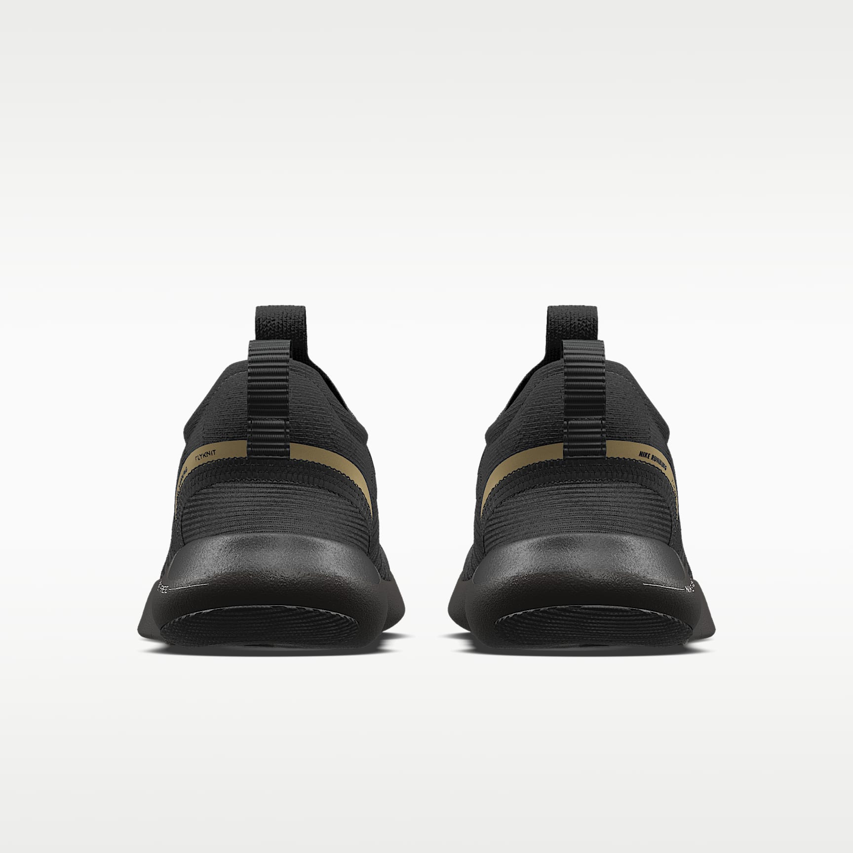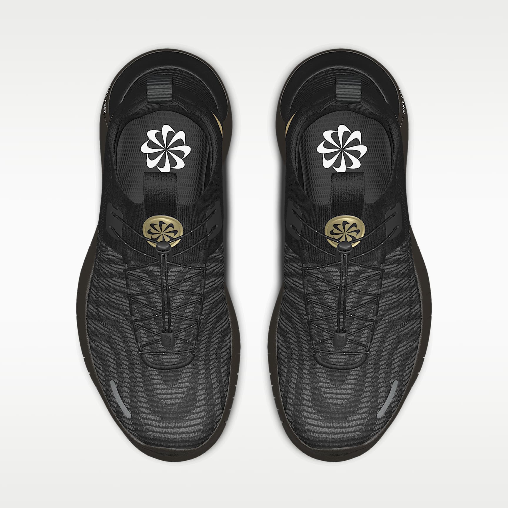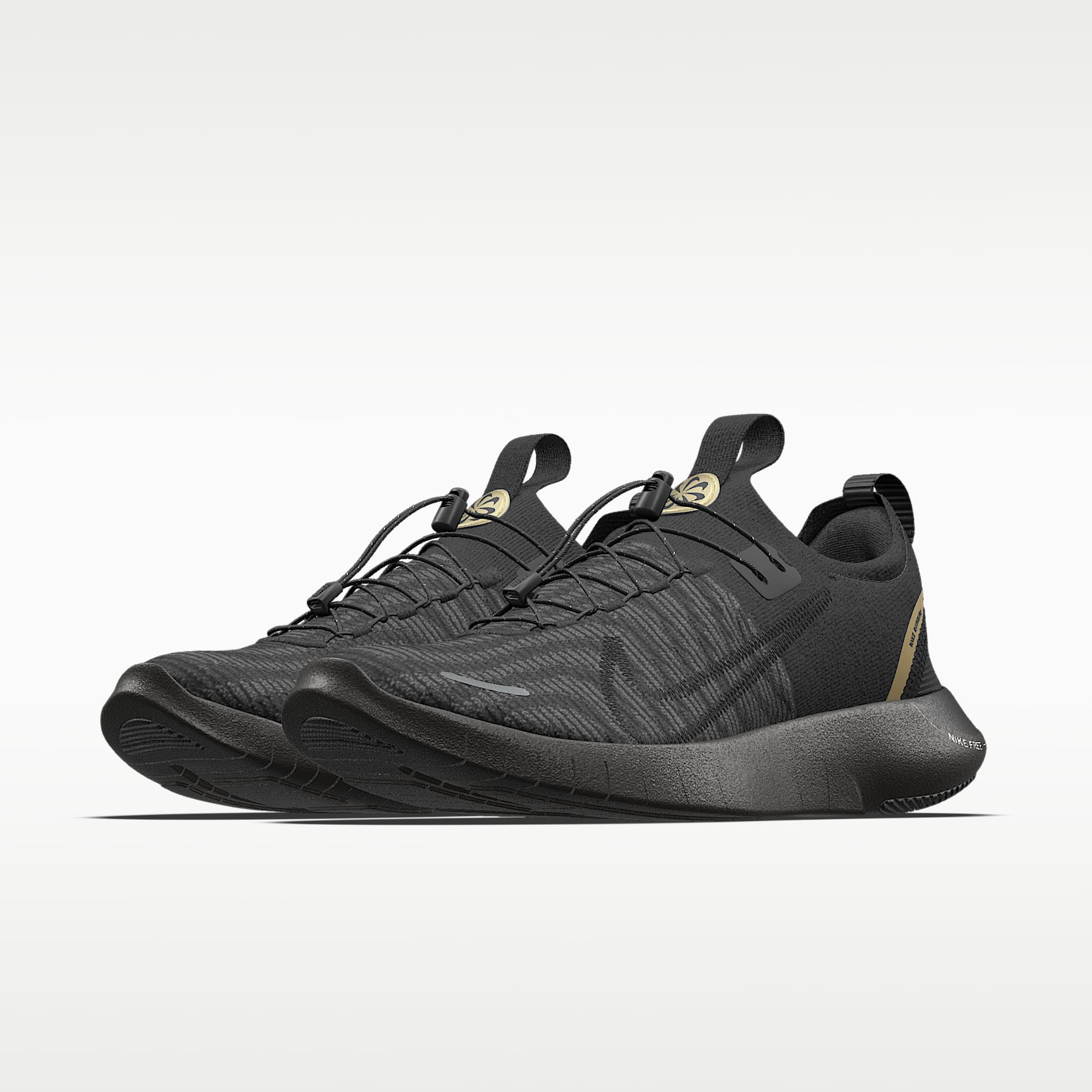 Set your training runs free, and let your design eye out of the cage in the Nike Free RN By You. A full spectrum of colours, plenty of Flyknit colour possibilities and a trio of different lacing choices give you the freedom to make this as quirky as you so decide. Feathery and flexible, its barefoot feel and Flyknit upper will have you free-wheeling with joy, itching for a few more strides. Touch It Up Pick from six different Flyknit colour presets including Fierce Pink and Orewood Brown. Then dabble with the top-and-bottom Swoosh logos, backtabs, overlays and even the nitty-gritty details like the eyestay stitching, side of the heel and the outsole pods. Pick from 16 different colour options for the overlays, including Metallic Red Bronze, gold and silver. Lace Up Choose between reflective design, flat or toggle laces (toggle and flat come in 12 different colour options including Red Stardust). We offer reflective design flat laces in six varying colours. Make It Yours Add a personal touch with your initials or something else unique. It appears on the side of the shoe all in upper case, using 1–2 characters, numbers 0–9 and letters A–Z. Made from Nike Grind The outsole has at least 13% Nike Grind material, made from scraps from the footwear manufacturing process. Lightweight movement Flyknit gives you sock-like comfort with soft, stretchable and breathable fabric that helps keep you feeling light and airy when your run goes into overdrive. Inner sleeve is minimal but stretchy. Soft in the middle An ultra-lightweight midsole offers unreal comfort as your foot repeatedly hits the road. It's lighter, more responsive and softer than previous versions. More benefits * Embroidered eyestays around the laces help keep your feet secure. Pull tabs at the tongue and heel make for an easy one-hand entry. * The laser-cut grooves on the sole make this shoe more flexible compared with the previous iteration. Nike By You Details * This product is not intended for use as Personal Protective Equipment (PPE) * Our Members are one of a kind, and your shoes are too. Each pair is proudly made one at a time, by hand. Good things are worth the wait. * With our 3D builder, watch your creation come alive as you experiment with all kinds of design choices.