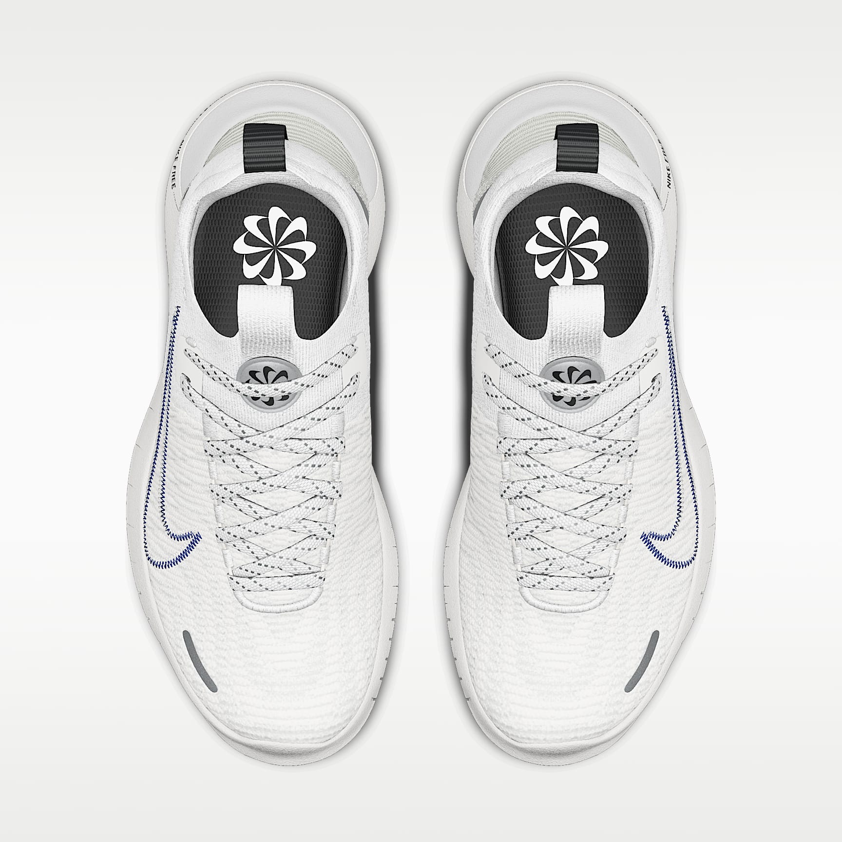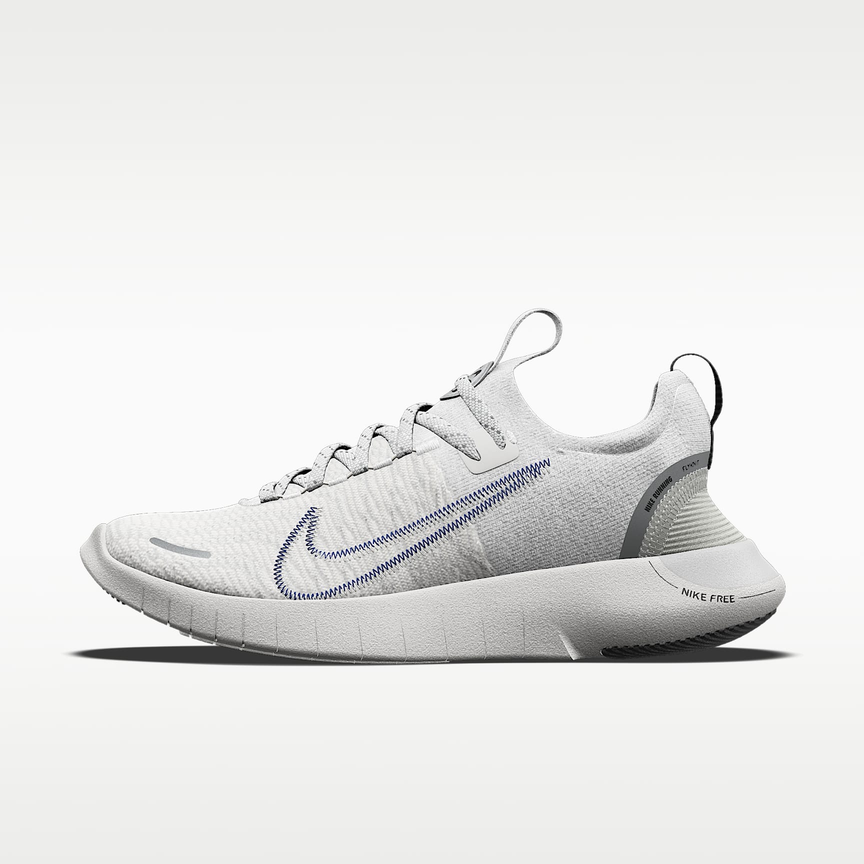 Set your training runs free, and let your design eye out of the cage in the Nike Free RN By You. A full spectrum of colours, plenty of Flyknit colour possibilities and a trio of different lacing choices give you the freedom to make this as quirky as you so decide. Feathery and flexible, its barefoot feel and Flyknit upper will have you free-wheeling with joy, itching for a few more strides. Touch It Up Pick from six different Flyknit colour presets including Fierce Pink and Orewood Brown. Then dabble with the top-and-bottom Swoosh logos, backtabs, overlays and even the nitty-gritty details like the eyestay stitching, side of the heel and the outsole pods. Pick from 16 different colour options for the overlays, including Metallic Red Bronze, Gold and Silver. Lace Up Choose between reflective design, flat or toggle laces (toggle and flat come in 12 different colour options including Red Stardust). We offer reflective design flat laces in six varying colours. Make It Yours Add a personal touch with your initials or something else unique. It appears on the side of the shoe all in upper case, using 1–2 characters, numbers 0–9 and letters A–Z. Made from Nike Grind The outsole has at least 13% Nike Grind material, made from scraps from the footwear manufacturing process. Lightweight movement Flyknit gives you sock-like comfort with soft, stretchable and breathable fabric that helps keep you feeling light and airy when your run goes into overdrive. Inner sleeve is minimal but stretchy. Soft in the middle An ultra-lightweight midsole offers unreal comfort as your foot repeatedly hits the road. It's lighter, more responsive and softer than previous versions. More benefits * Embroidered eyestays around the laces help keep your feet secure. Pull tabs at the tongue and heel make for an easy one-hand entry. * The laser-cut grooves on the sole make this shoe more flexible compared with the previous iteration. Nike By You Details * This product is not intended for use as Personal Protective Equipment (PPE) * Our Members are one of a kind, and your shoes are too. Each pair is proudly made one at a time, by hand. Good things are worth the wait. * With our 3D builder, watch your creation come alive as you experiment with all kinds of design choices.