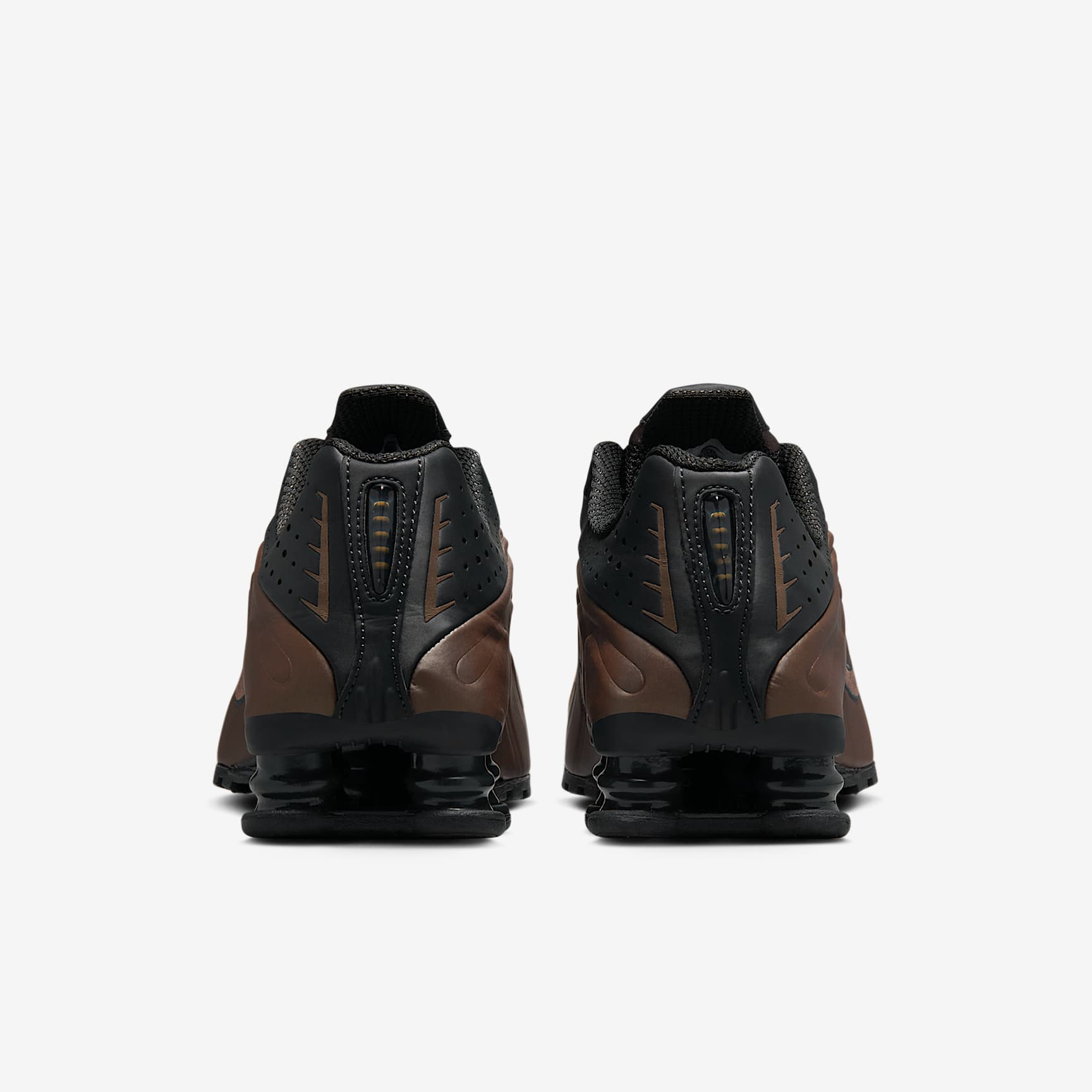 A recrafted version of the 2001 icon, the Nike Shox R4 replicates the original with its synthetic and textile upper, design lines and laser perforations. Nike Shox cushioning distributes weight to maximise comfort and provide a performance-inspired look. Benefits * Originally designed to support the stride of runners, Nike Shox columns provide responsive cushioning. * The upper is a near-exact replica of the original 2001 Nike Shox. * A modified, circular Waffle outsole gives traction. * Laser perforations throughout provide ventilation. Product details * Not intended for use as personal protective equipment (PPE)