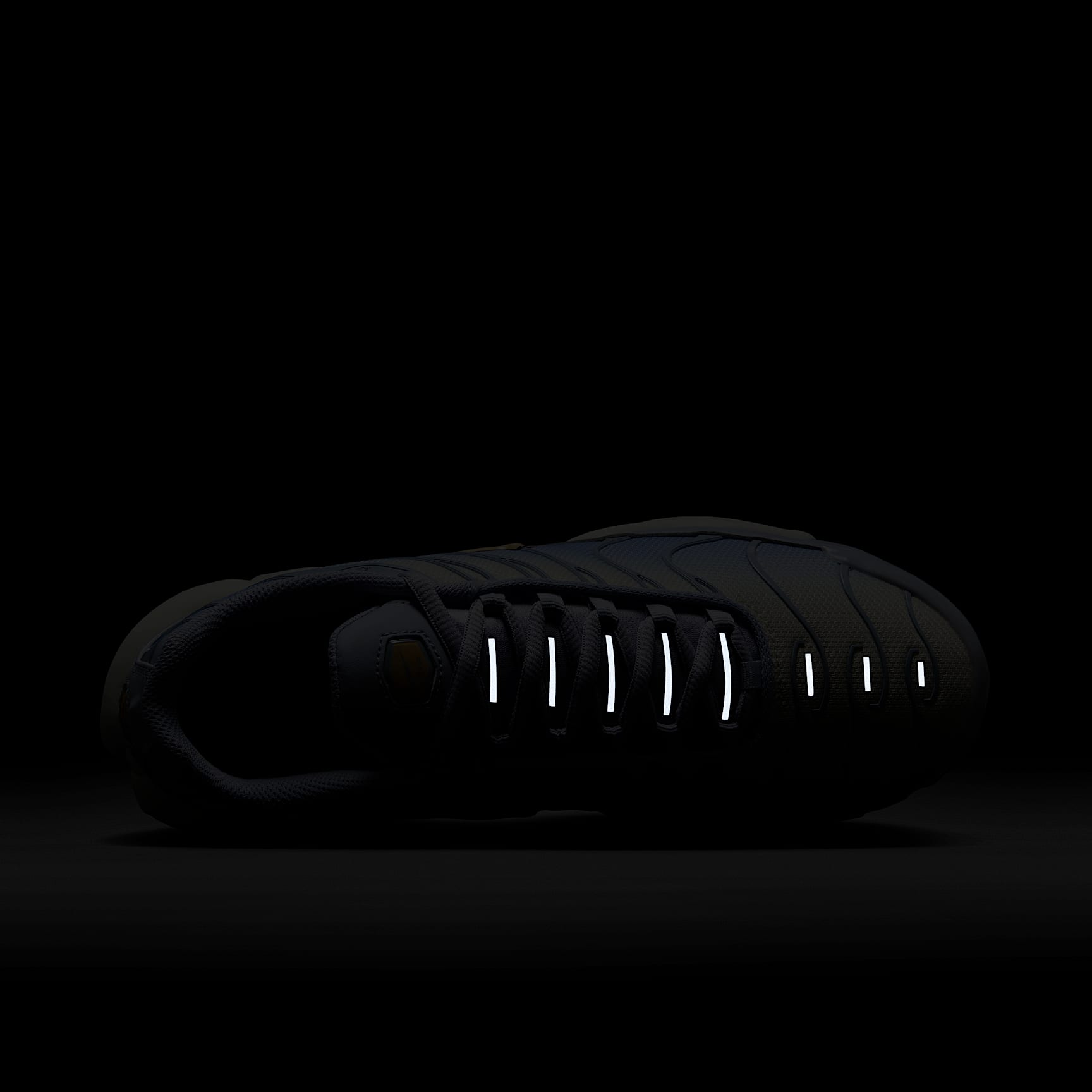 Let your attitude have the edge. With a Tuned Air experience that offers premium stability, unbelievable cushioning and classic wavy design lines inspired by nature, the Air Max Plus lets you celebrate your defiant style in comfort. Benefits * Bringing beach life to the city, the prominent arch draws inspiration from a whale's tail and adds structure while the iconic wavy fingers nod to palm trees and ocean waves. * Originally designed for performance running, Nike Air units provide lightweight cushioning that lasts. * Gradient design adds heritage style to this powerhouse Air Max. * Synthetic upper with airy mesh adds lightweight comfort and durability. * Full-length rubber outsole adds traction and durability to your journey. Product Details * Not intended for use as Personal Protective Equipment (PPE) Nike Air Max Origins Revolutionary Air technology first made its way into Nike footwear in 1978. In 1987, the Air Max 1 debuted with visible Air technology in its heel, allowing fans more than just the feel of Air cushioning—suddenly they could see it. Since then, next-generation Air Max shoes have become a hit with athletes and collectors by offering striking color combinations and reliable, lightweight cushioning.